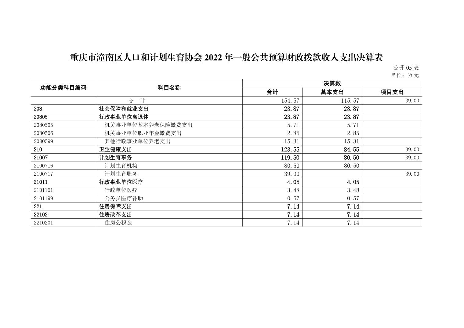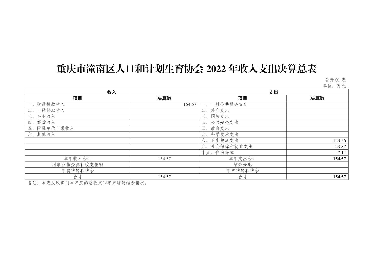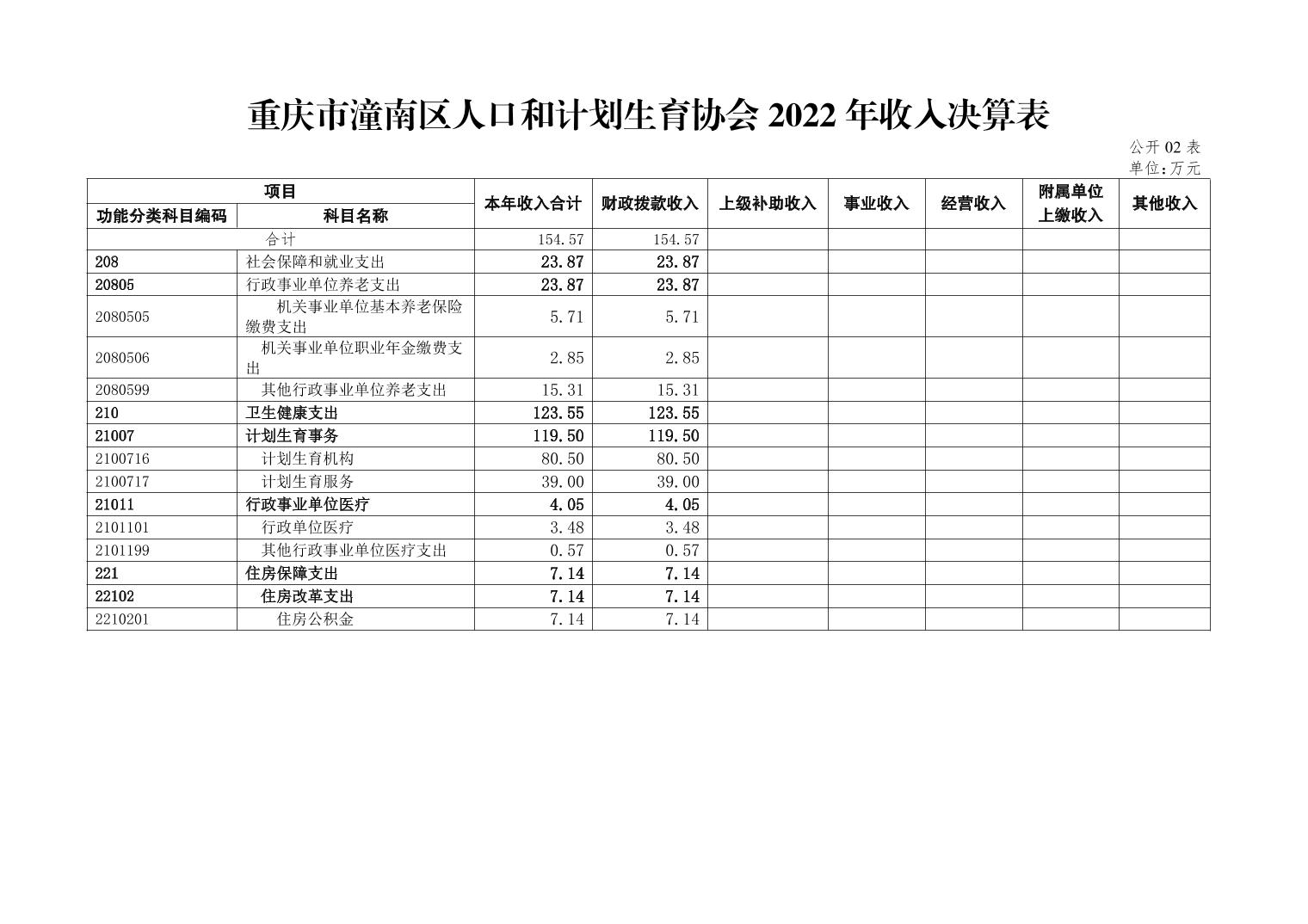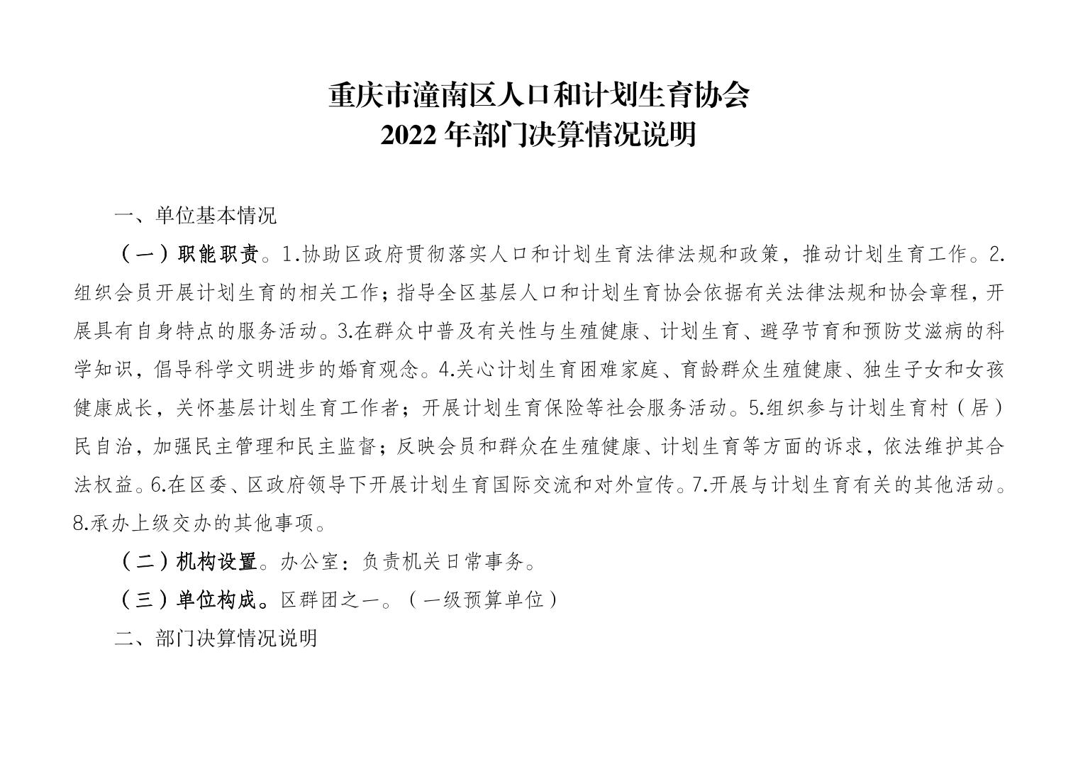 重庆市潼南区人口和计划生育协会2022年度决算公开