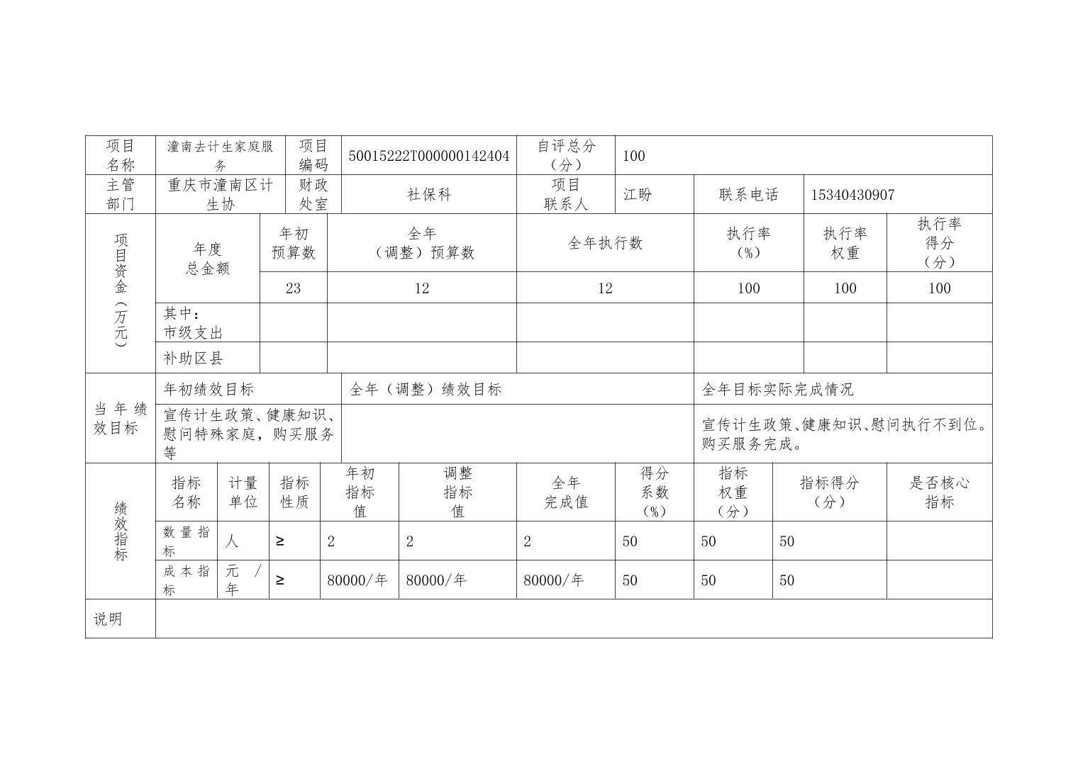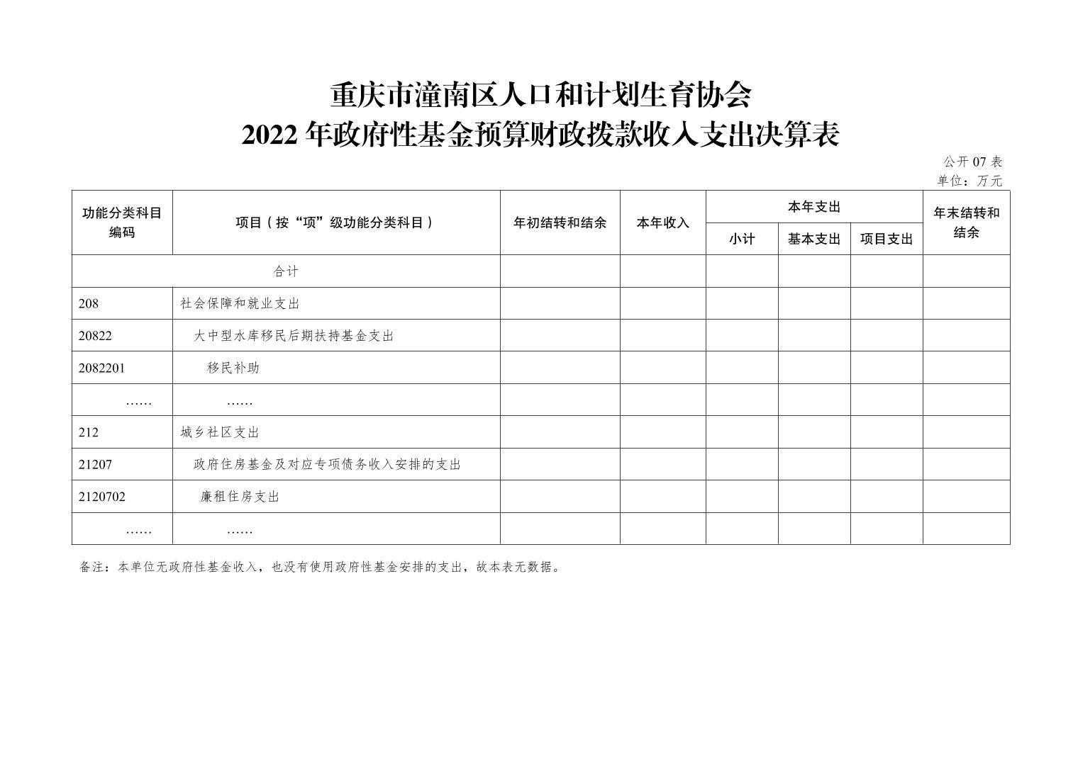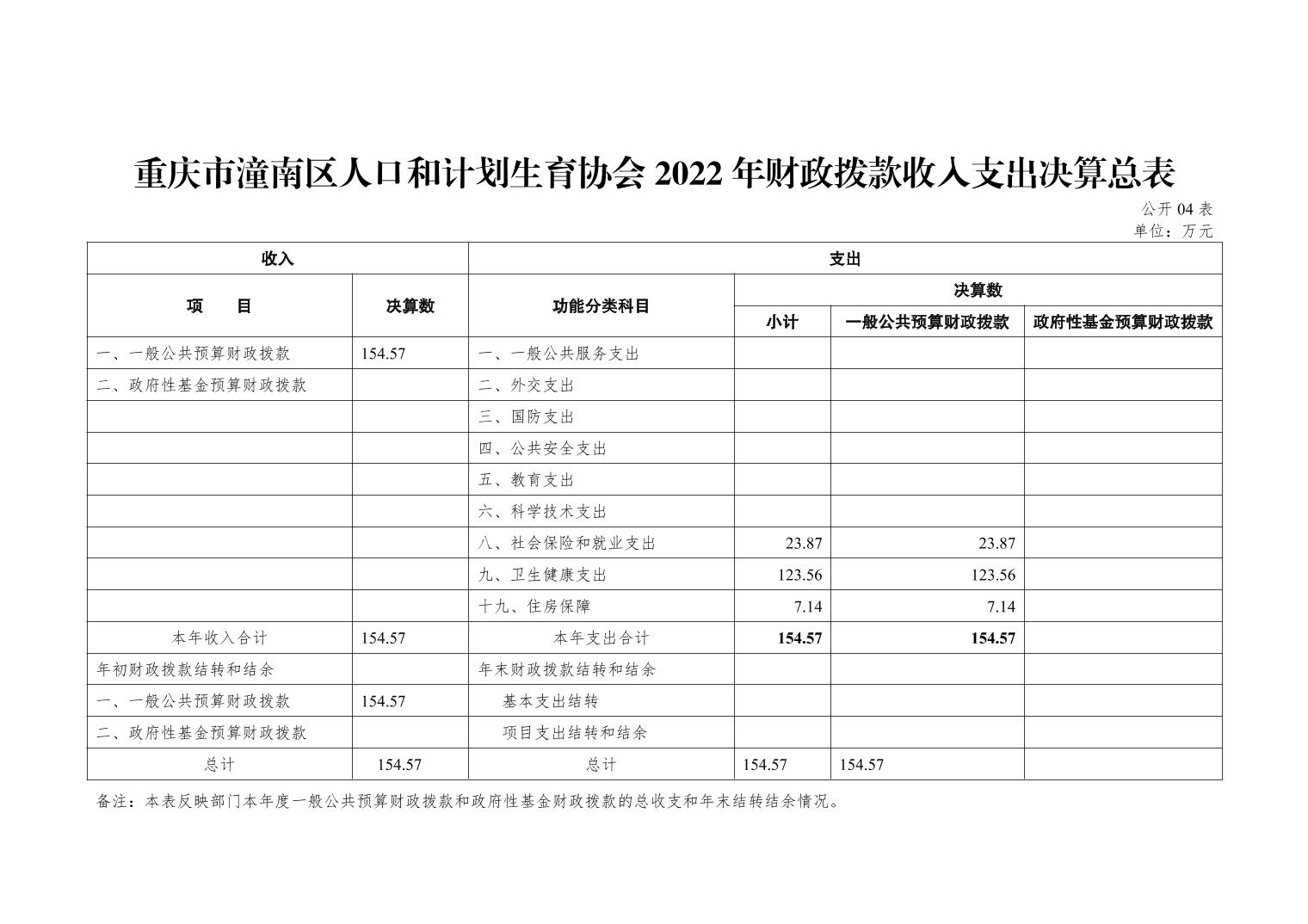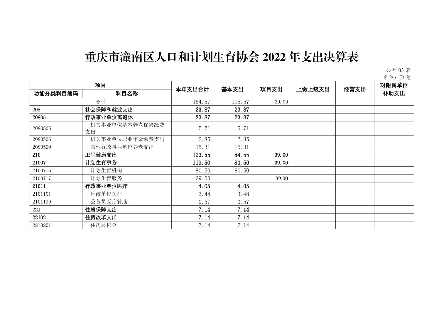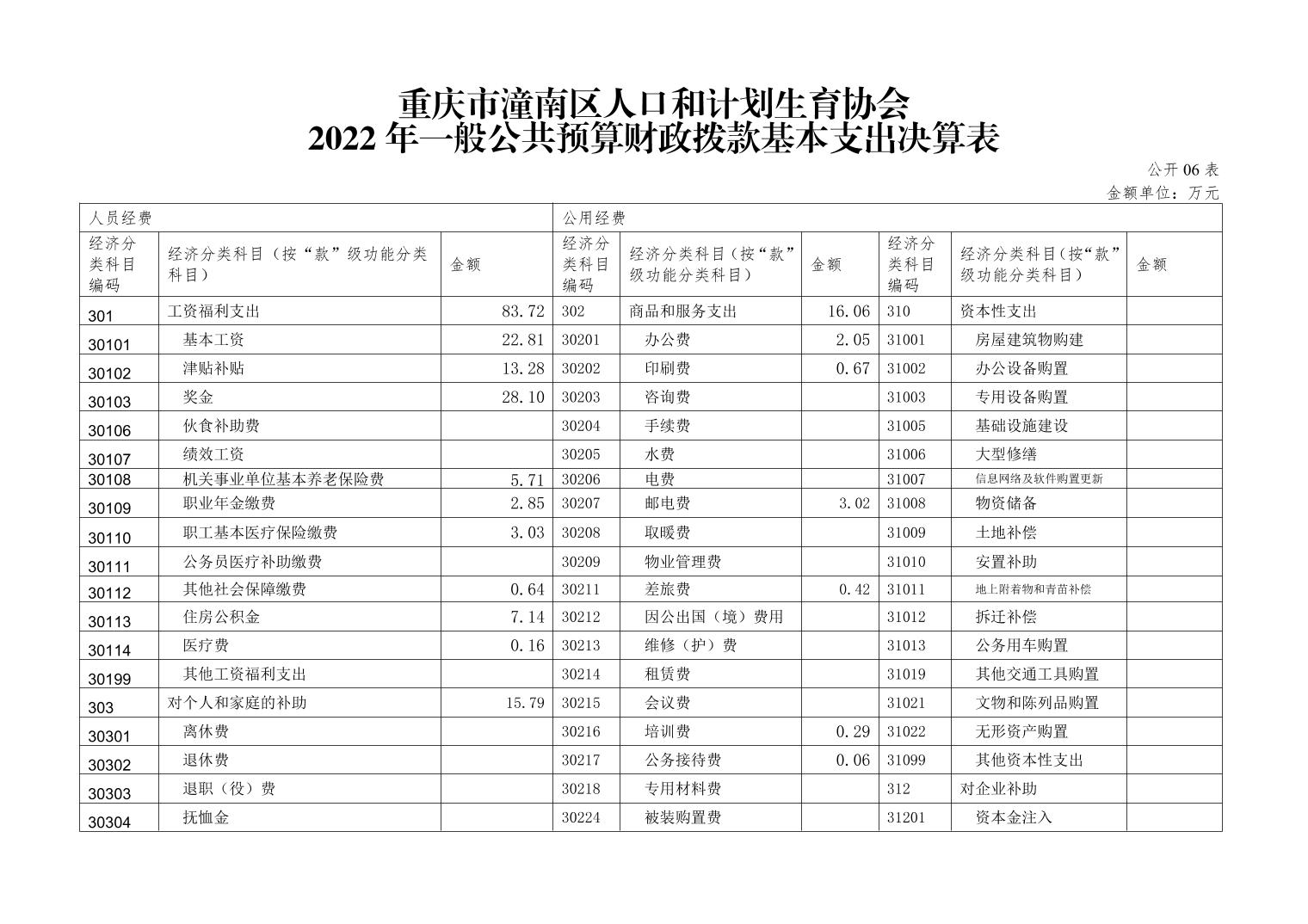 重庆市潼南区人口和计划生育协会2022年度决算公开