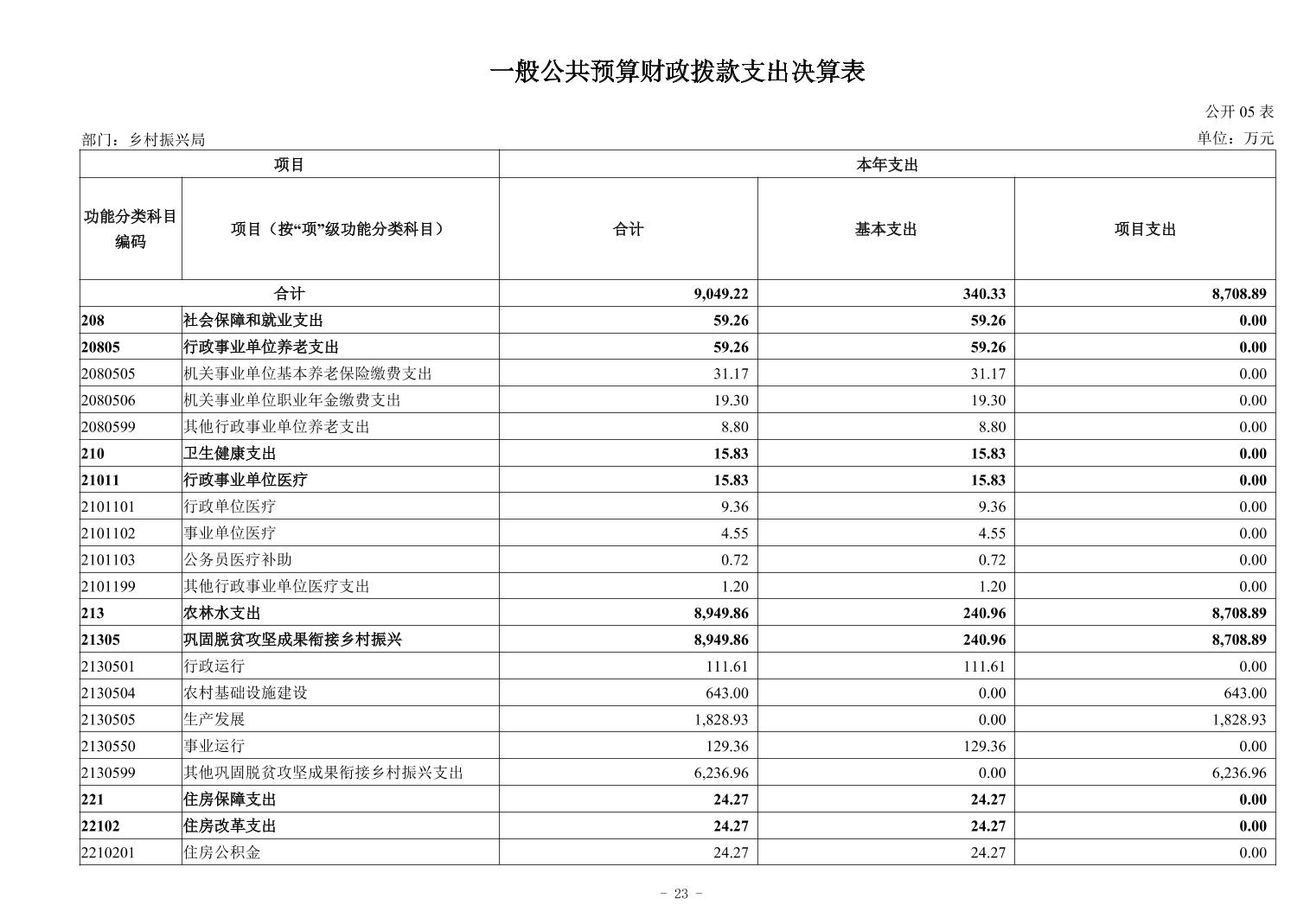 重庆市潼南区乡村振兴局2024年度部门决算公开