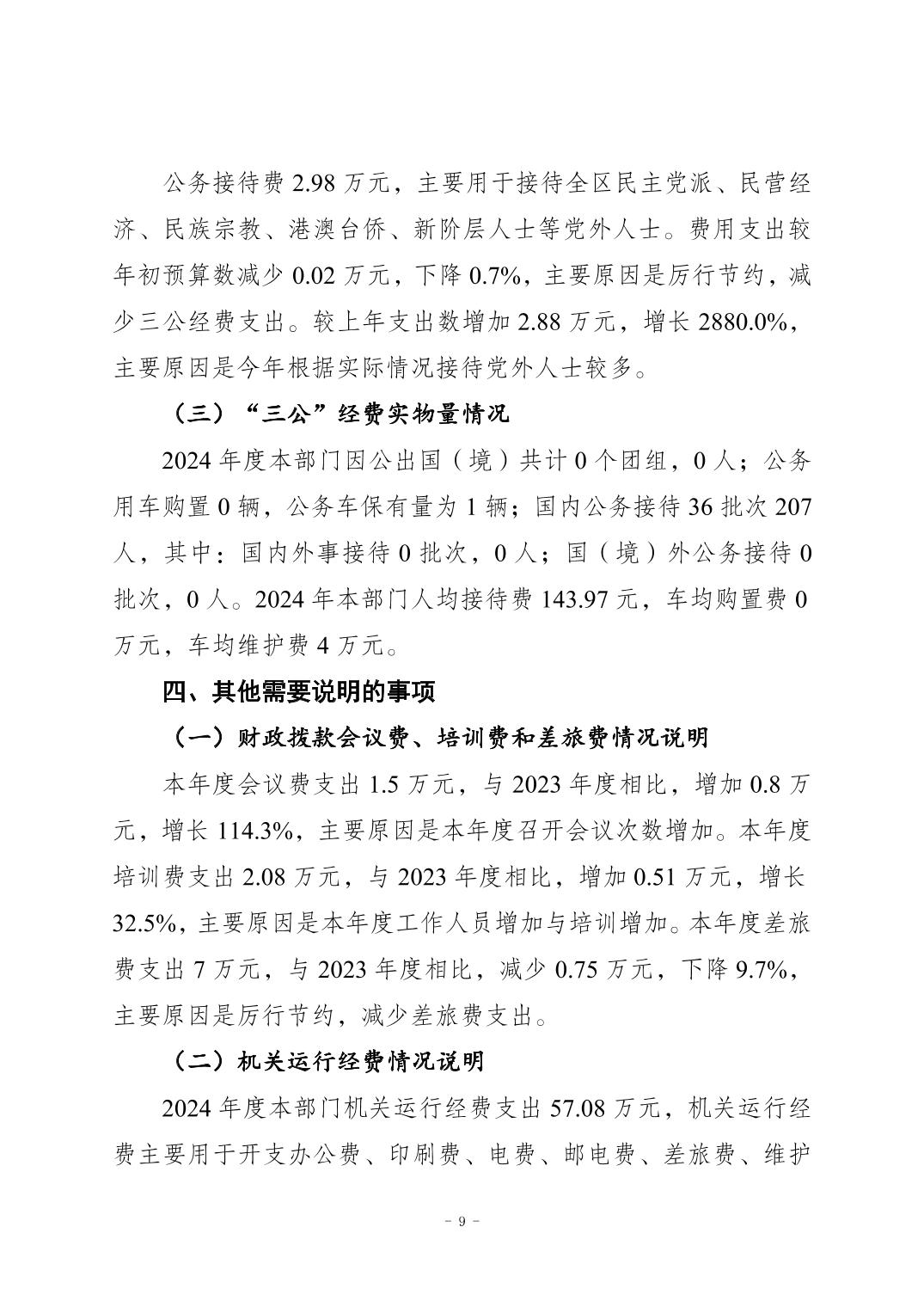 中共重庆市潼南区委统一战线工作部2024年度部门决算公开