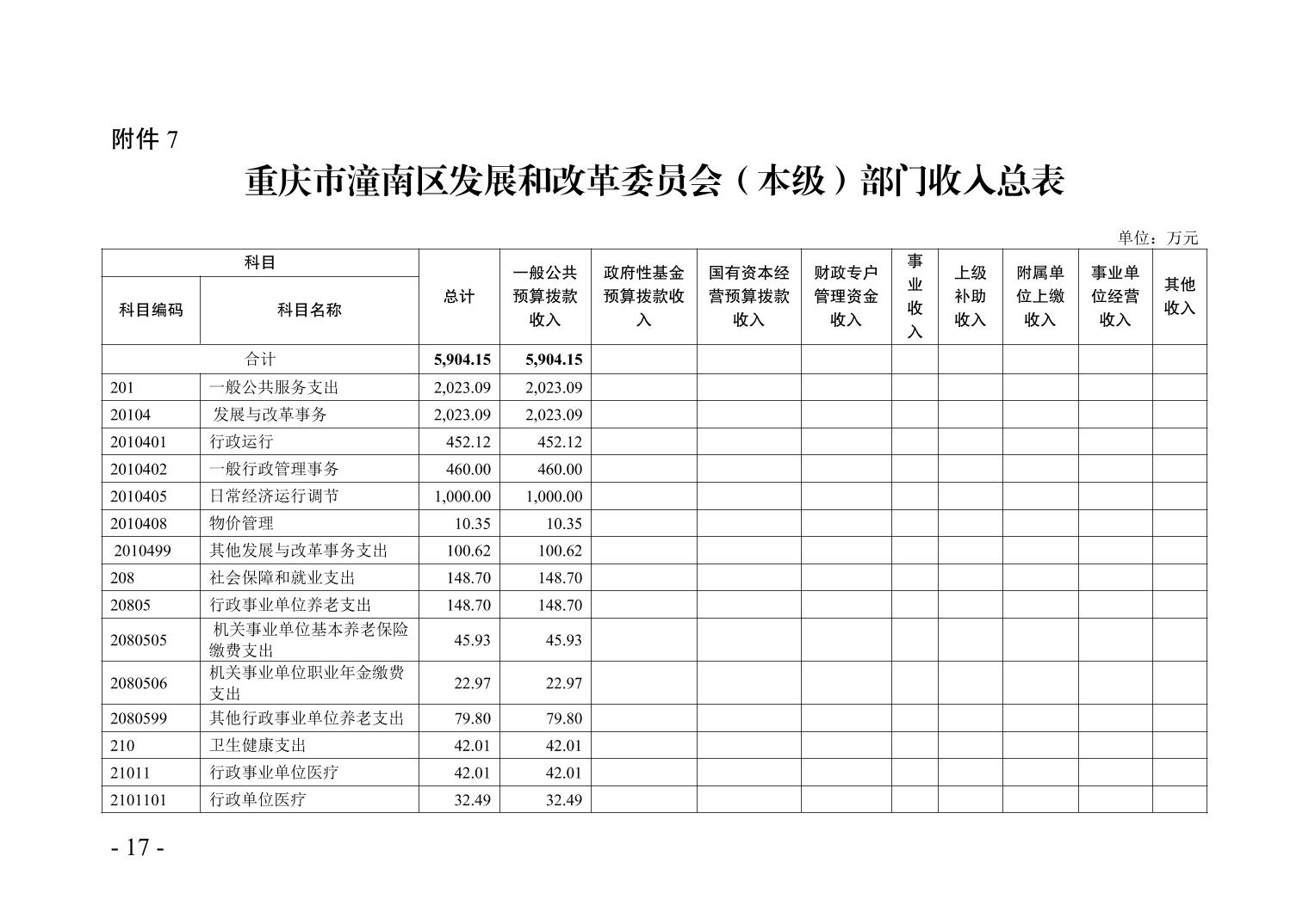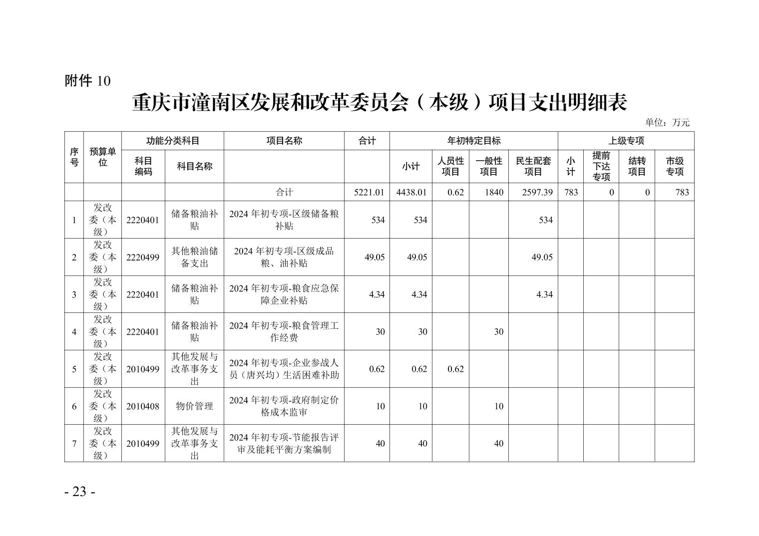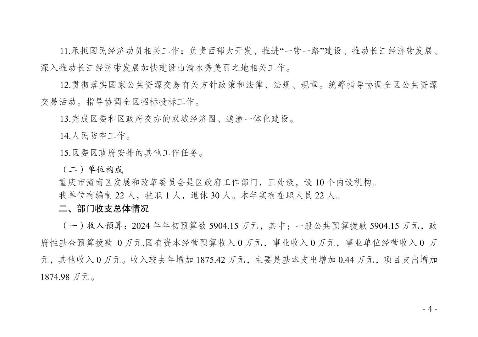 重庆市潼南区发展和改革委员会(本级)2024年部门预算公开