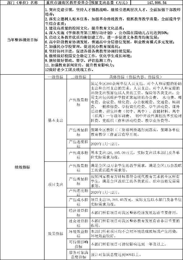 重庆市潼南区教育委员会2020年部门预算含机关运行经费和事业单位经费。