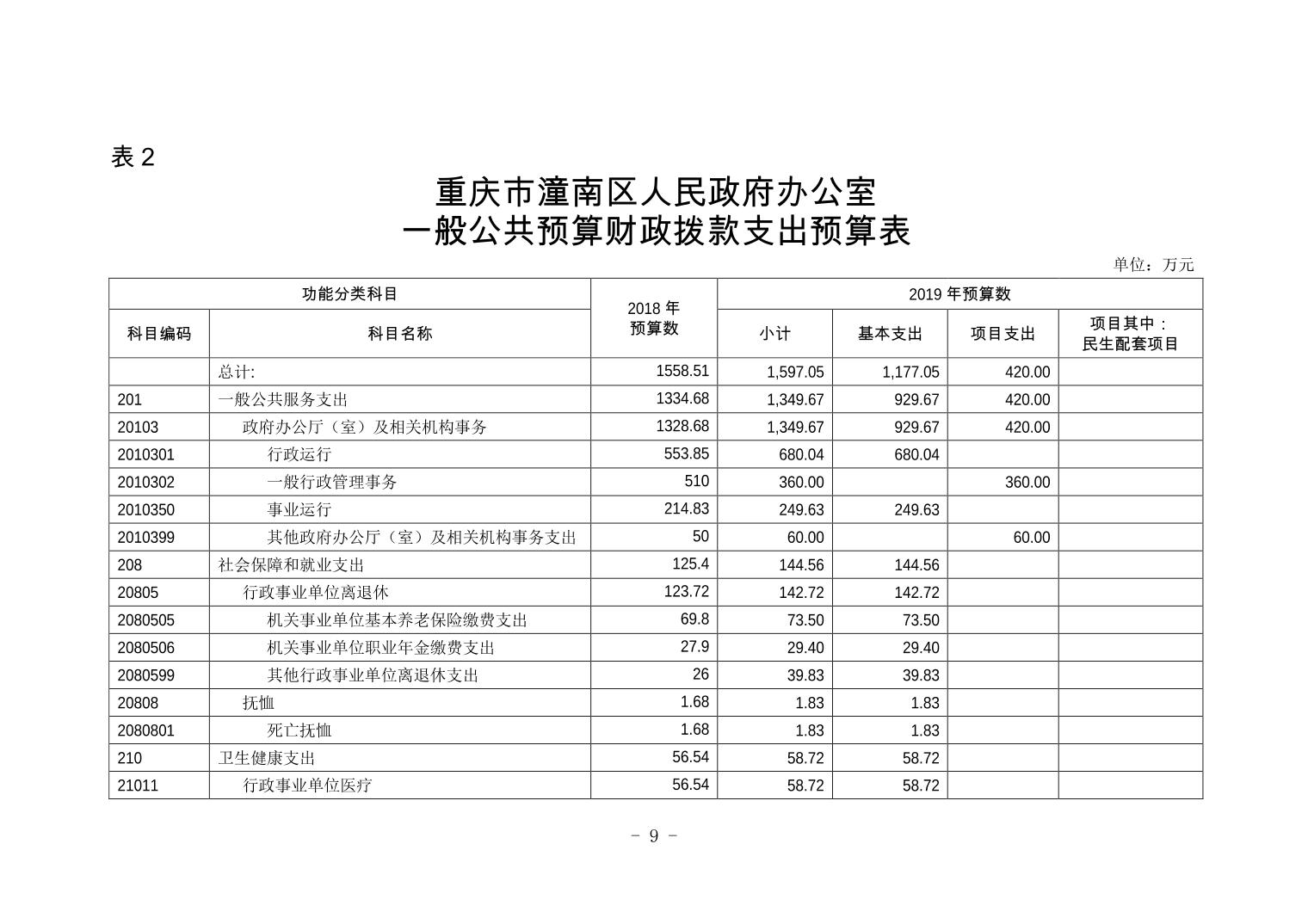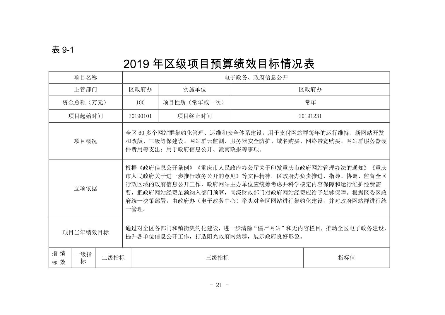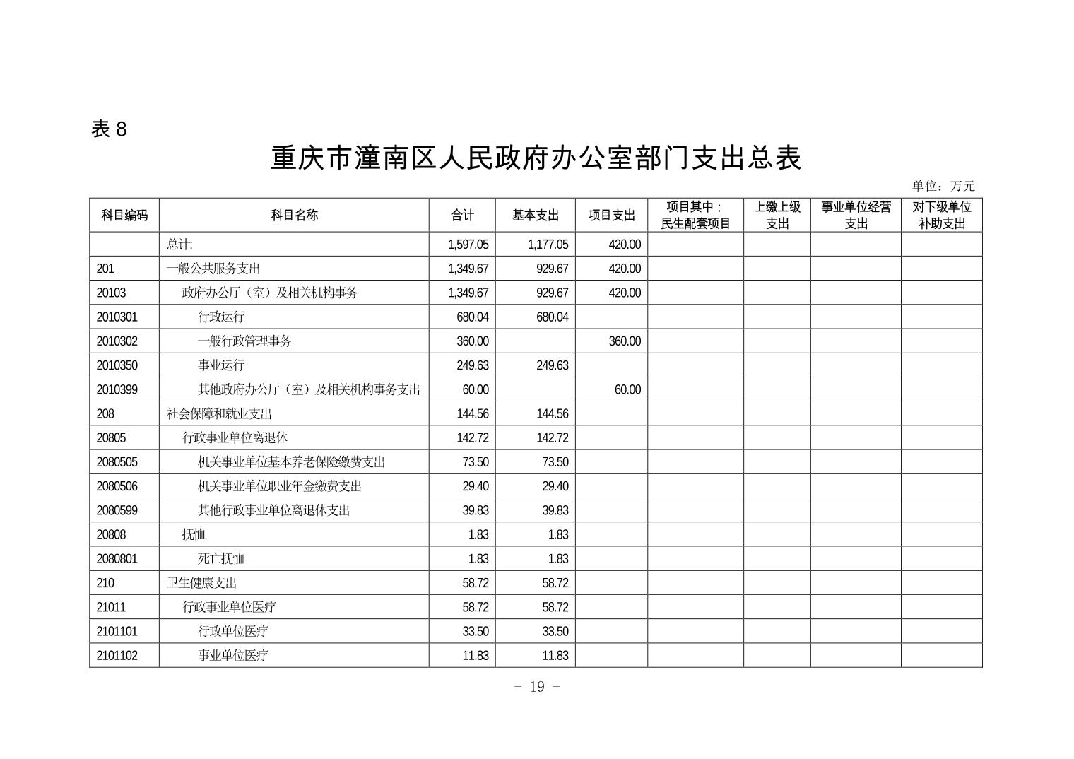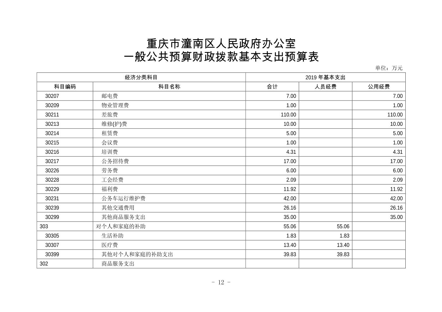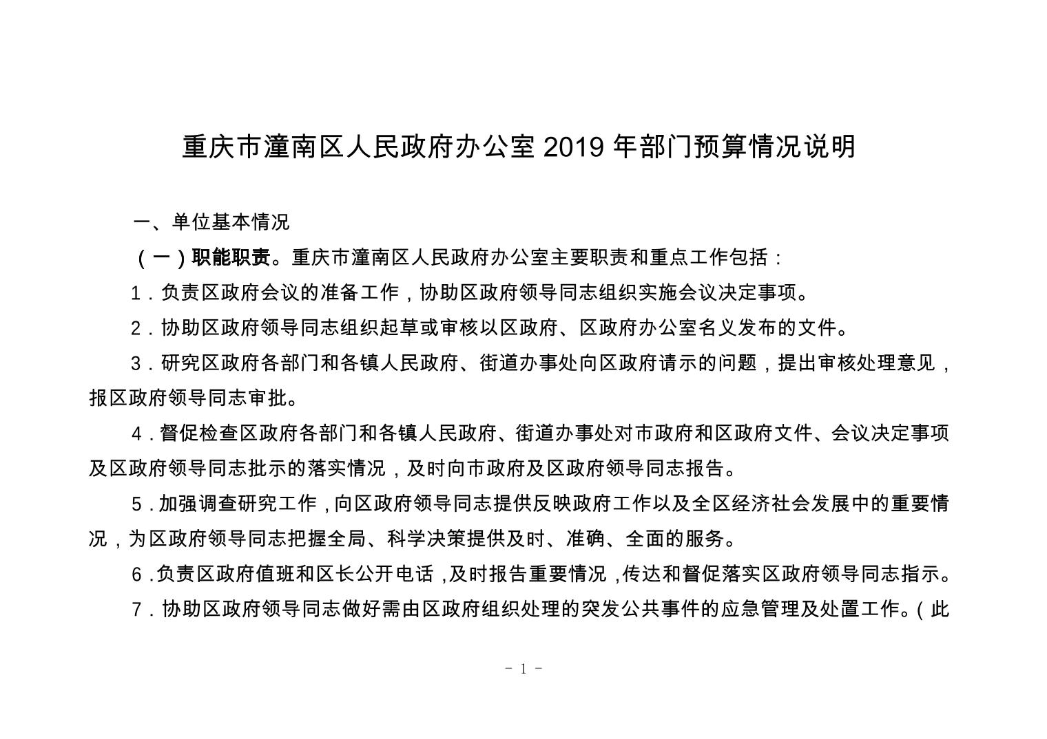 重庆市潼南区人民政府办公室2019年部门预算公开