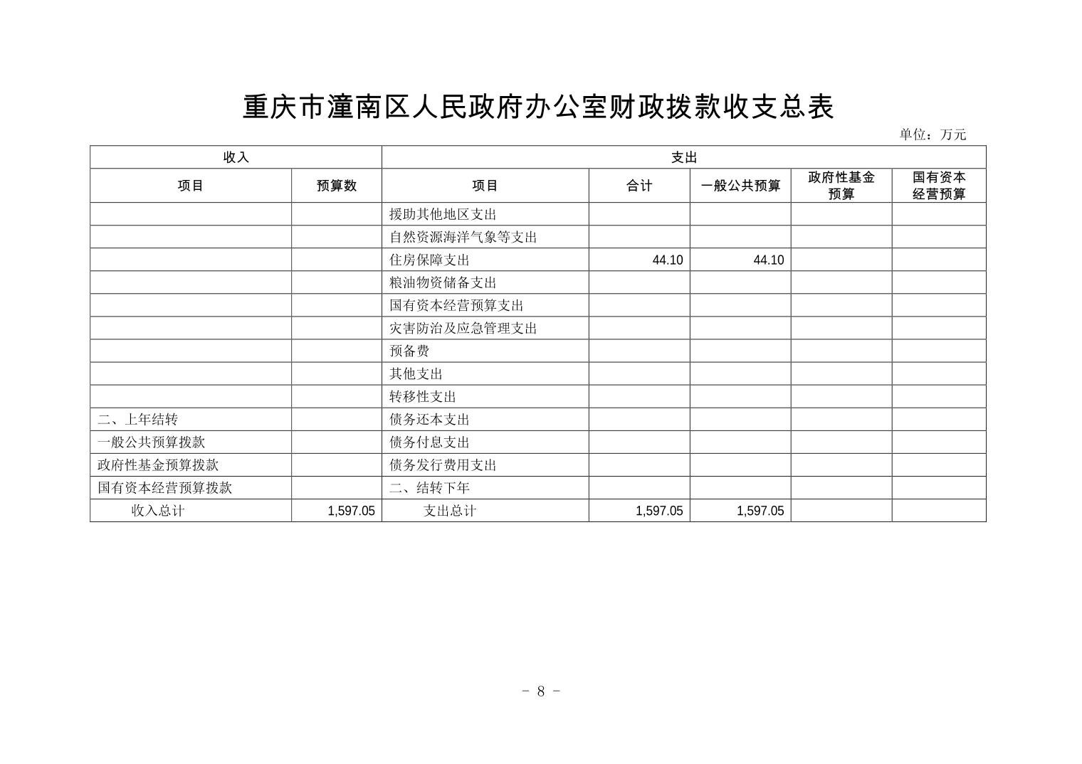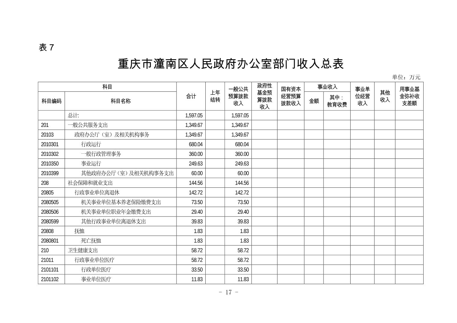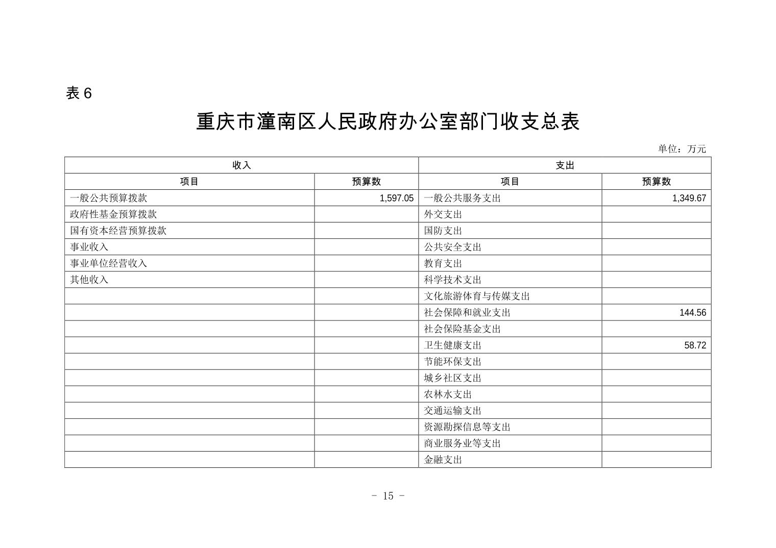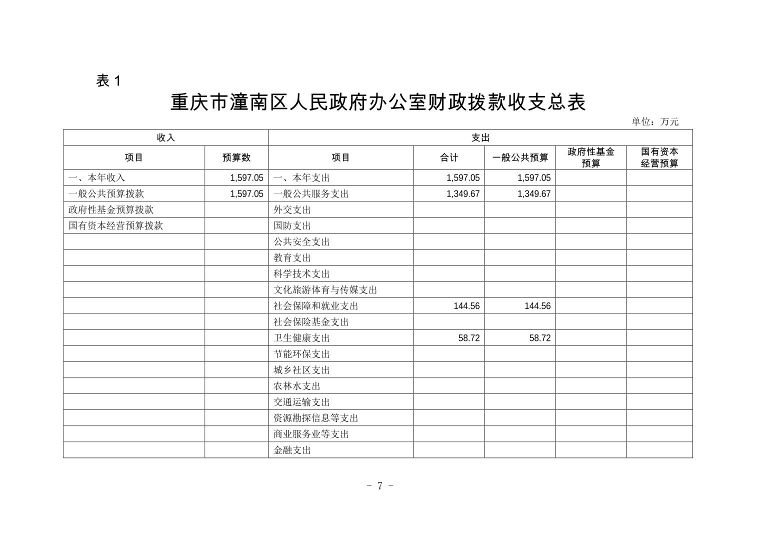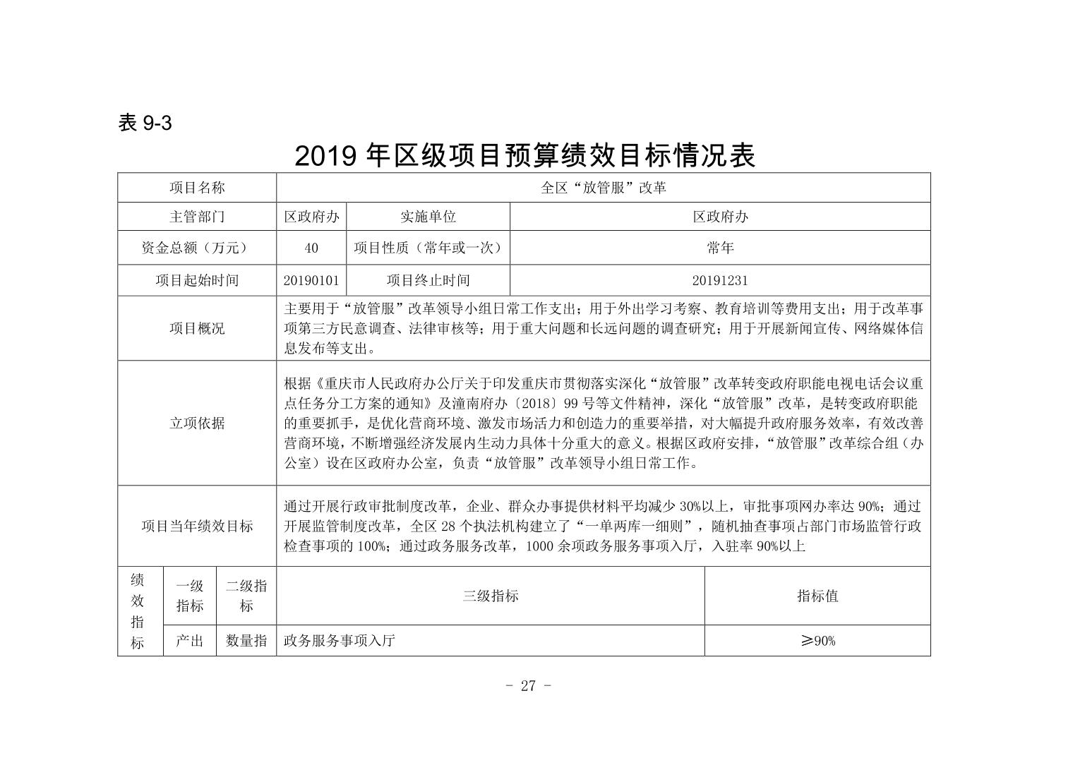 重庆市潼南区人民政府办公室2019年部门预算公开