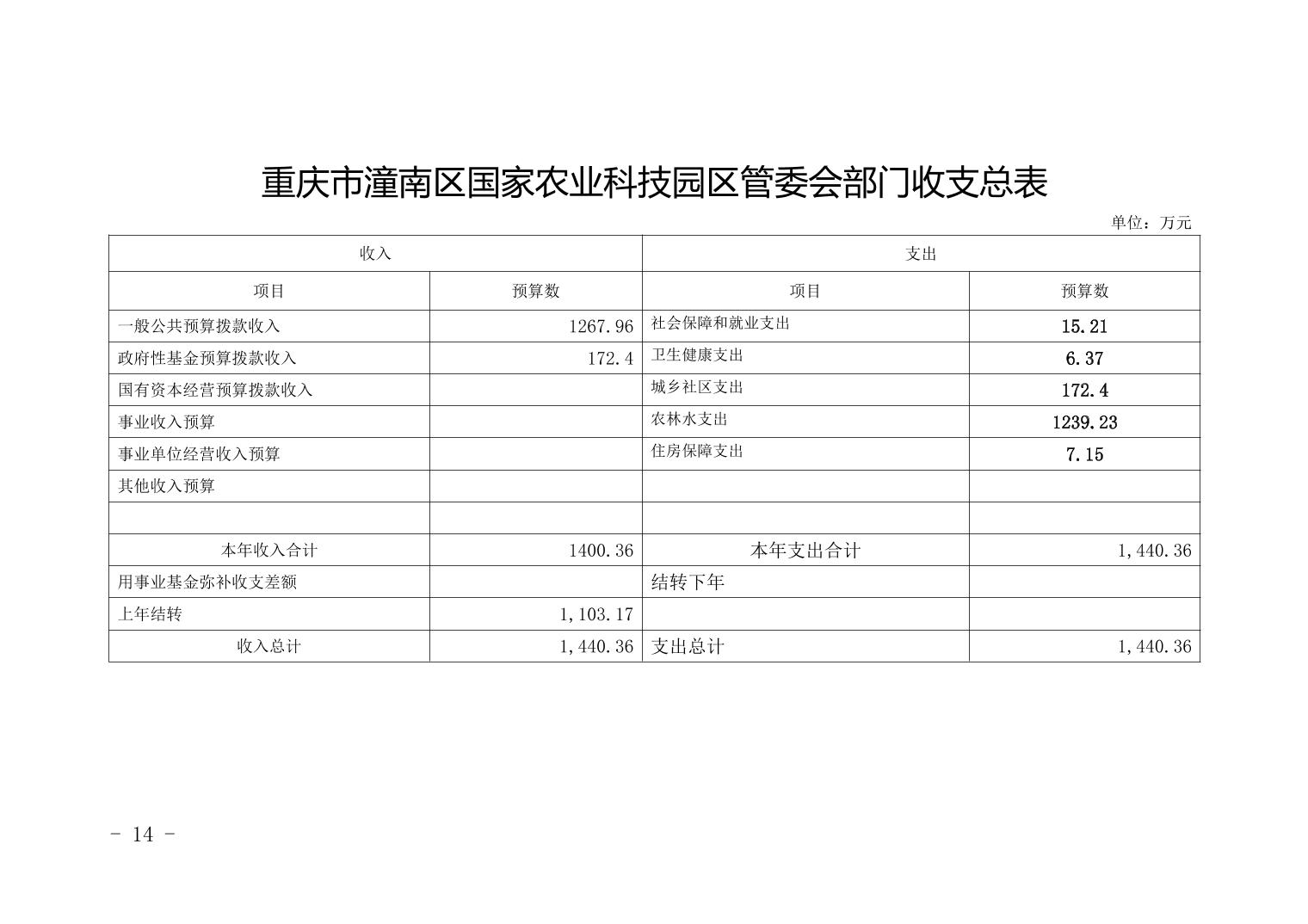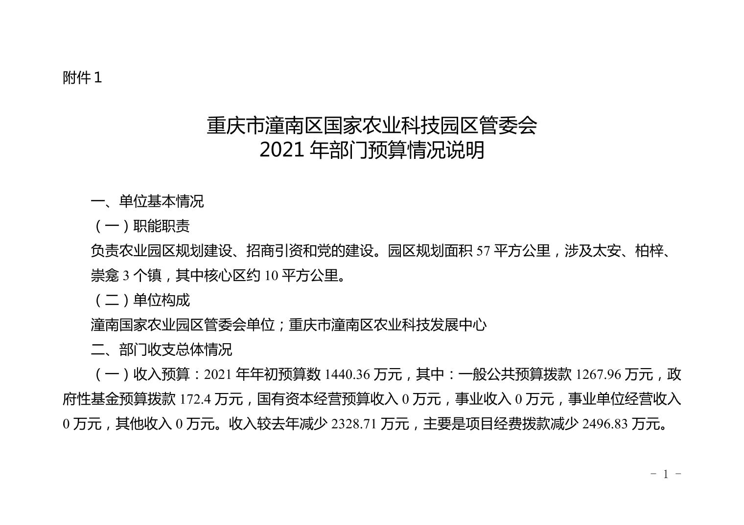 重庆市潼南区国家农业科技园区管委会2021年部门预算公开