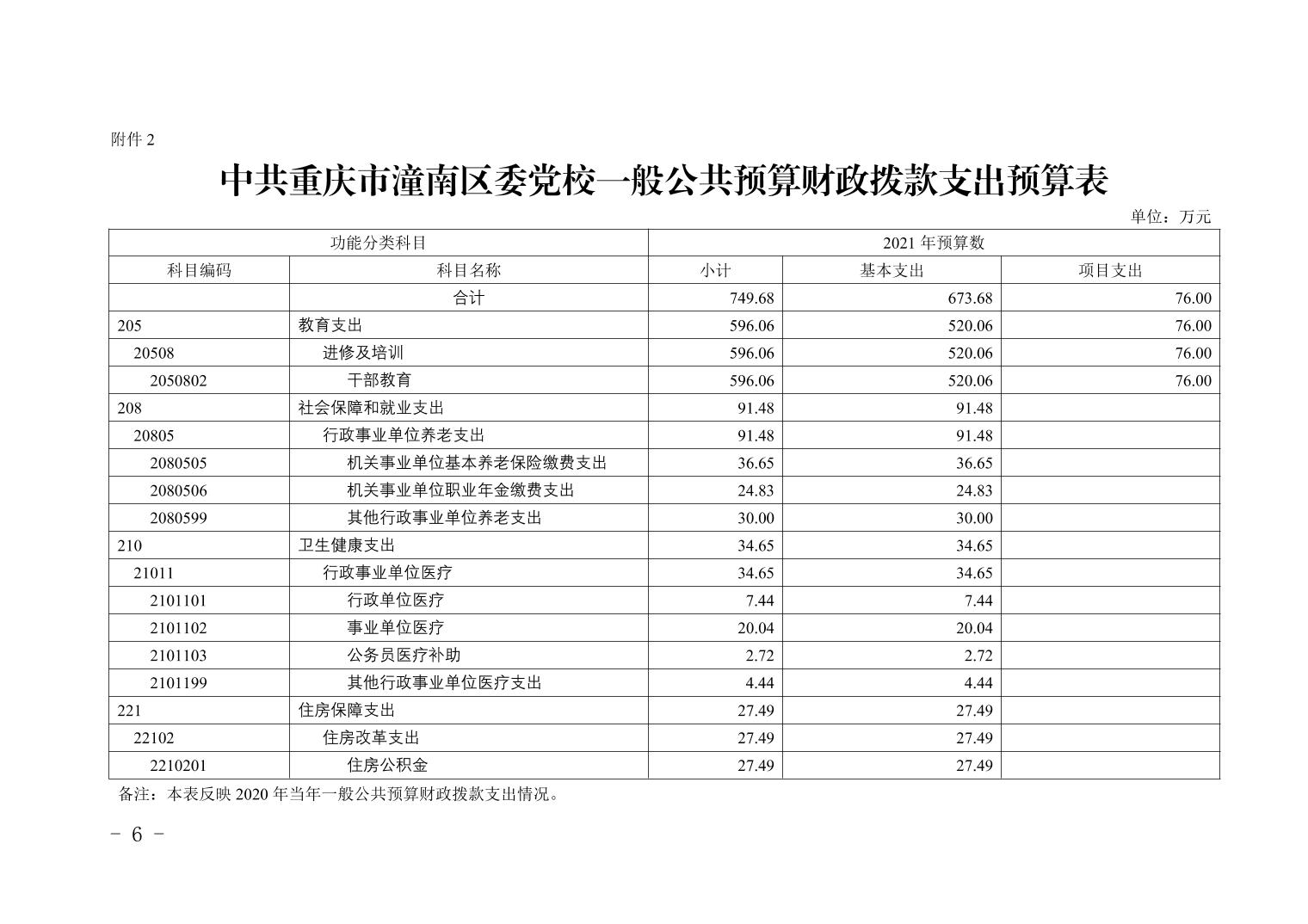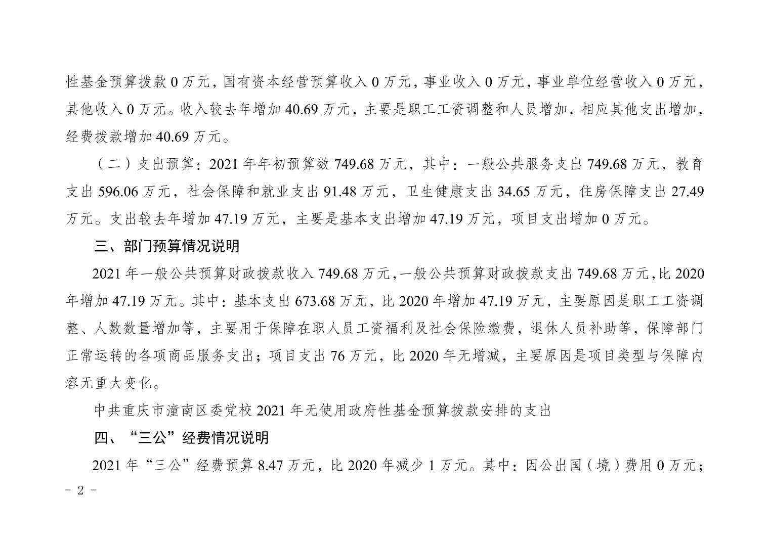 中共重庆市潼南区委党校2021年部门预算公开