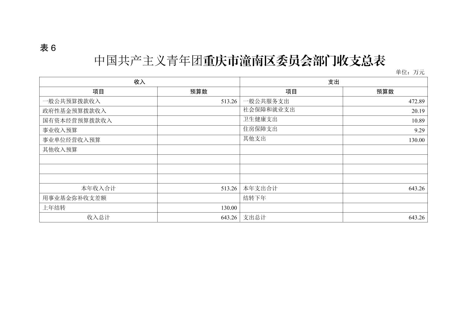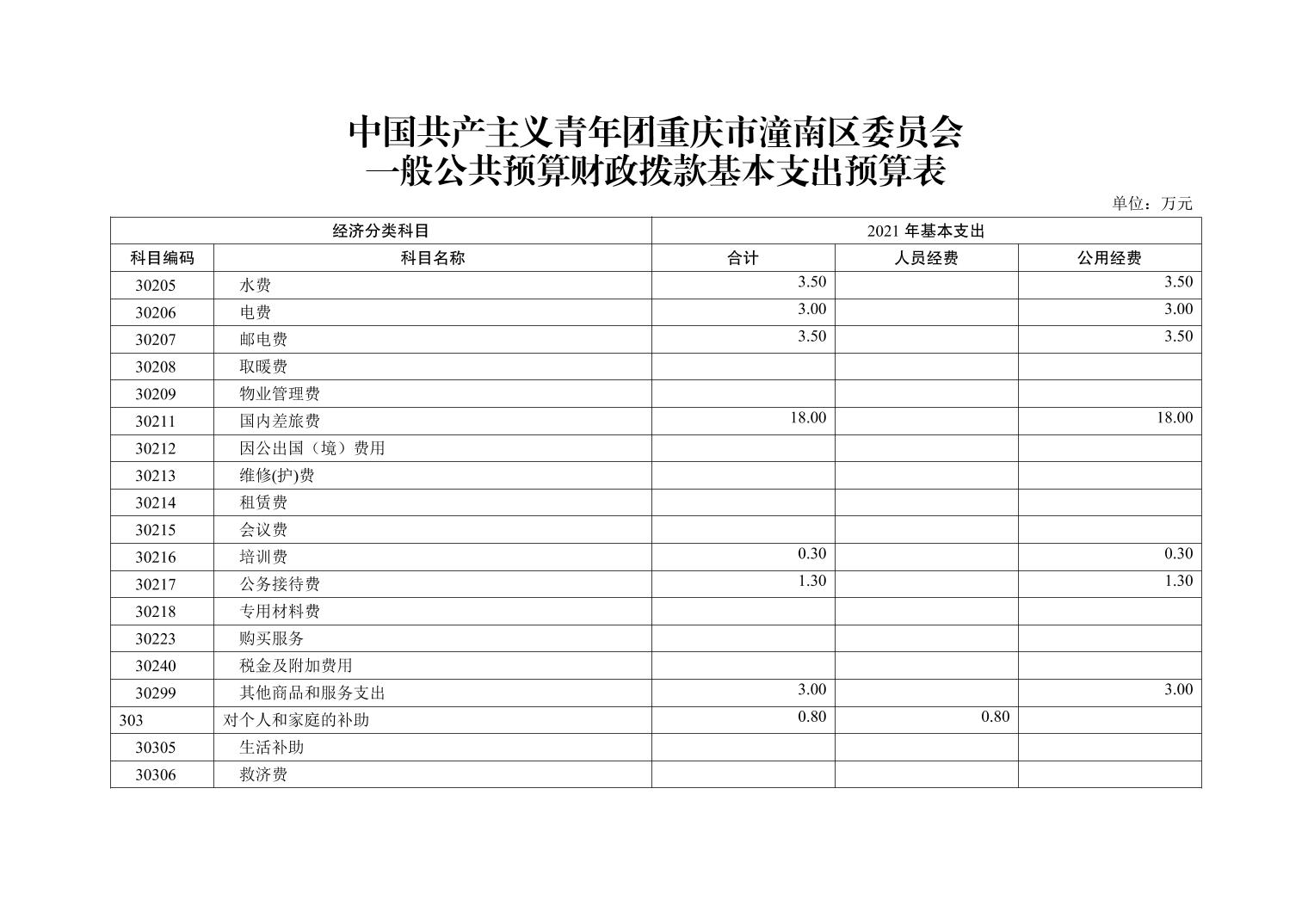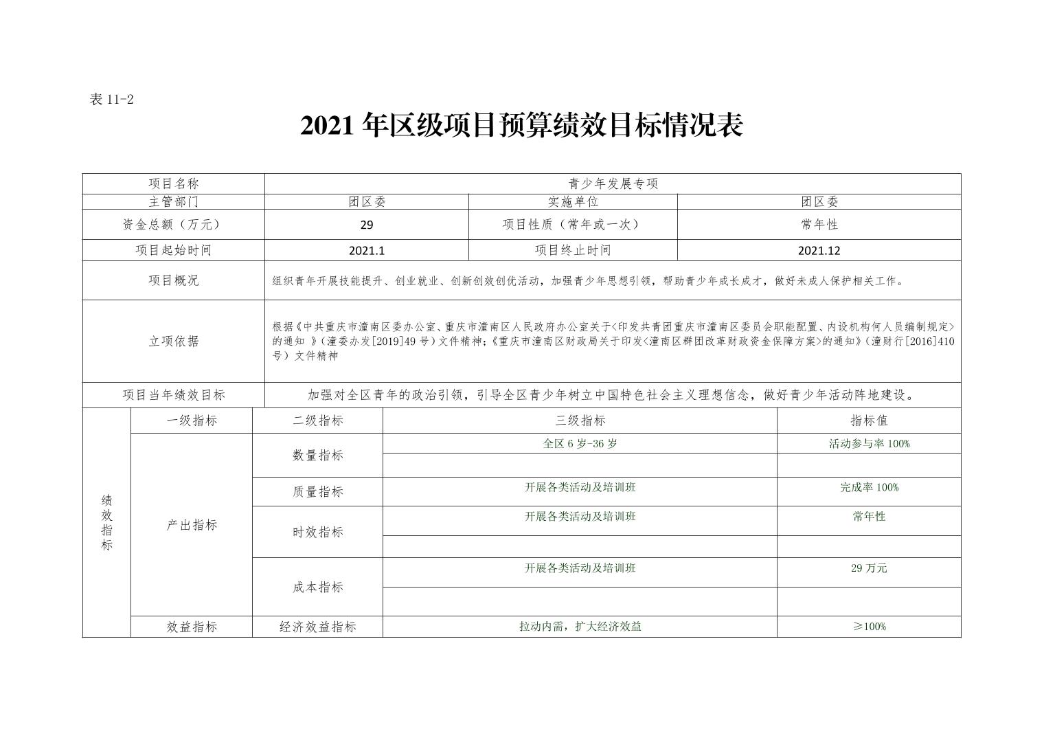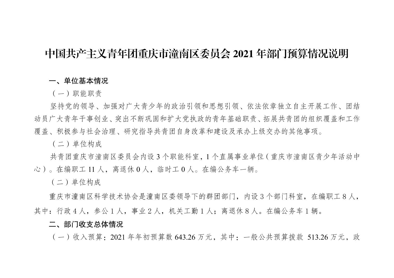 中国共产主义青年团重庆市潼南区委员会2021年部门预算公开