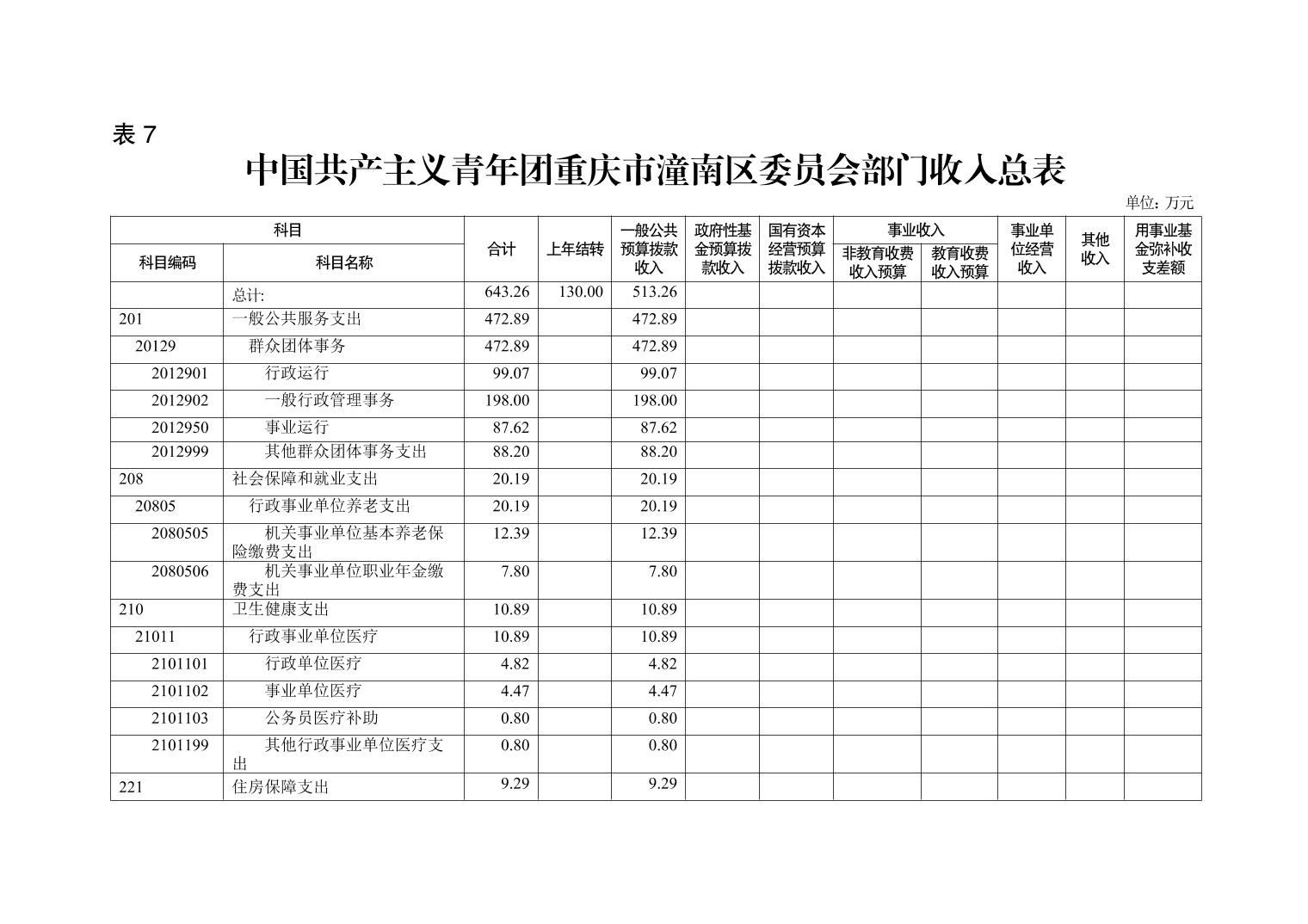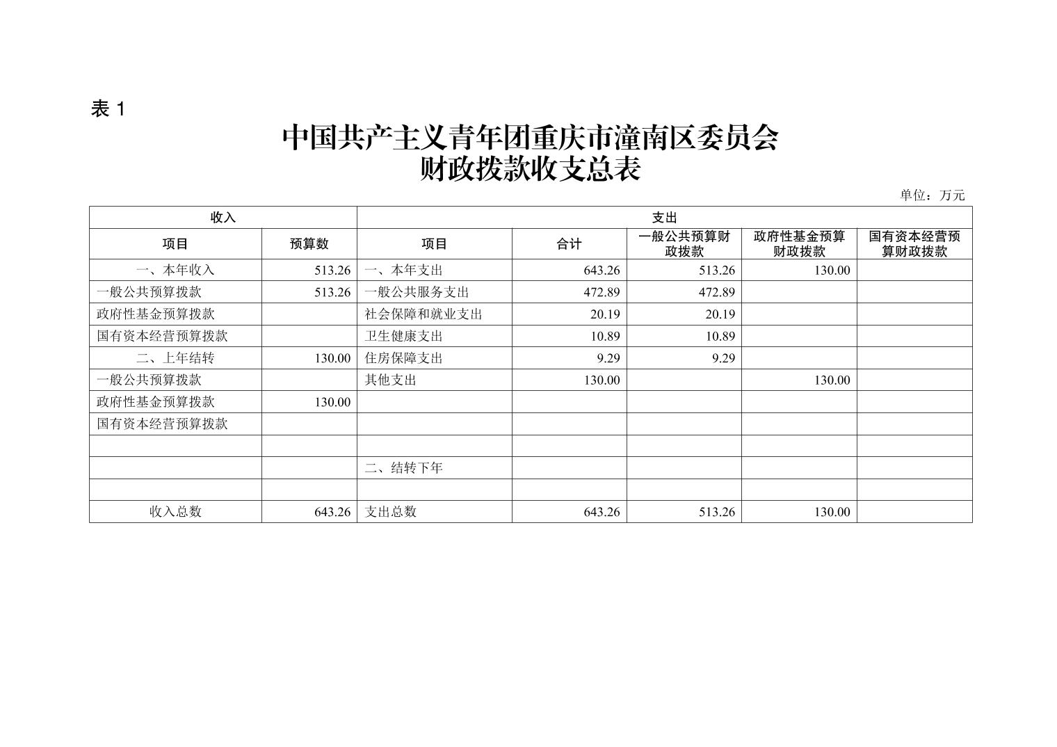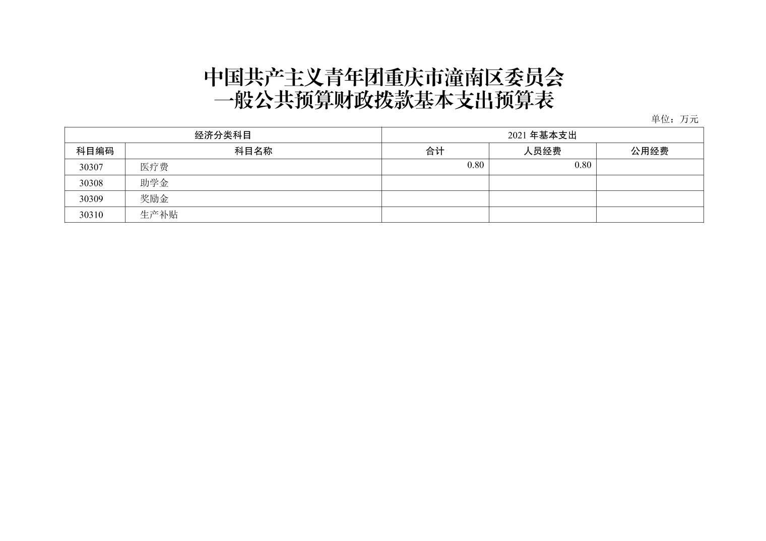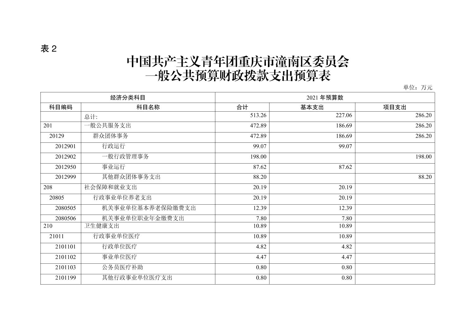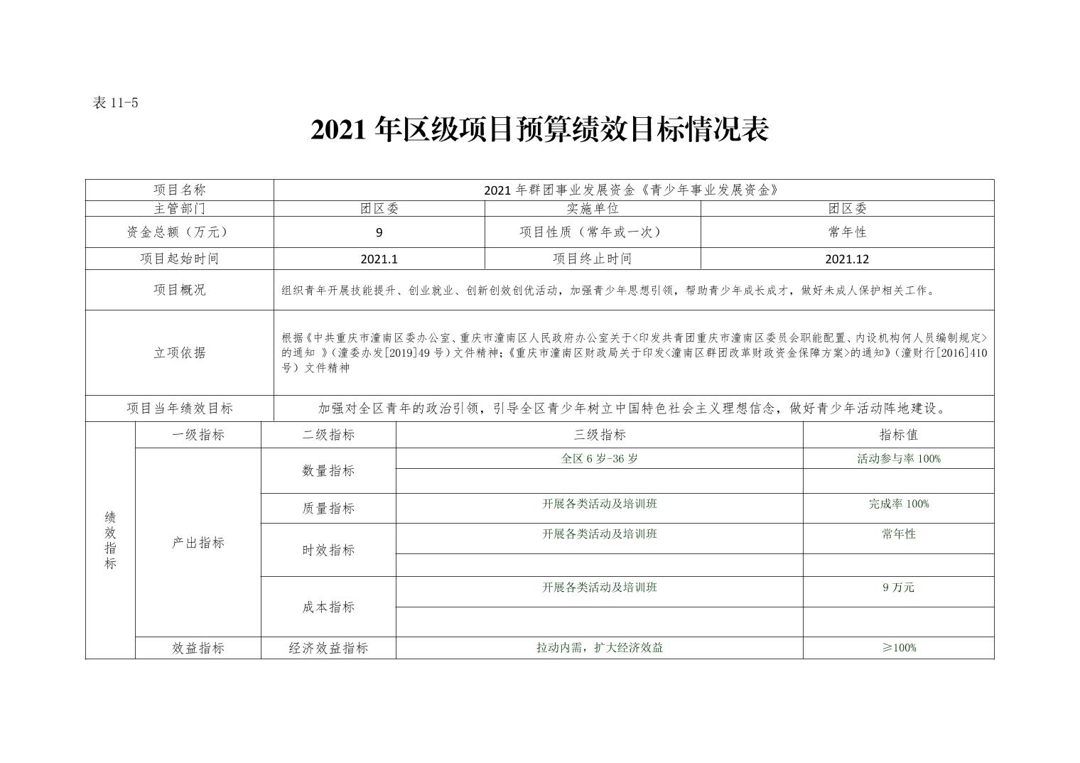 中国共产主义青年团重庆市潼南区委员会2021年部门预算公开