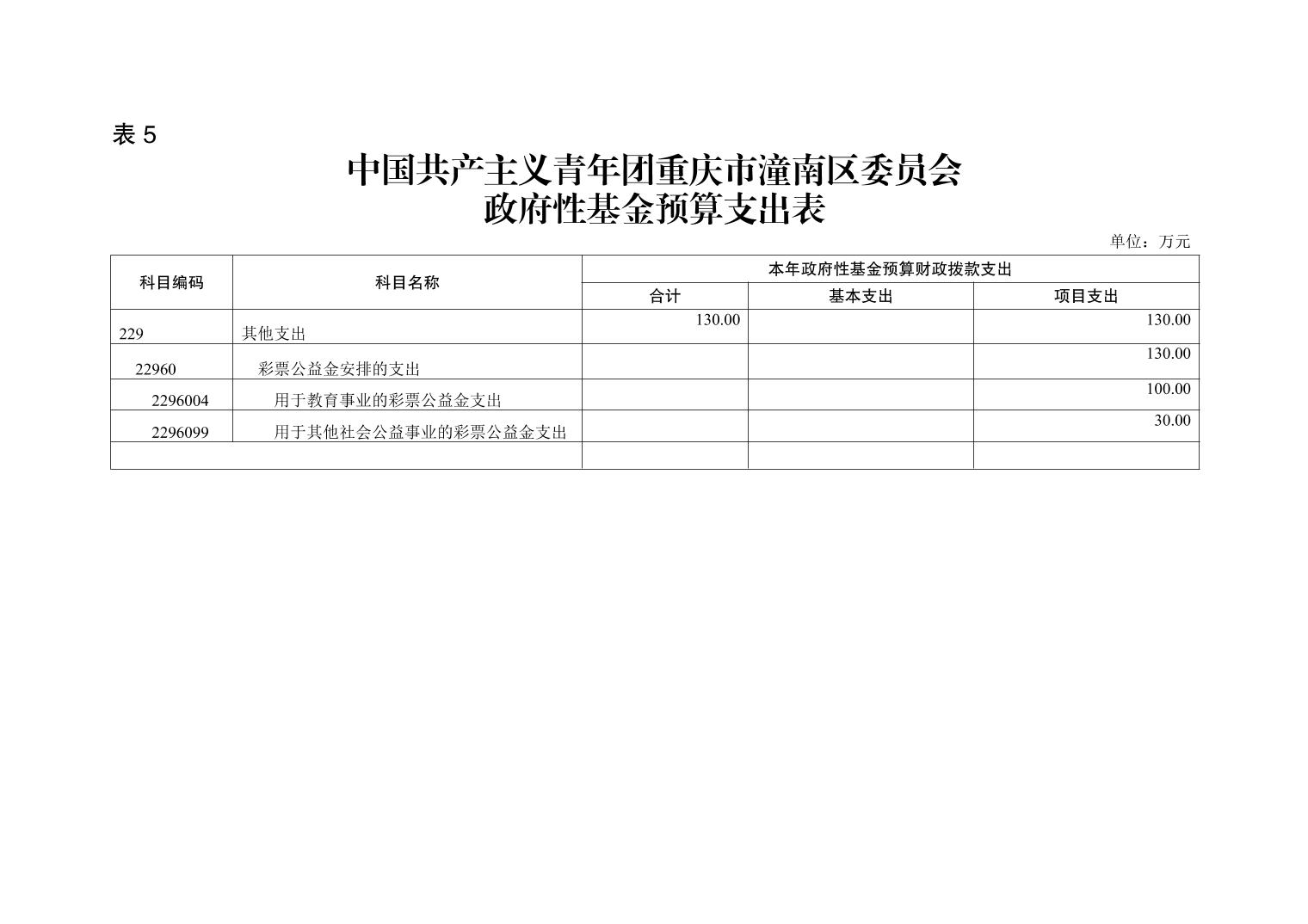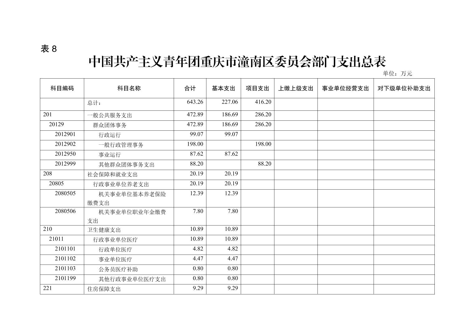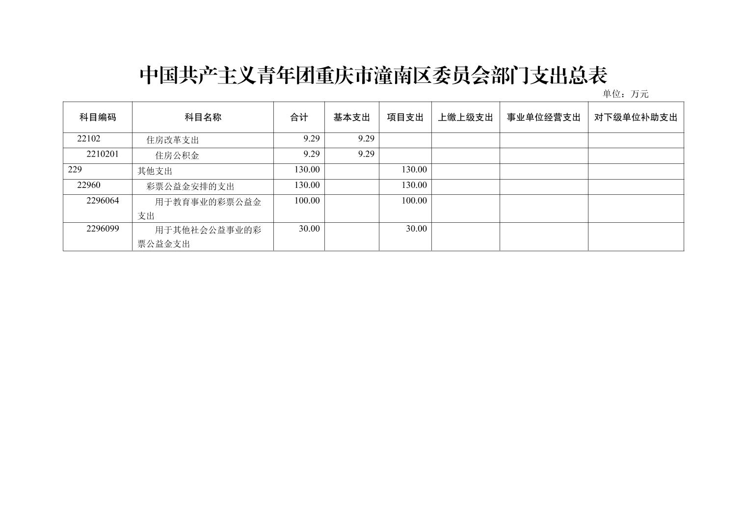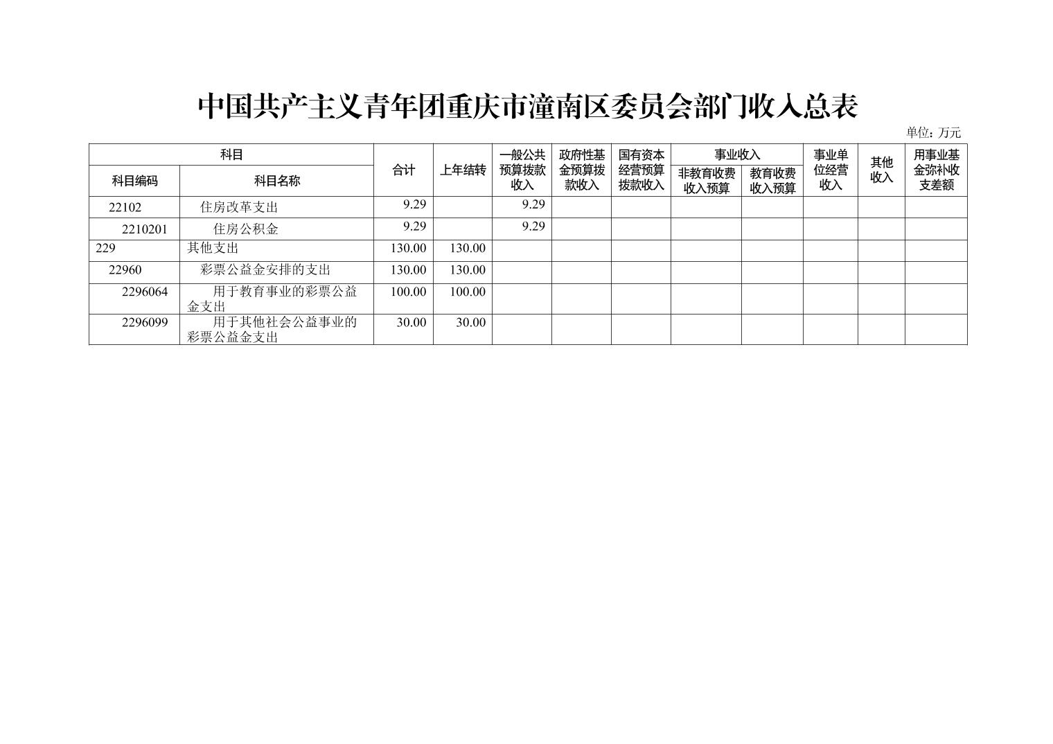 中国共产主义青年团重庆市潼南区委员会2021年部门预算公开