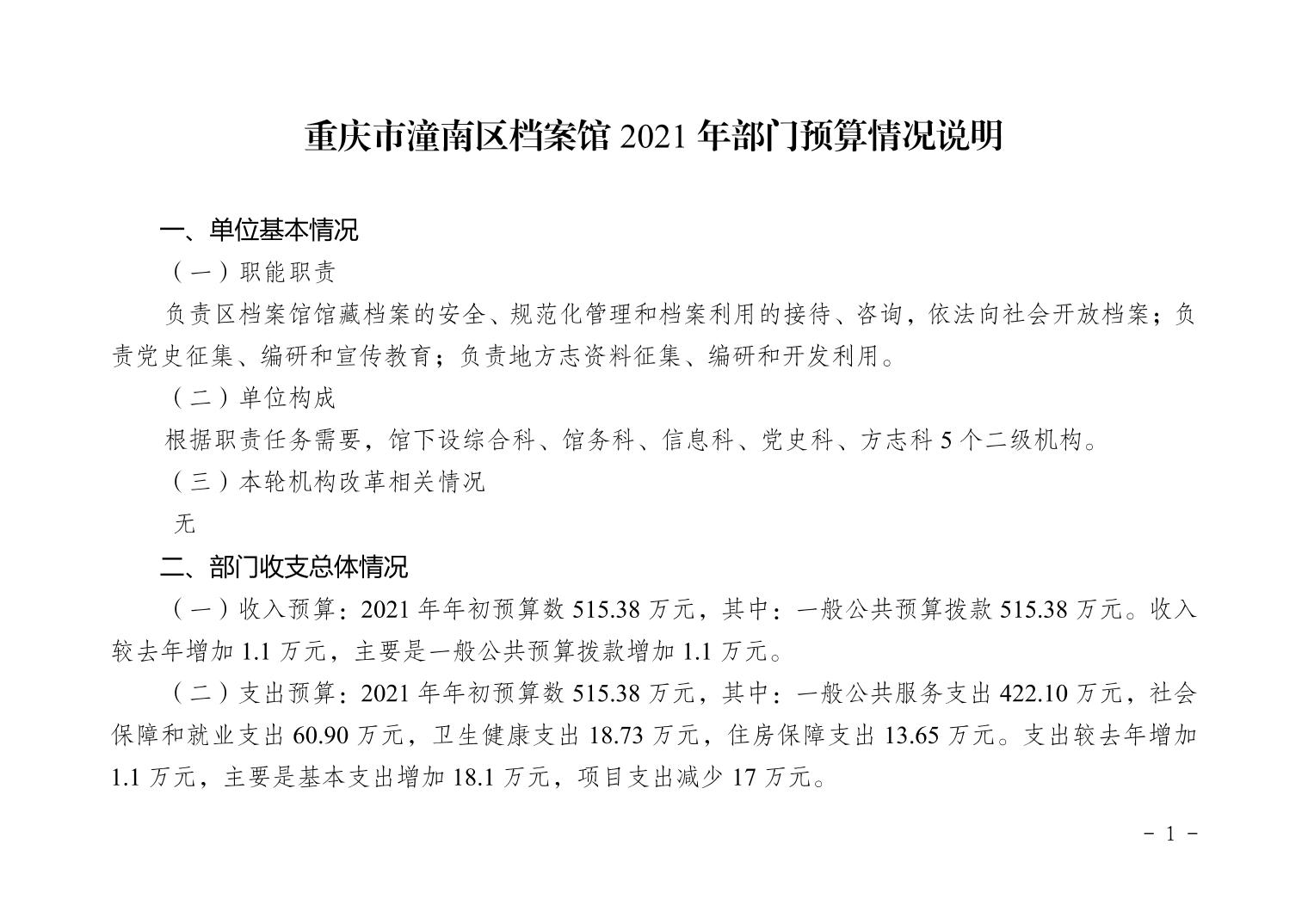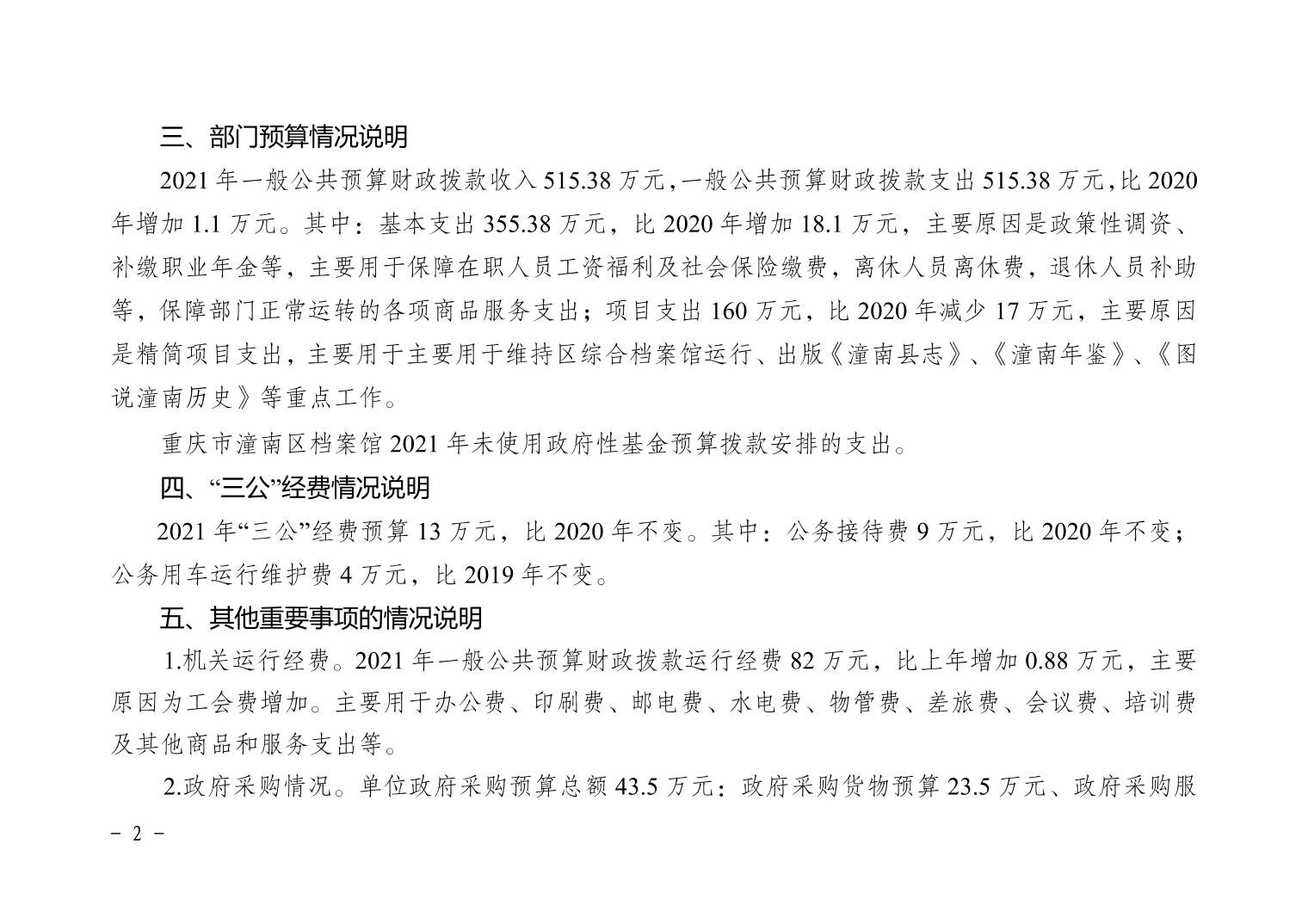 重庆市潼南区档案馆2021年部门预算公开