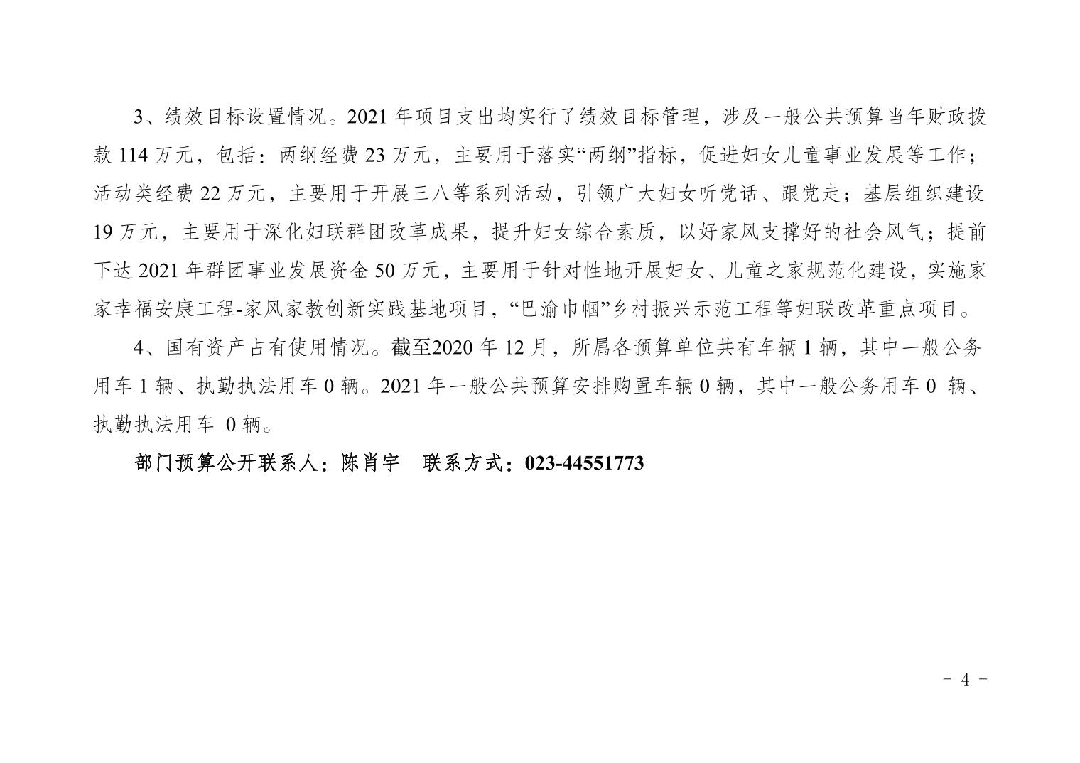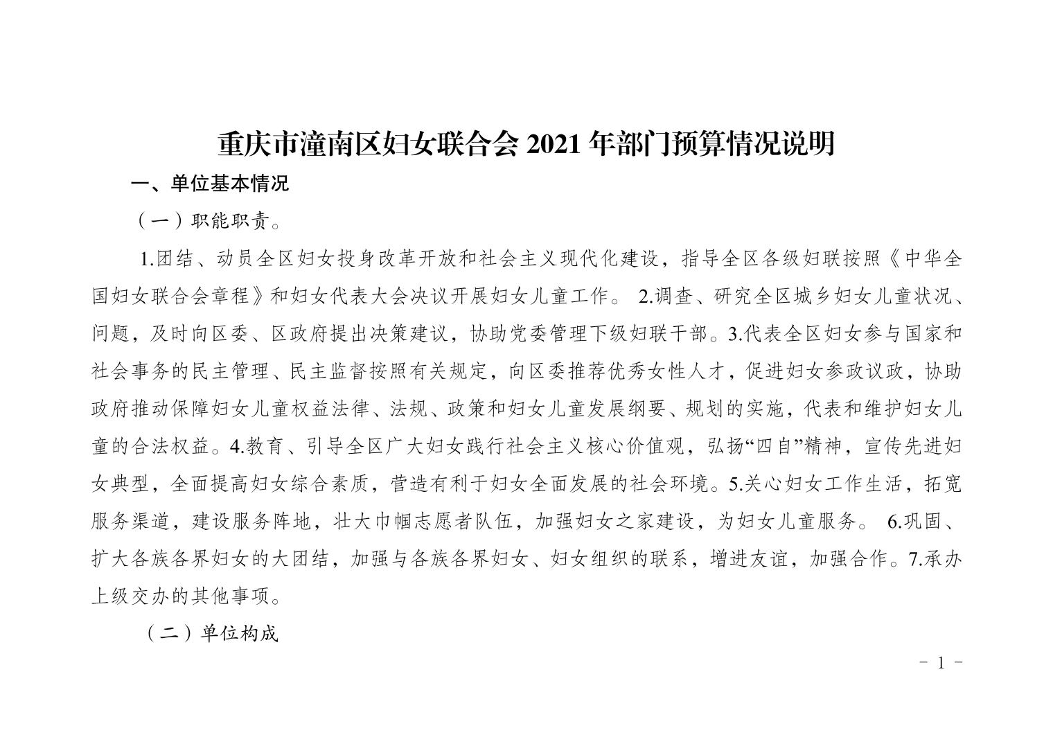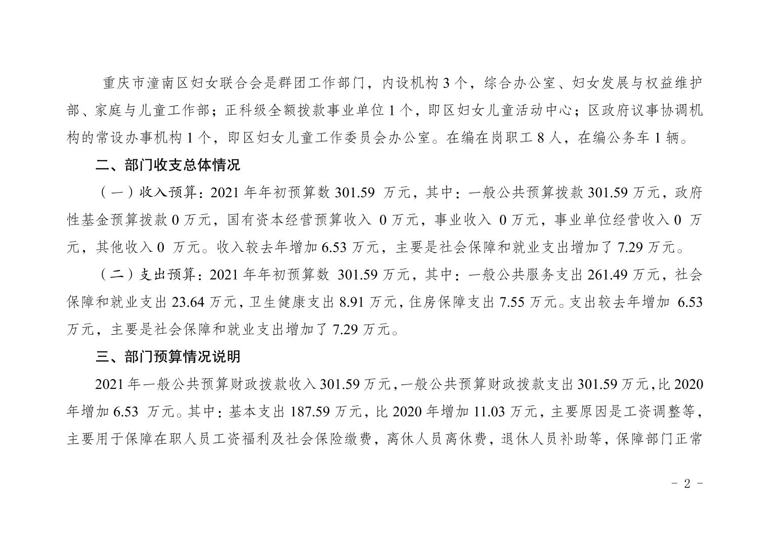 重庆市潼南区妇女联合会2021年部门预算公开