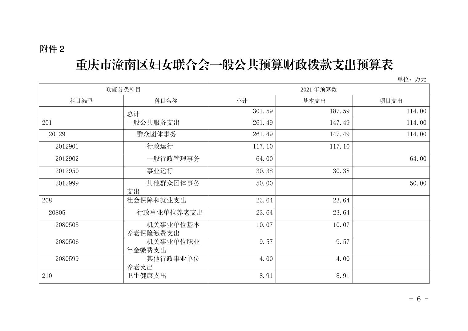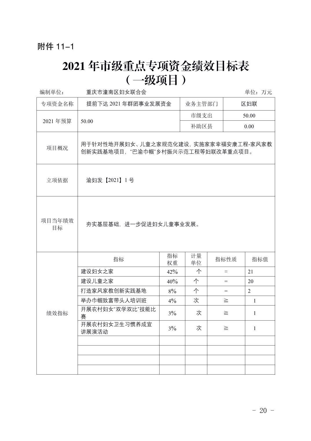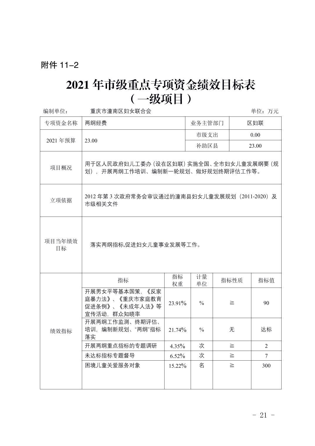 重庆市潼南区妇女联合会2021年部门预算公开