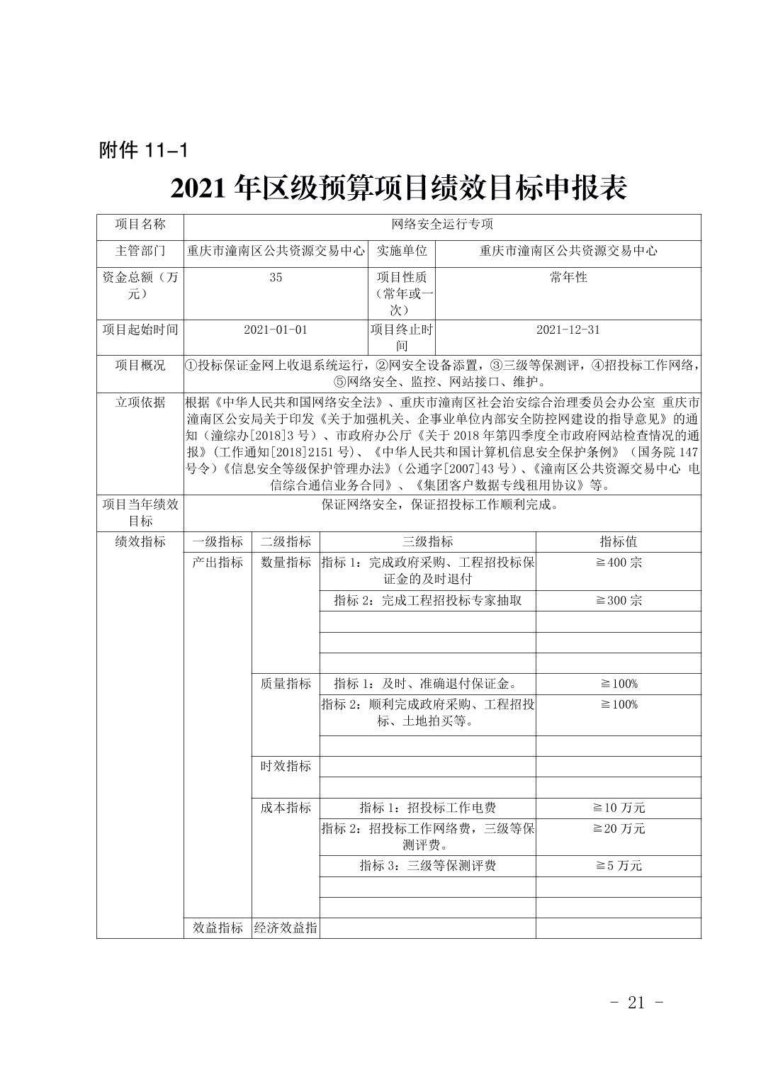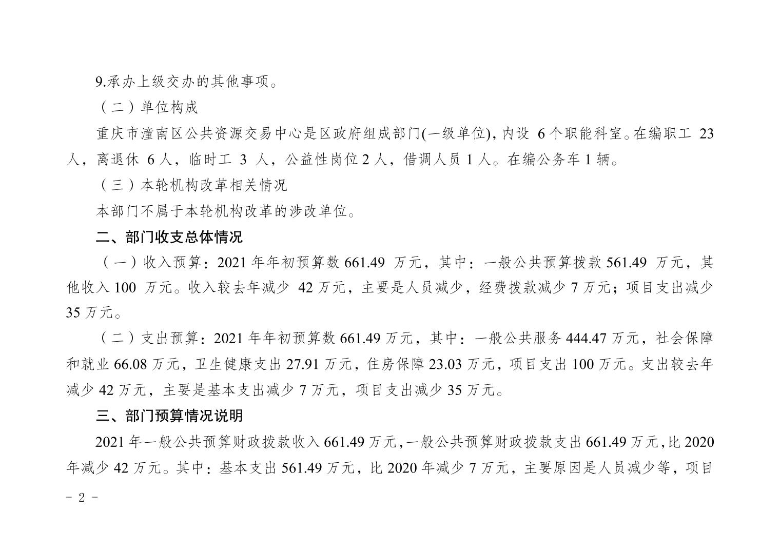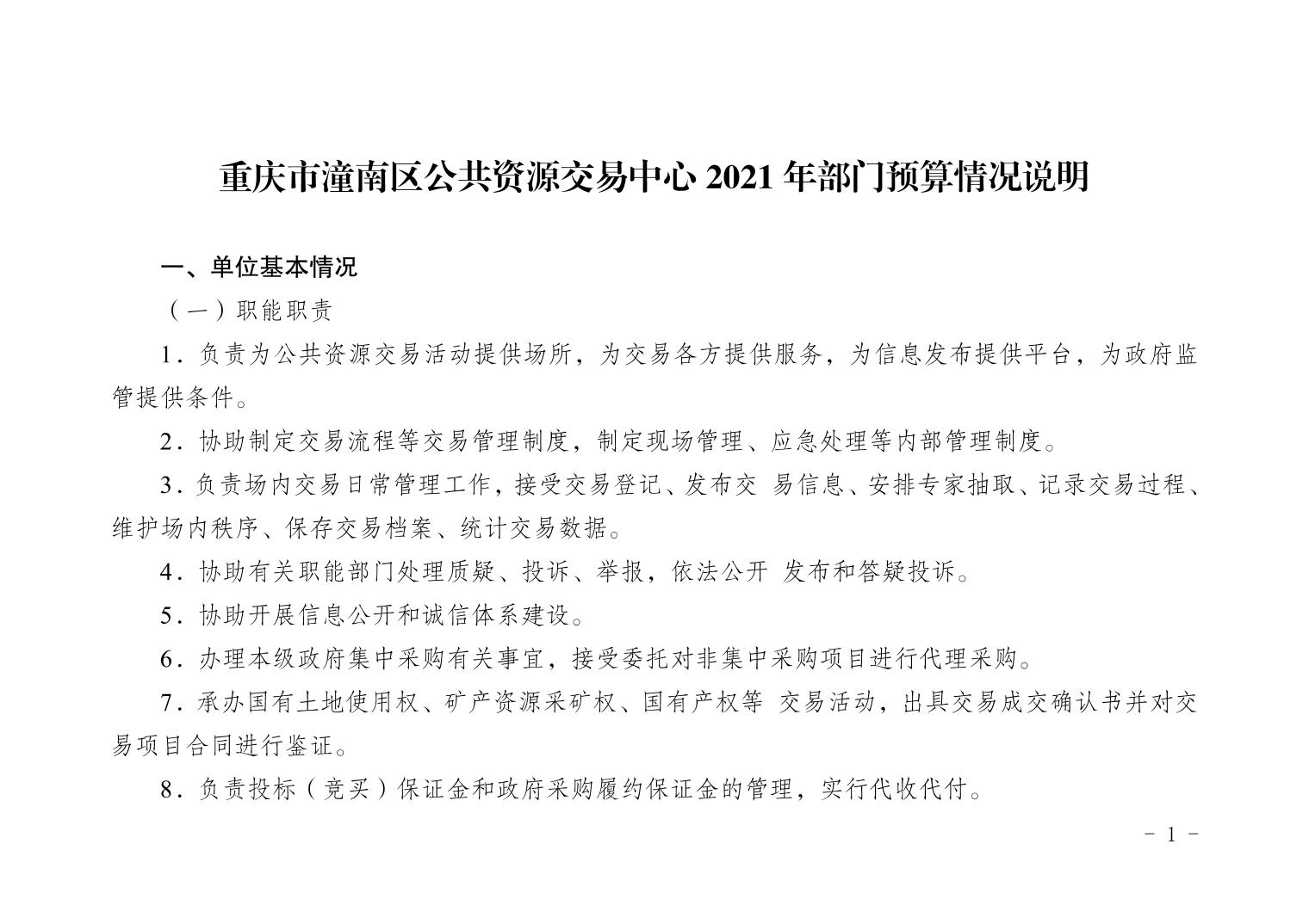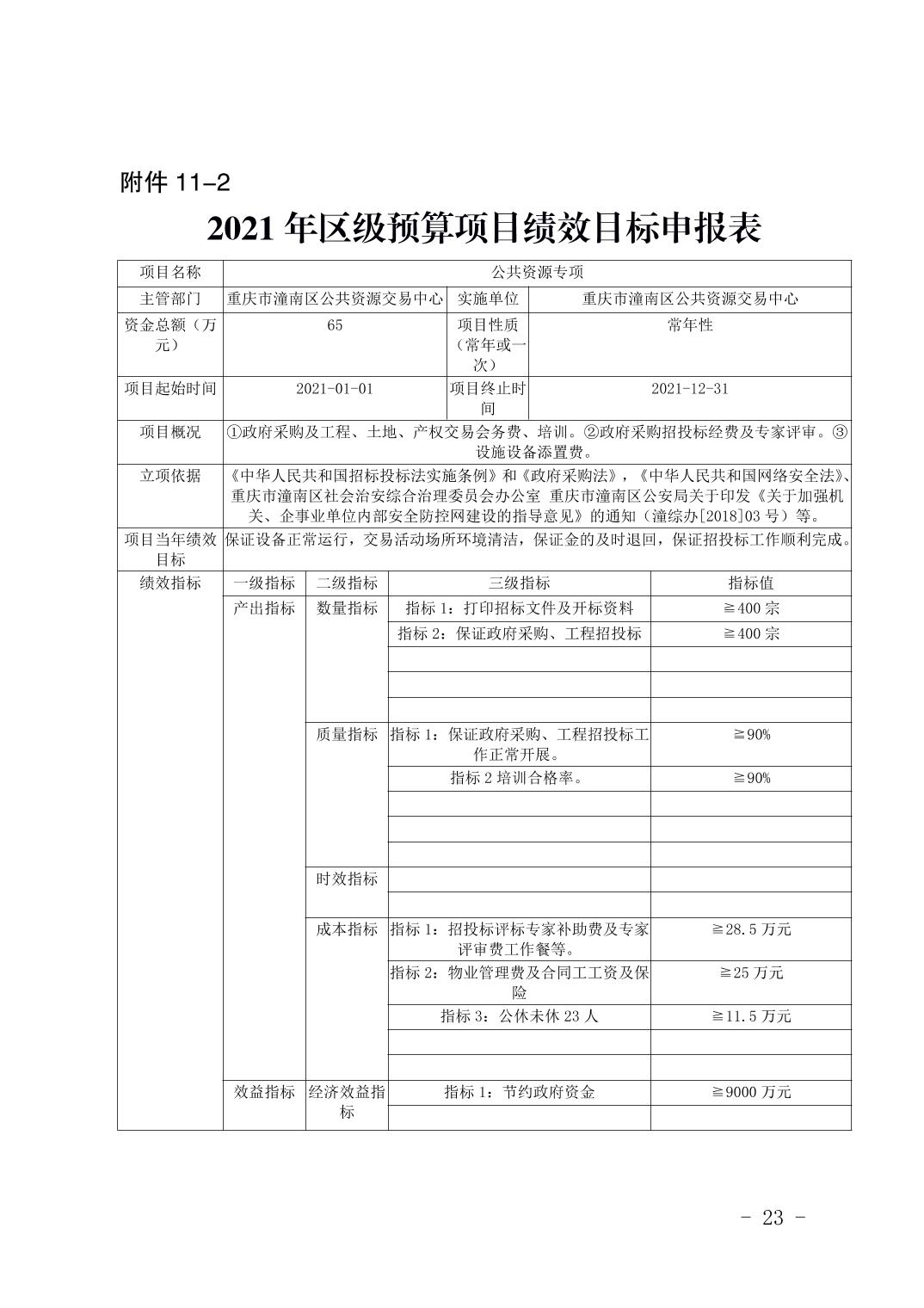 重庆市潼南区公共资源交易中心2021年部门预算公开