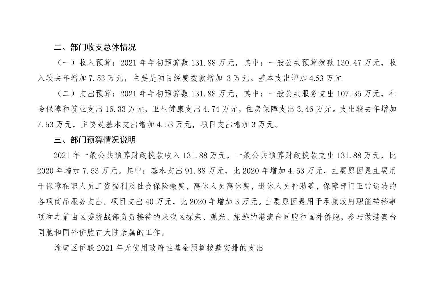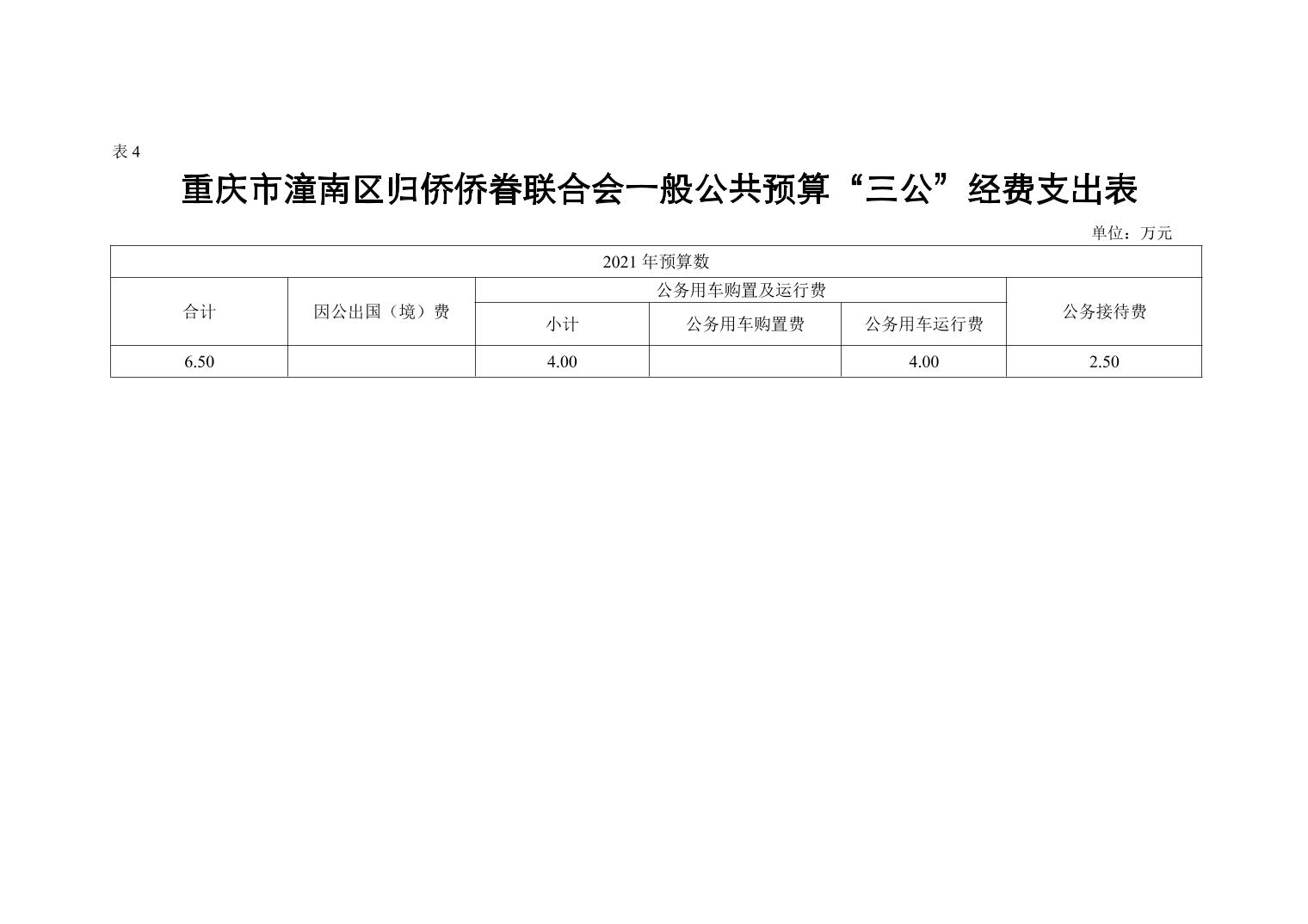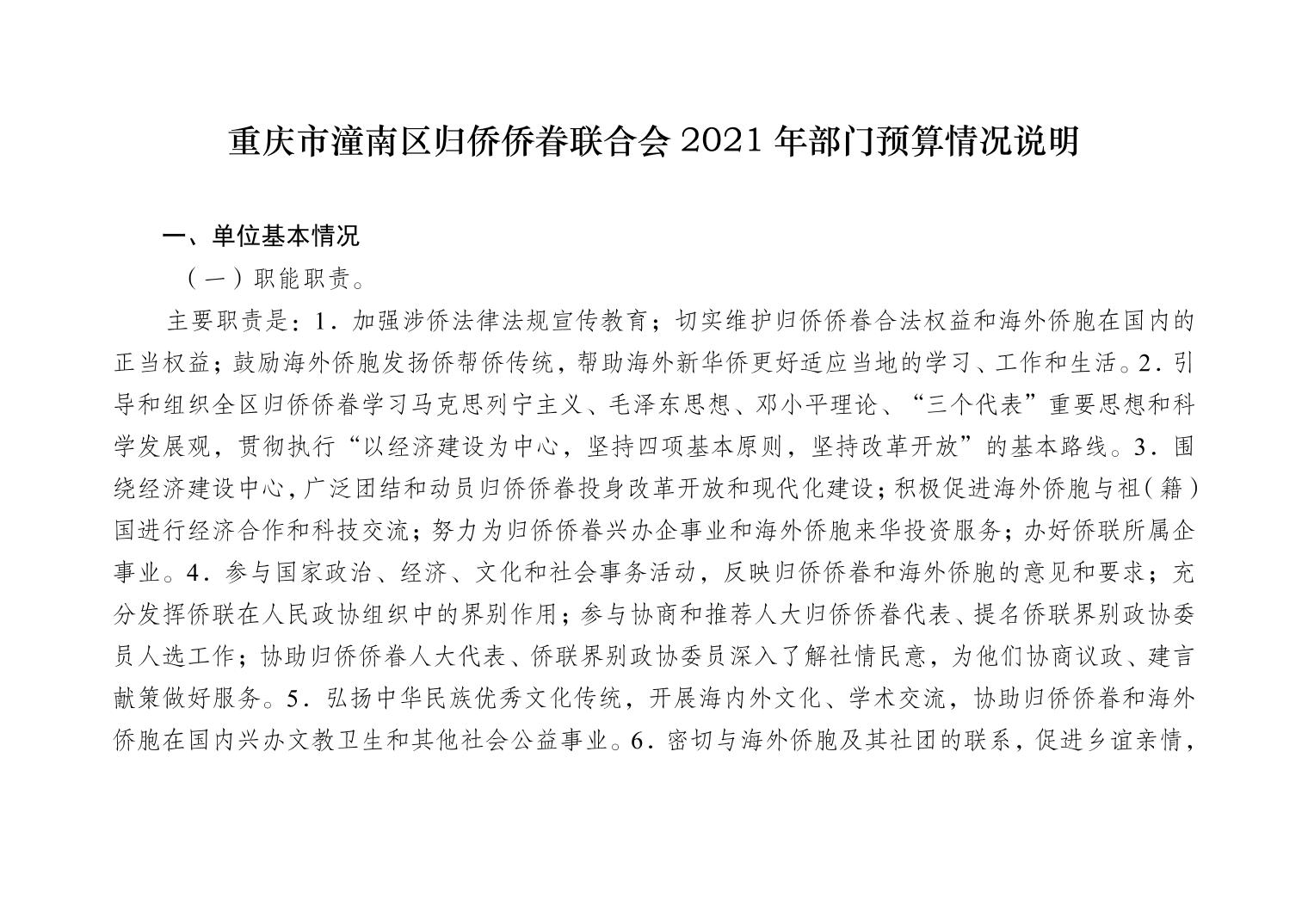 重庆市潼南区归侨侨眷联合会2021年部门预算公开