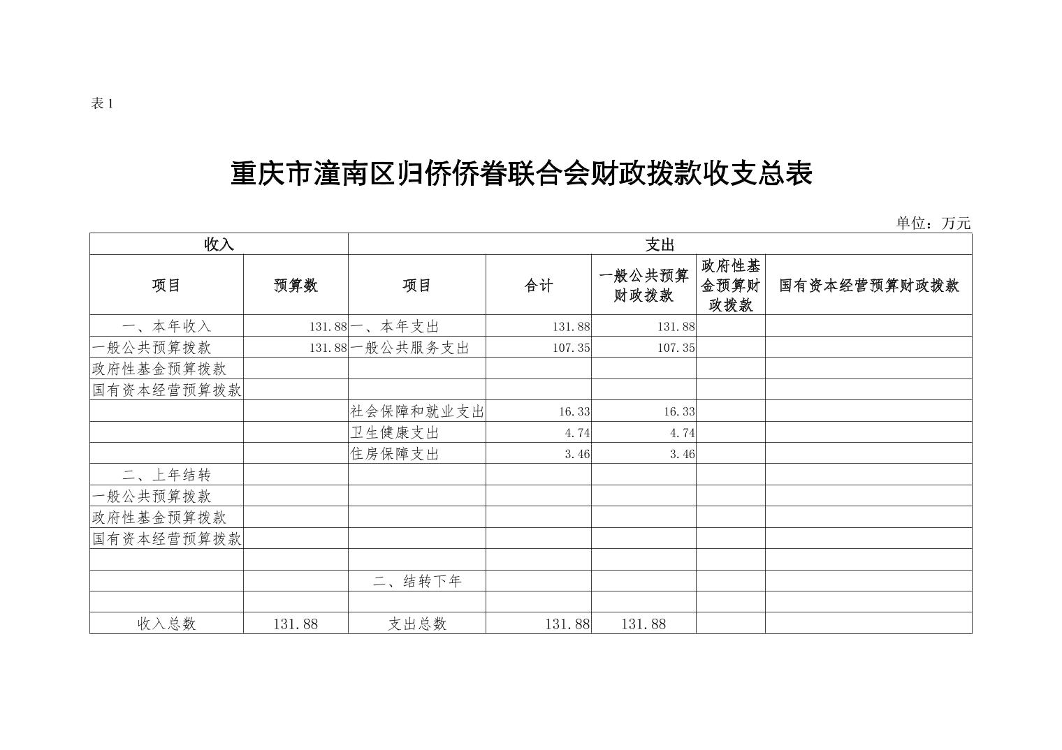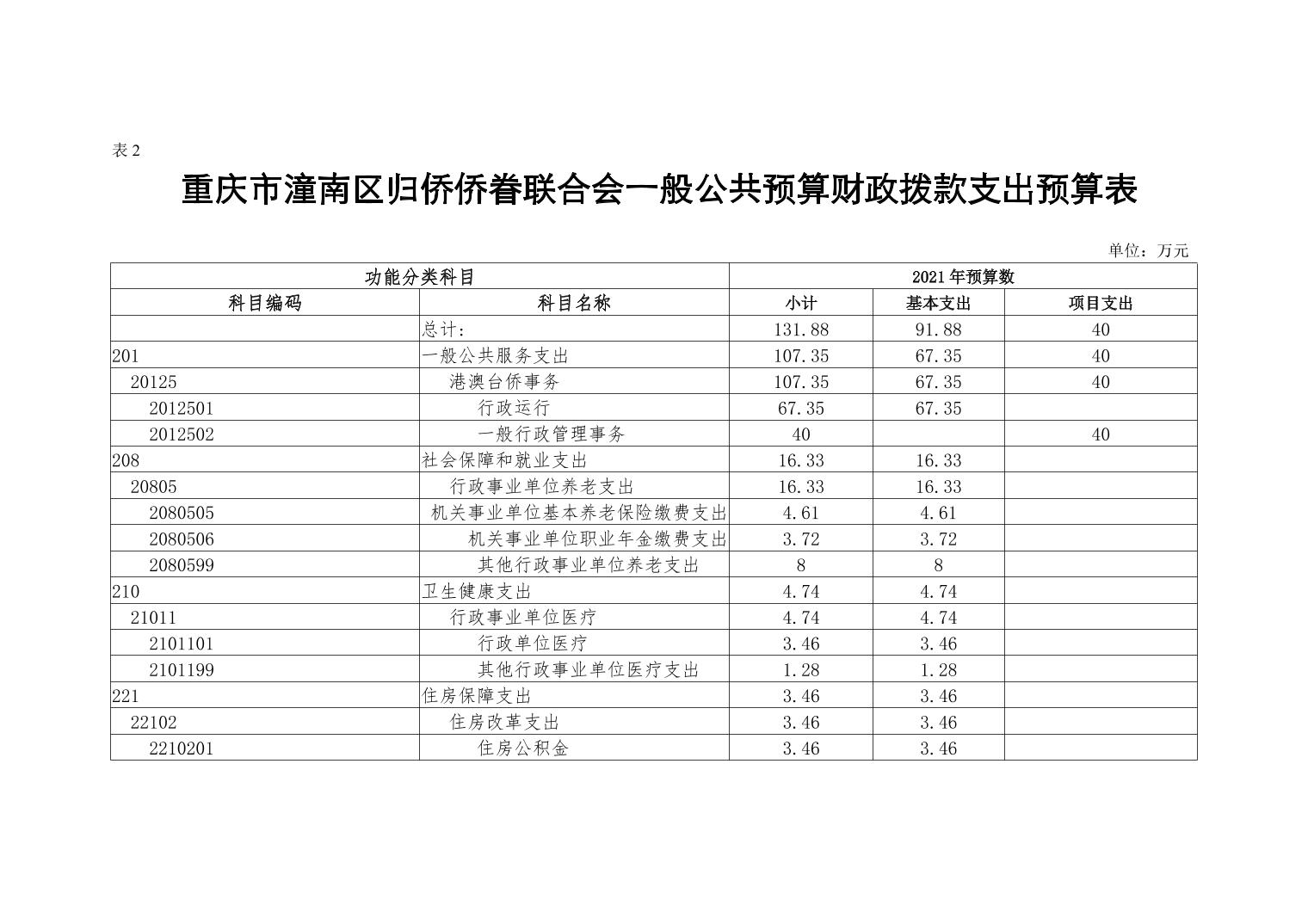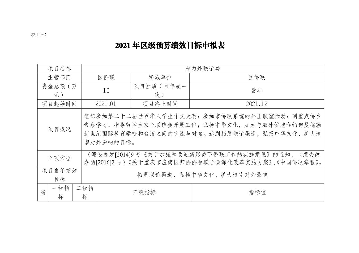 重庆市潼南区归侨侨眷联合会2021年部门预算公开