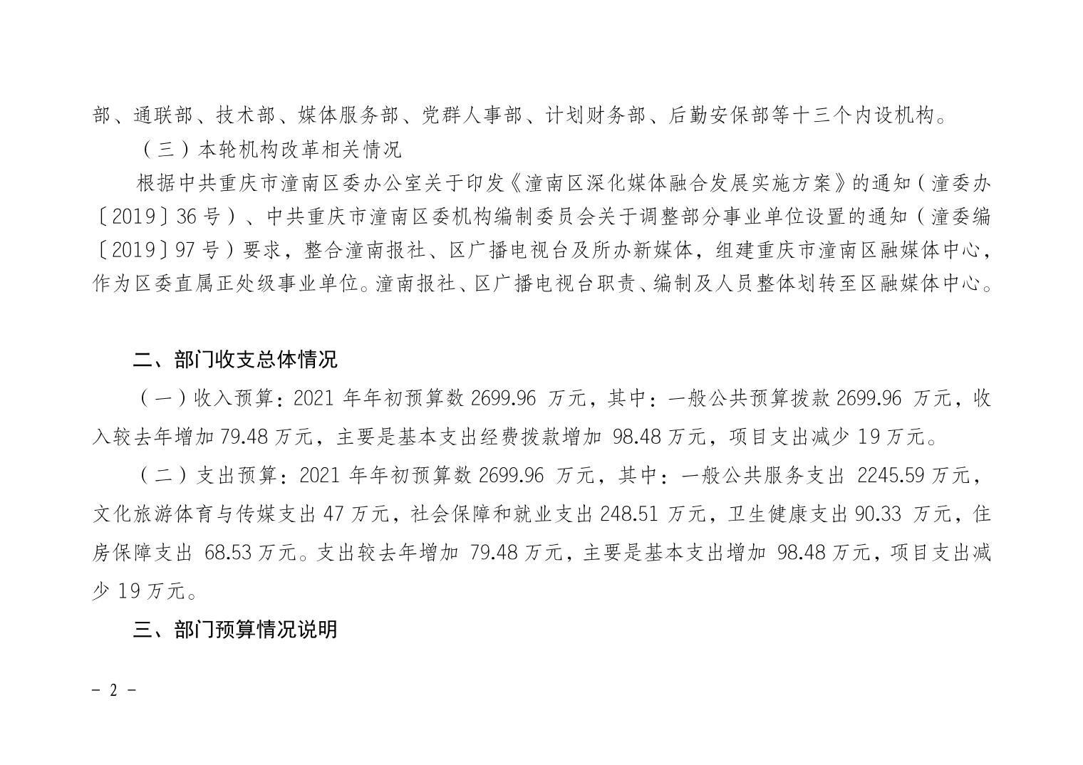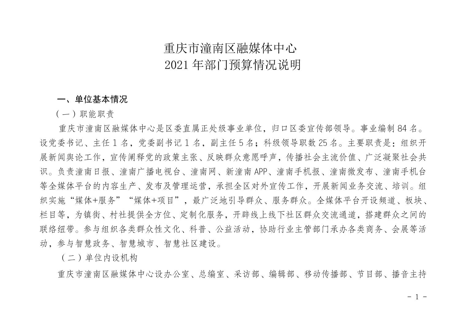 重庆市潼南区融媒体中心2021年部门预算公开