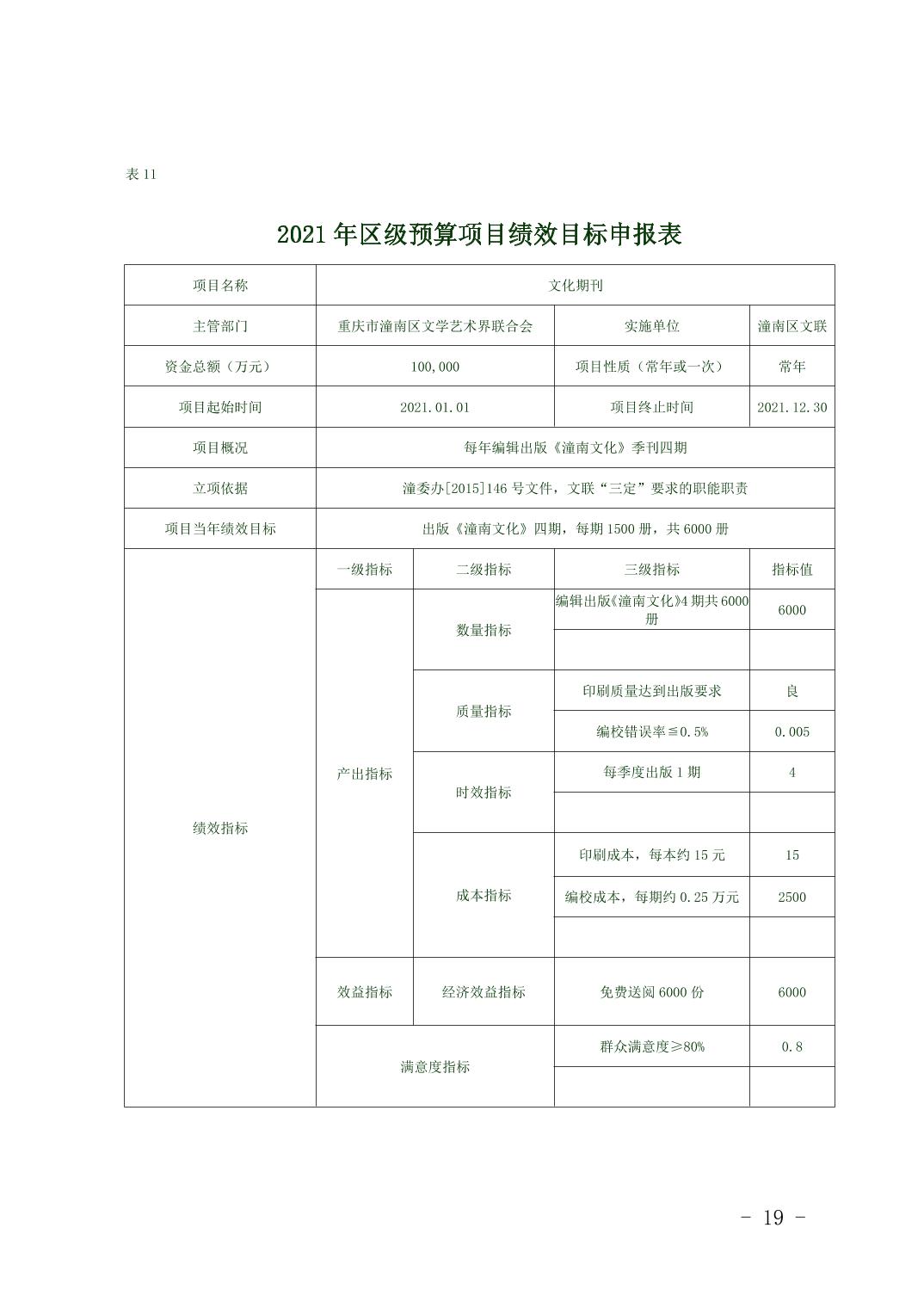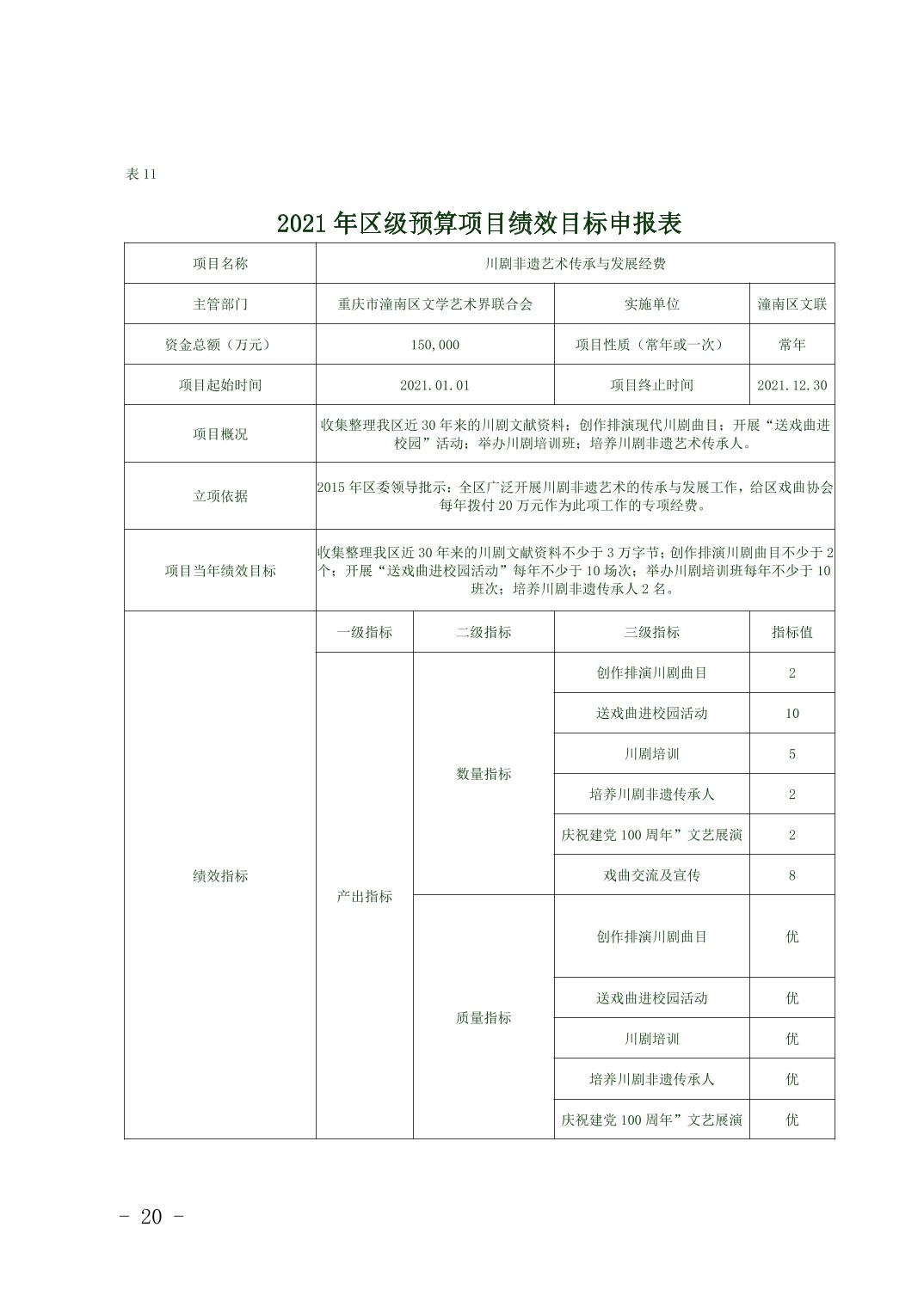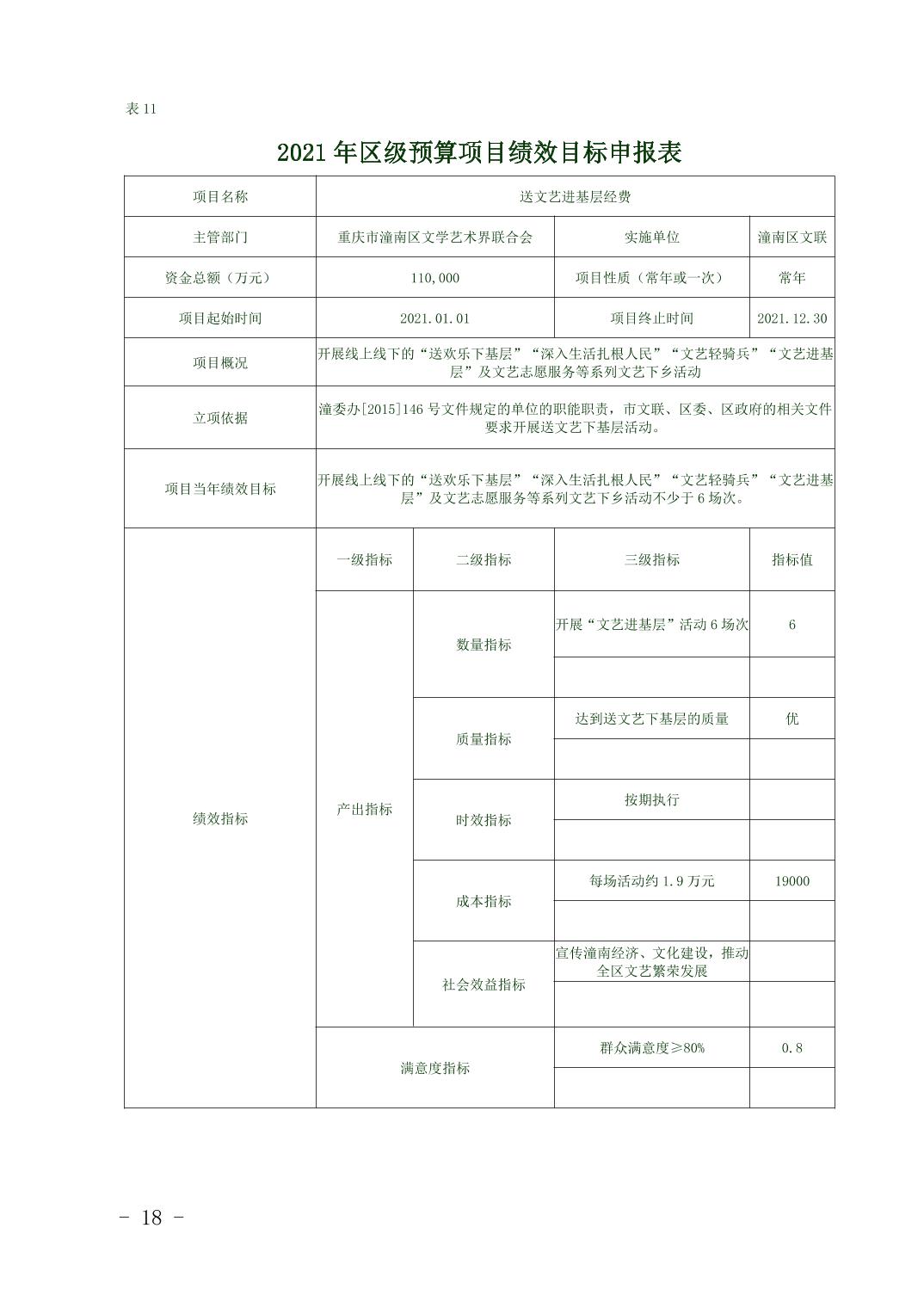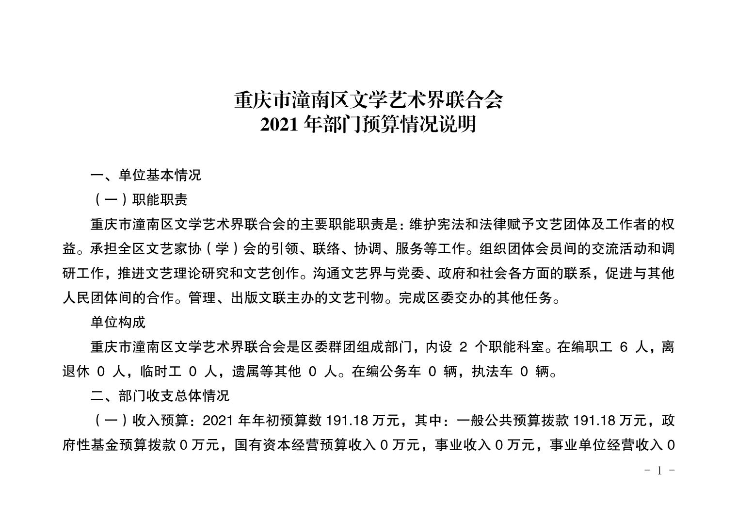 重庆市潼南区文学艺术界联合会2021年部门预算公开