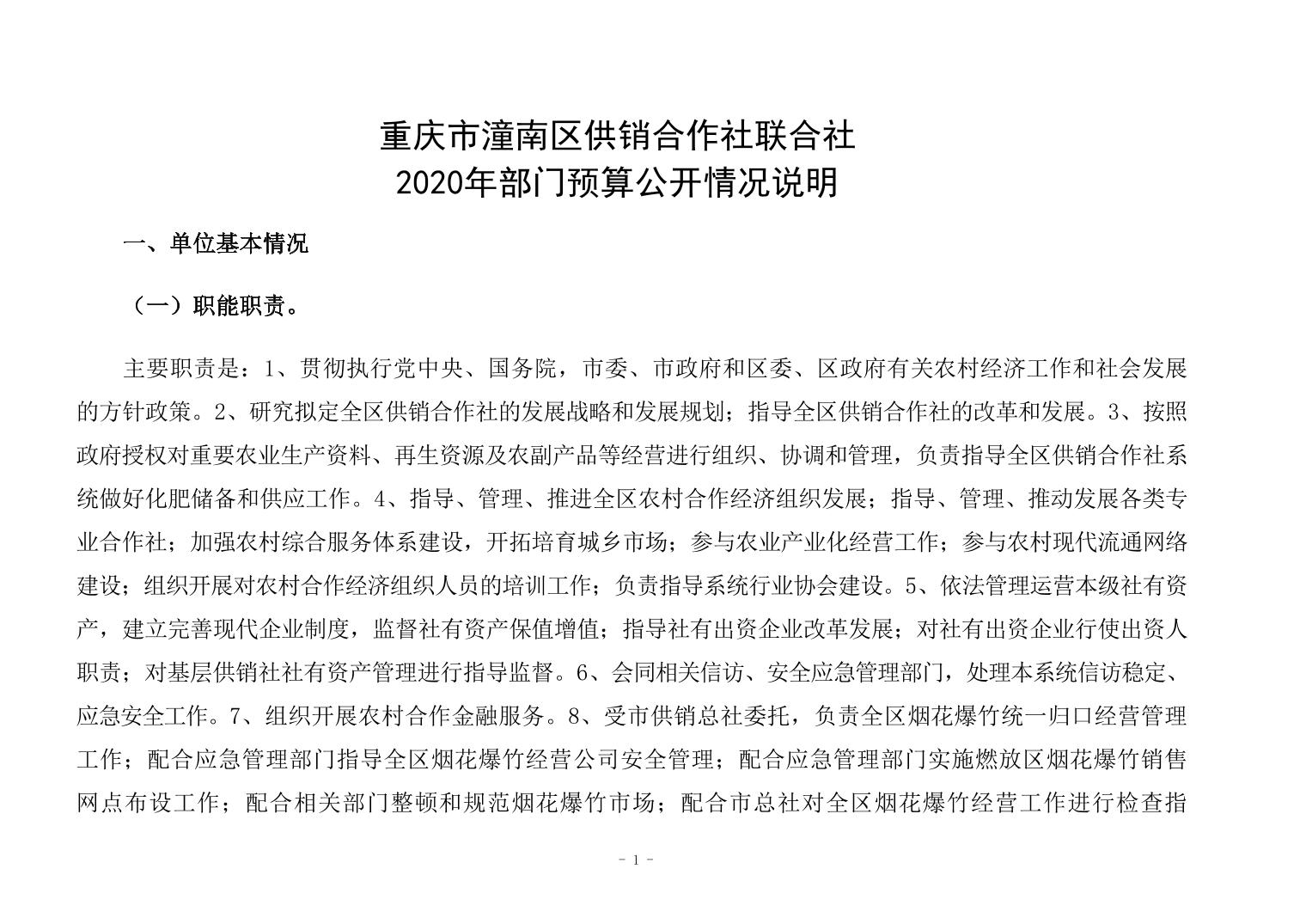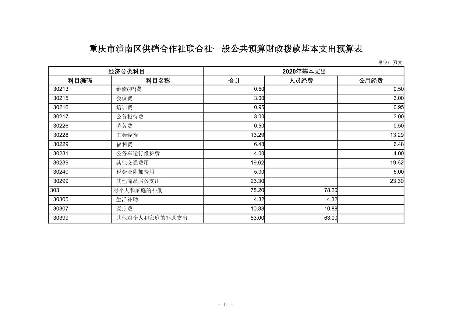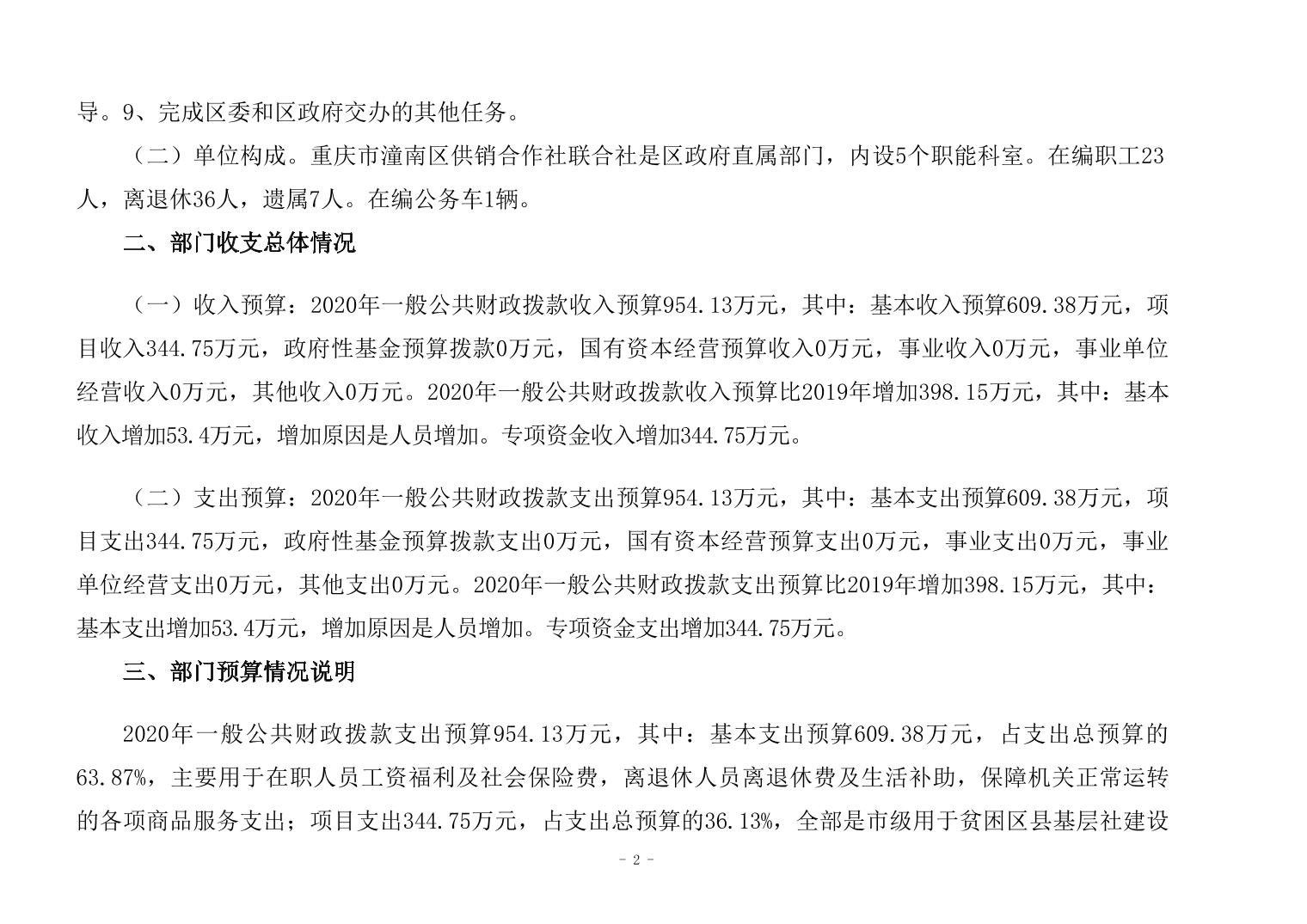重庆市潼南区供销合作社联合社2020年部门预算公开