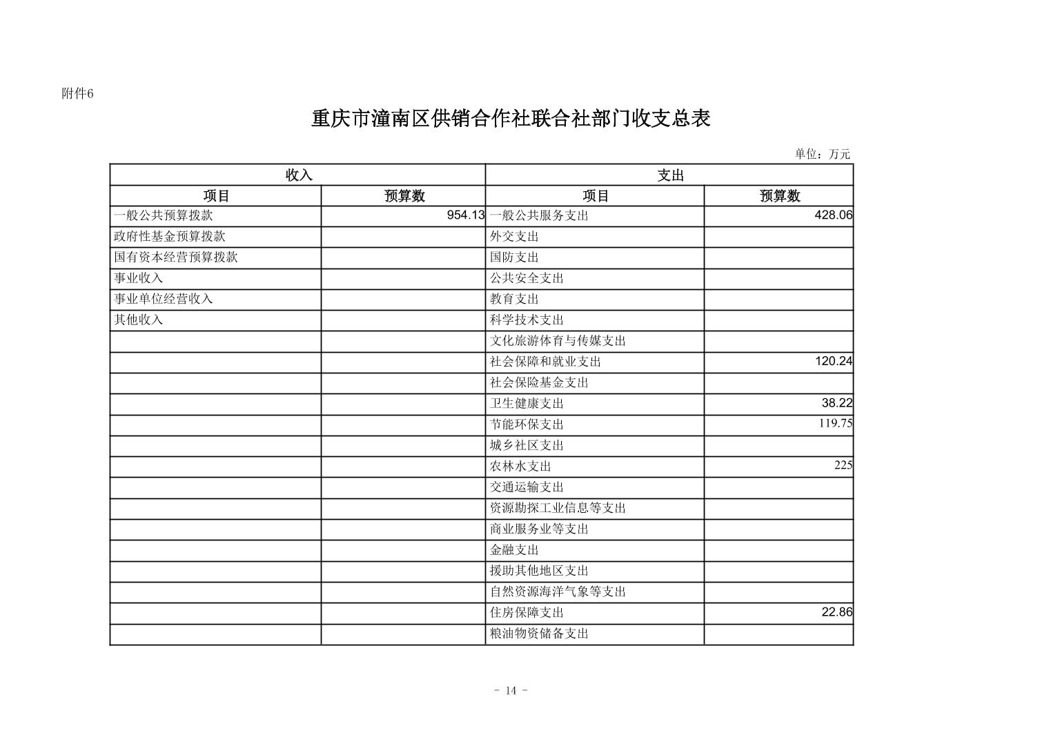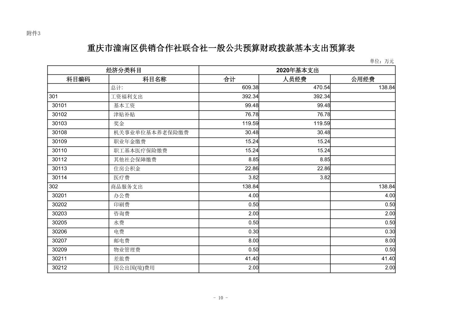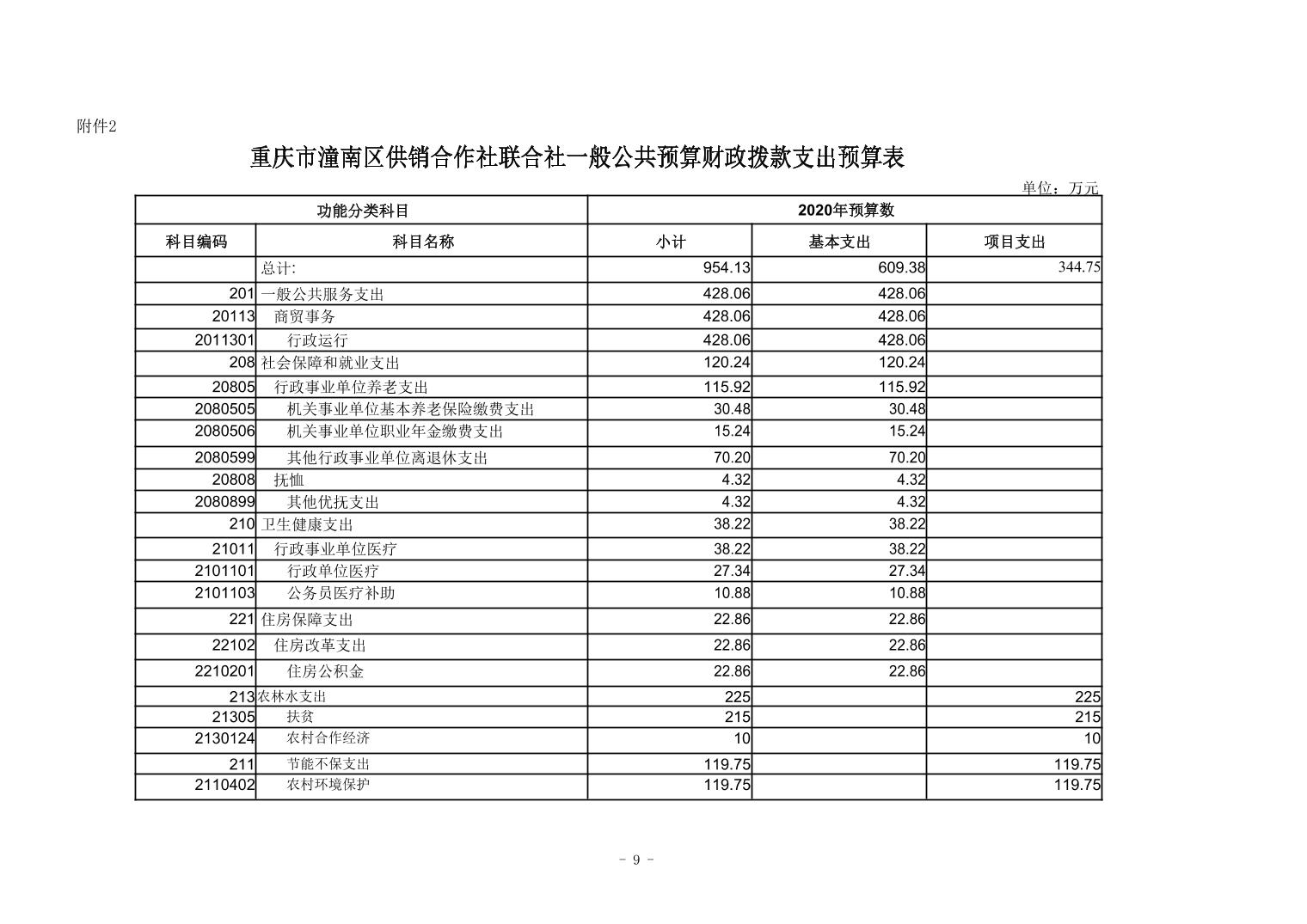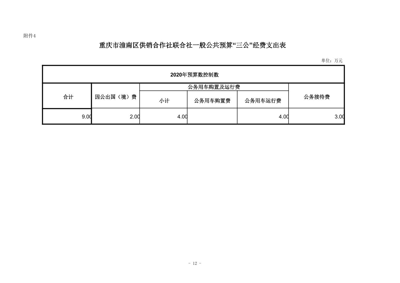 重庆市潼南区供销合作社联合社2020年部门预算公开