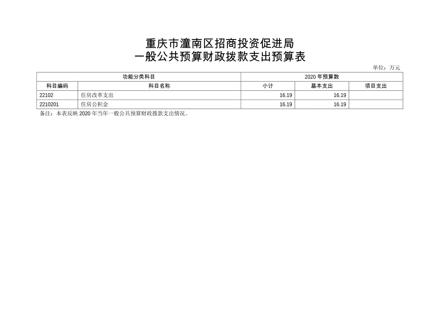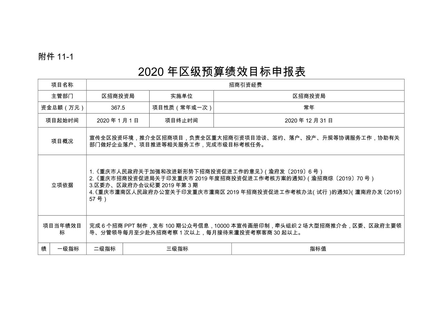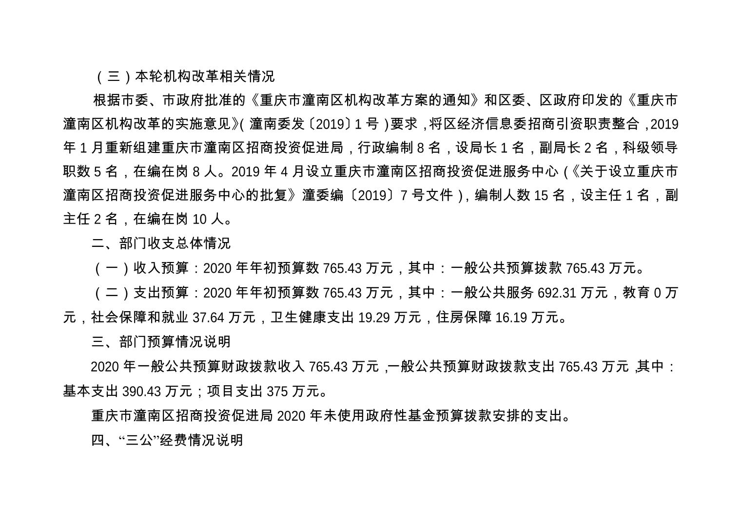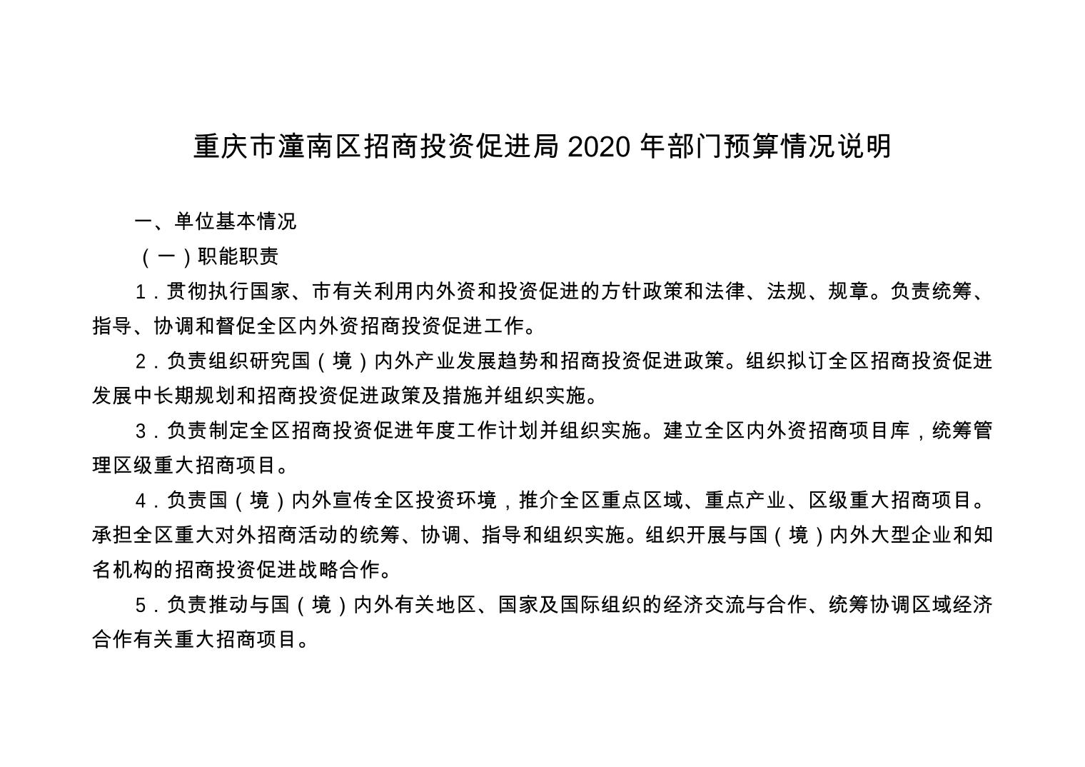 重庆市潼南区招商投资促进局 2020年部门预算公开