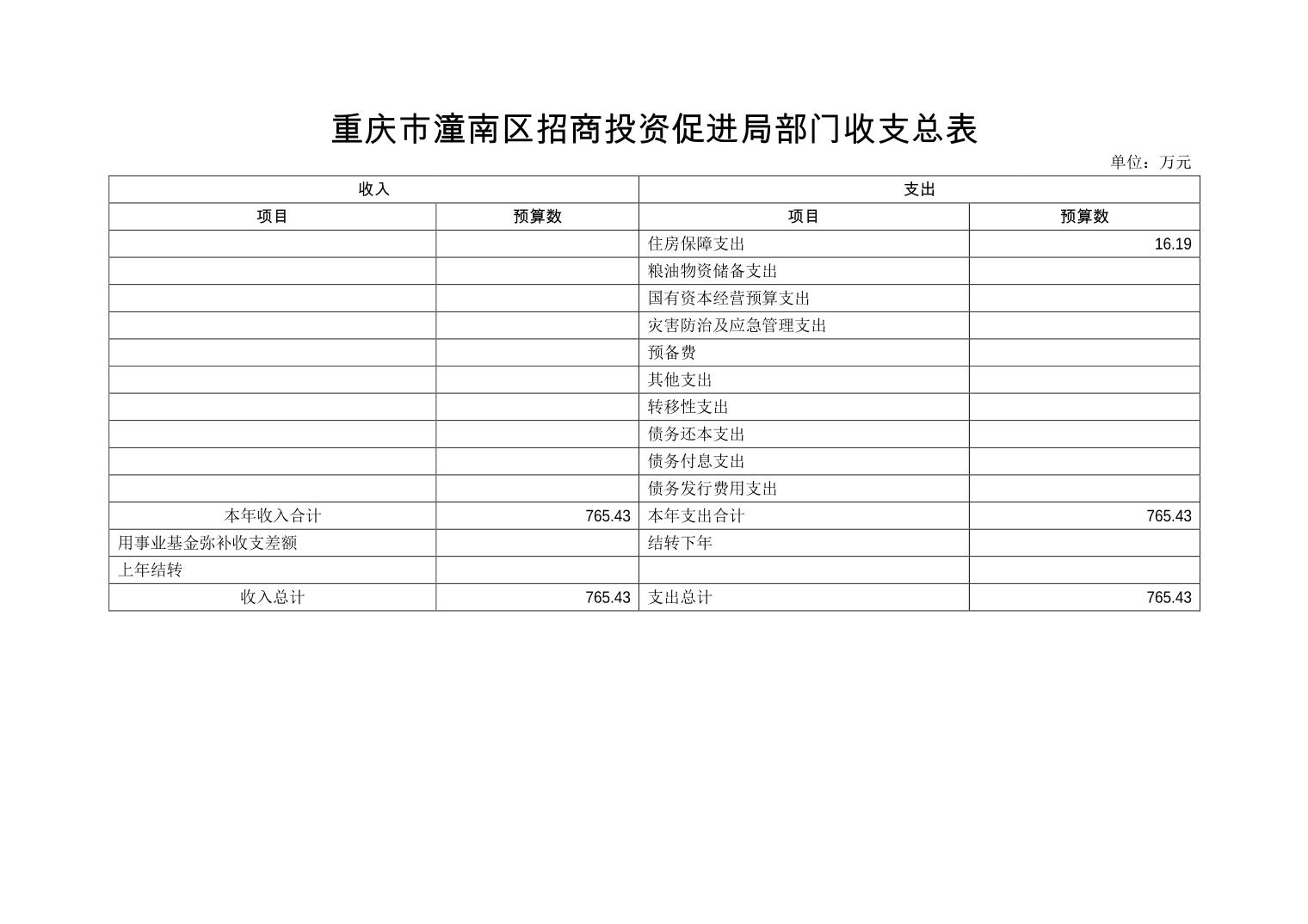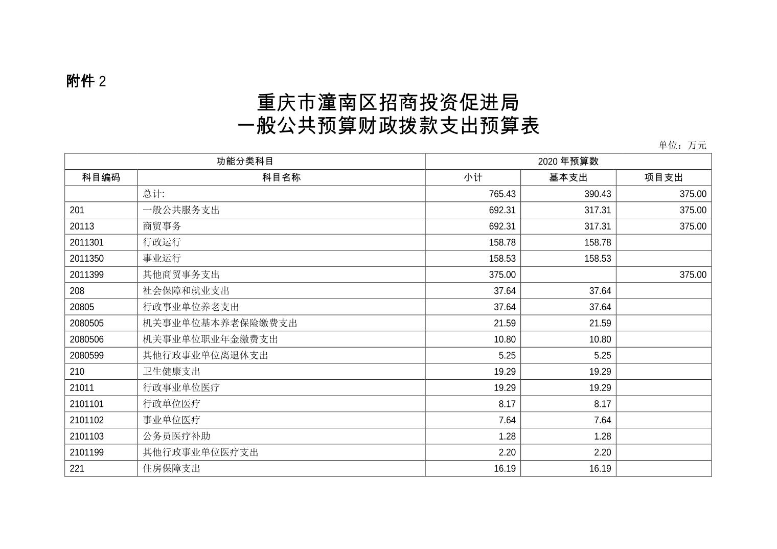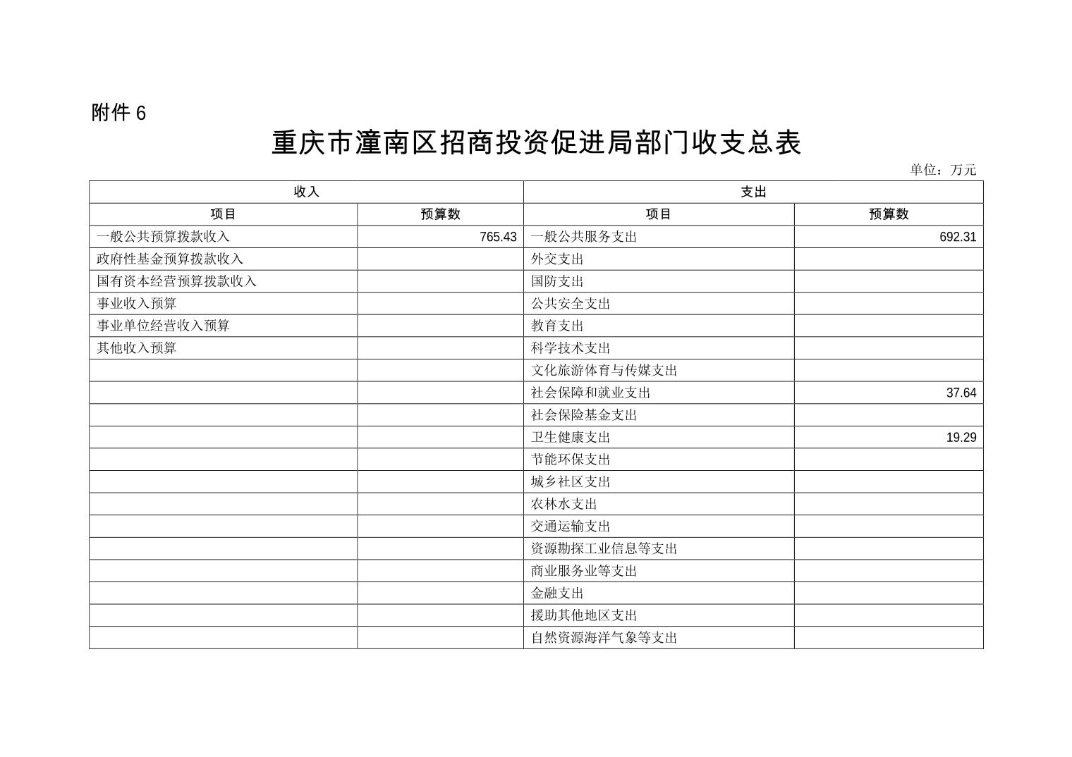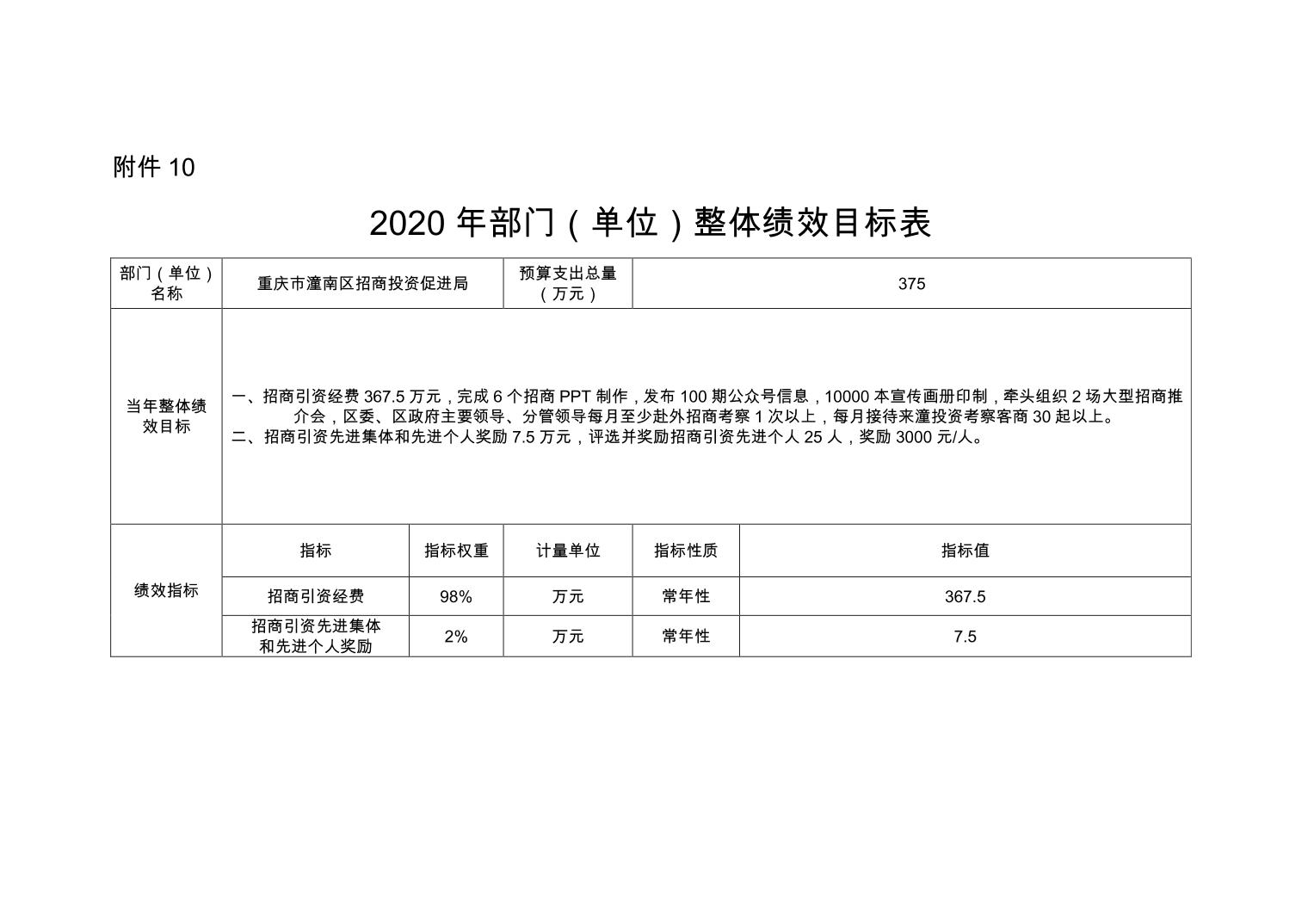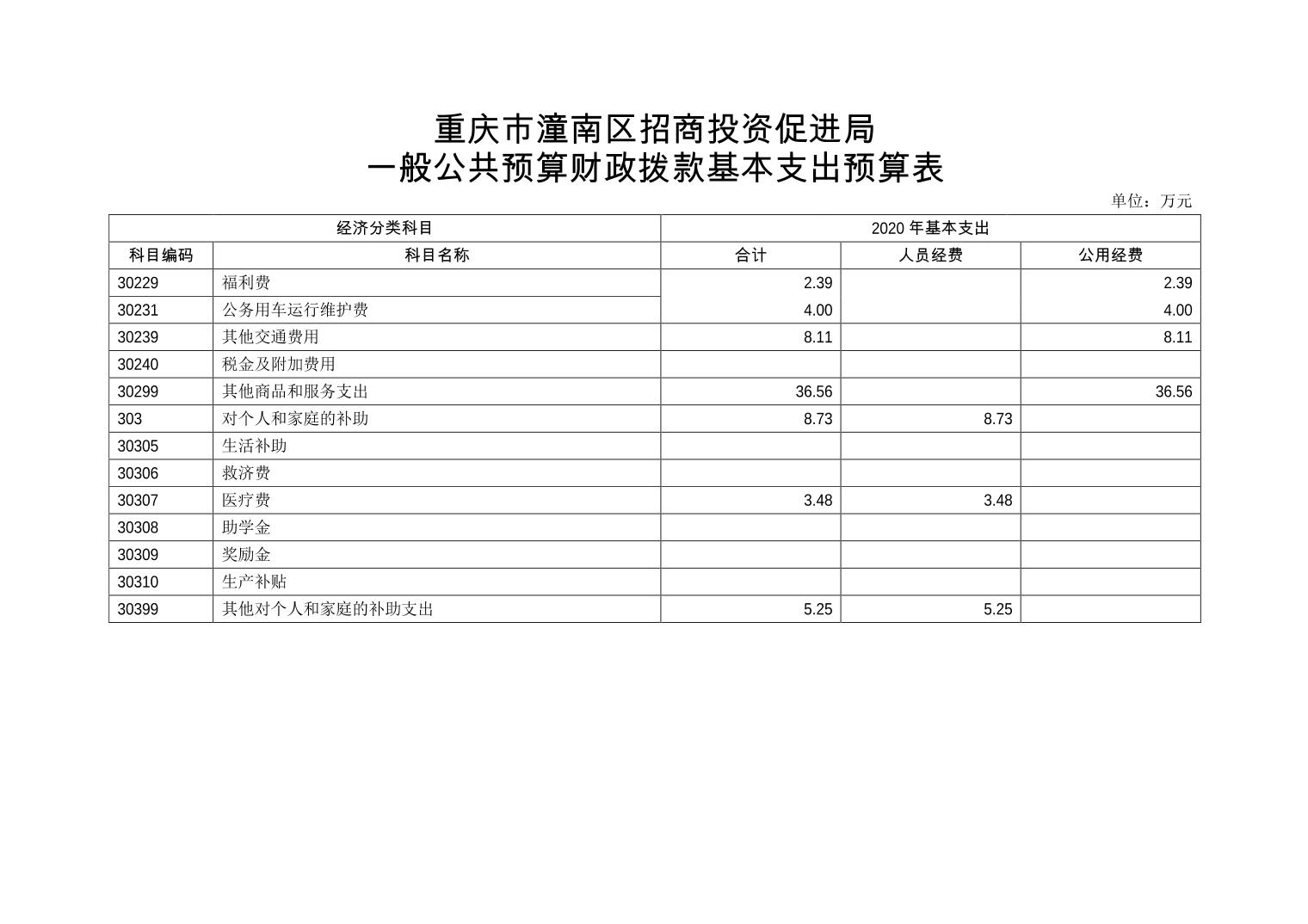 重庆市潼南区招商投资促进局 2020年部门预算公开