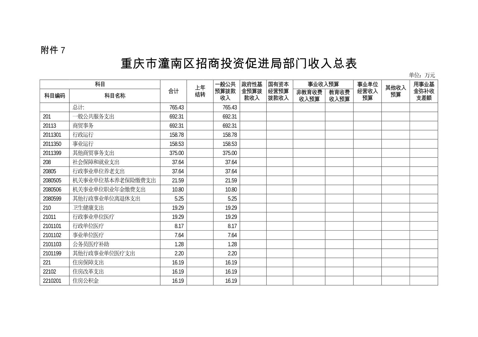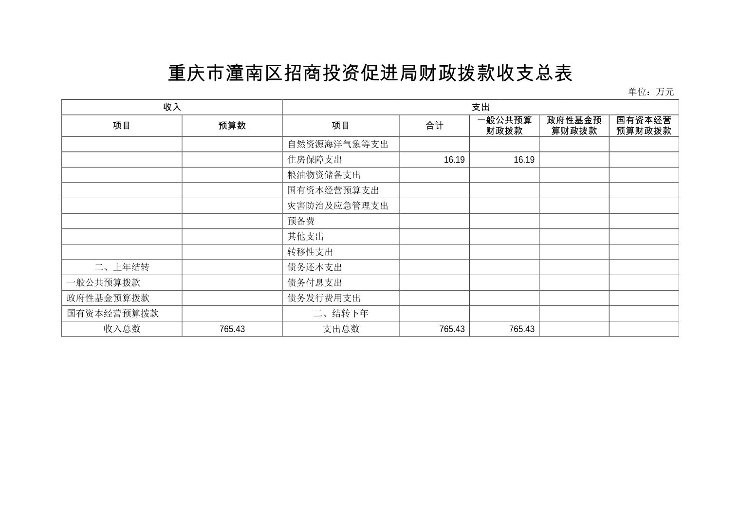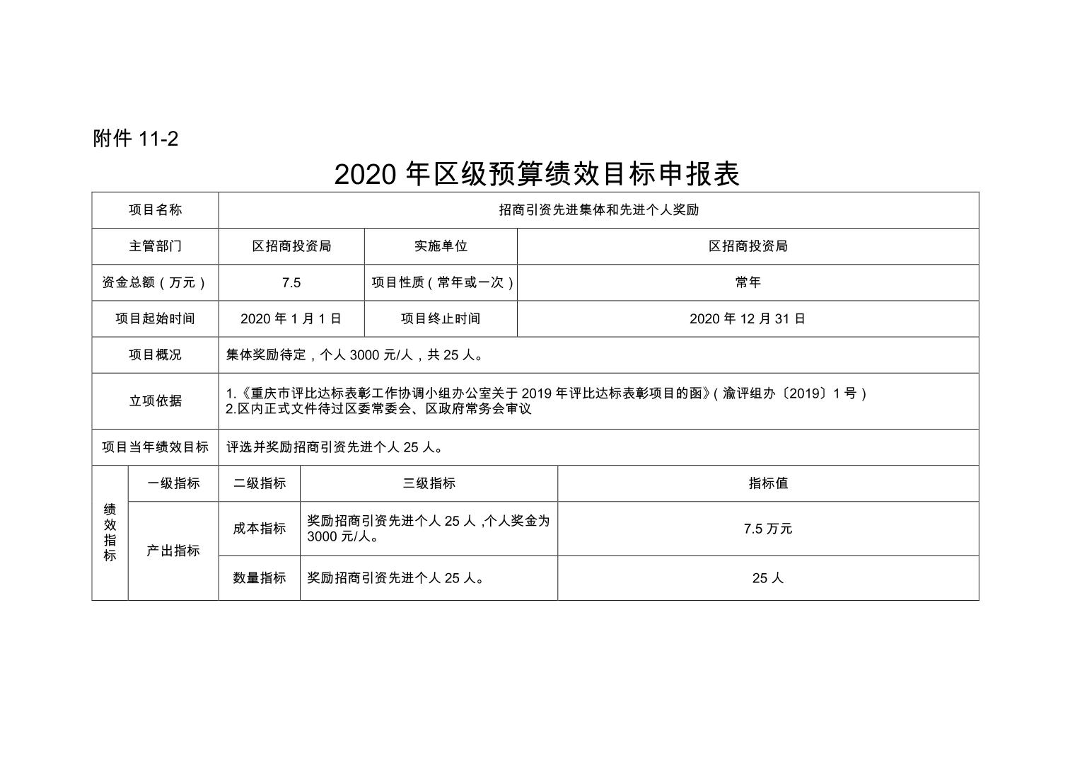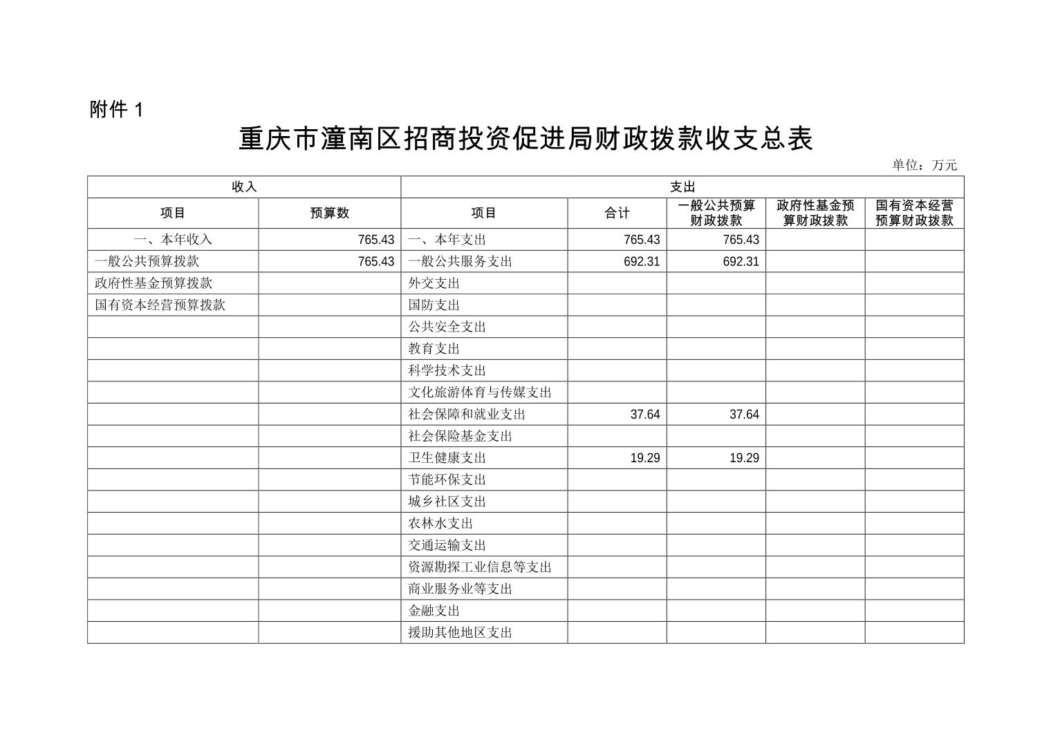 重庆市潼南区招商投资促进局 2020年部门预算公开
