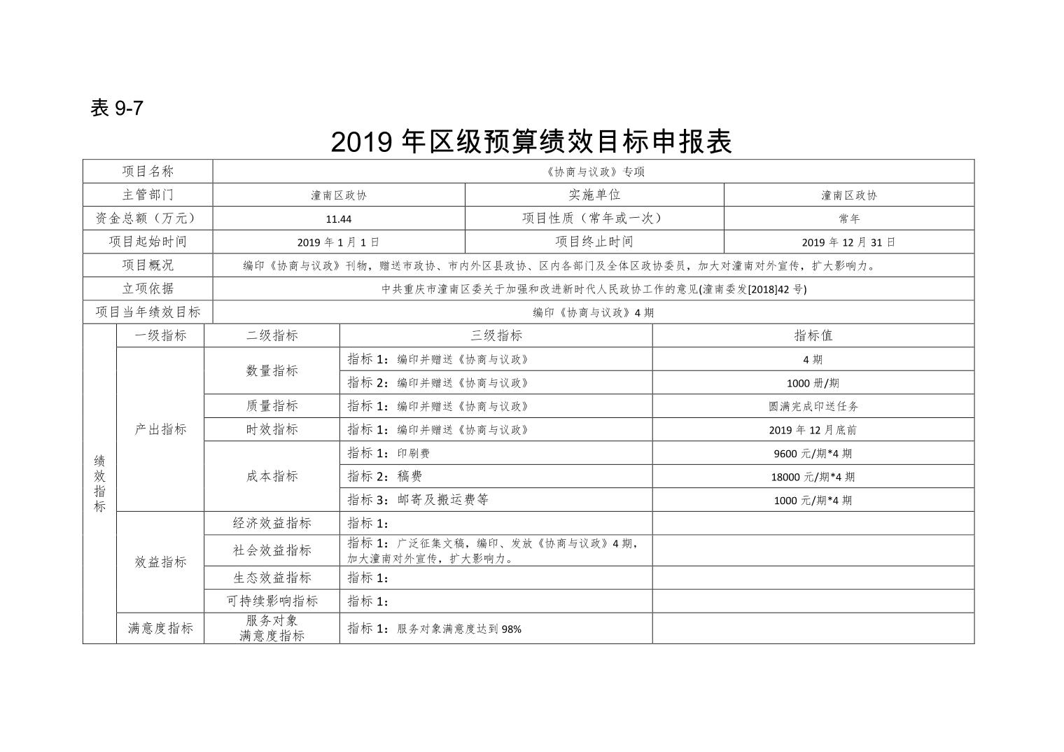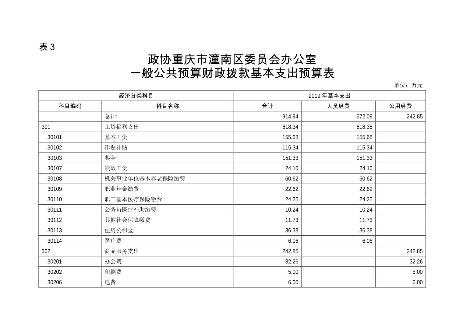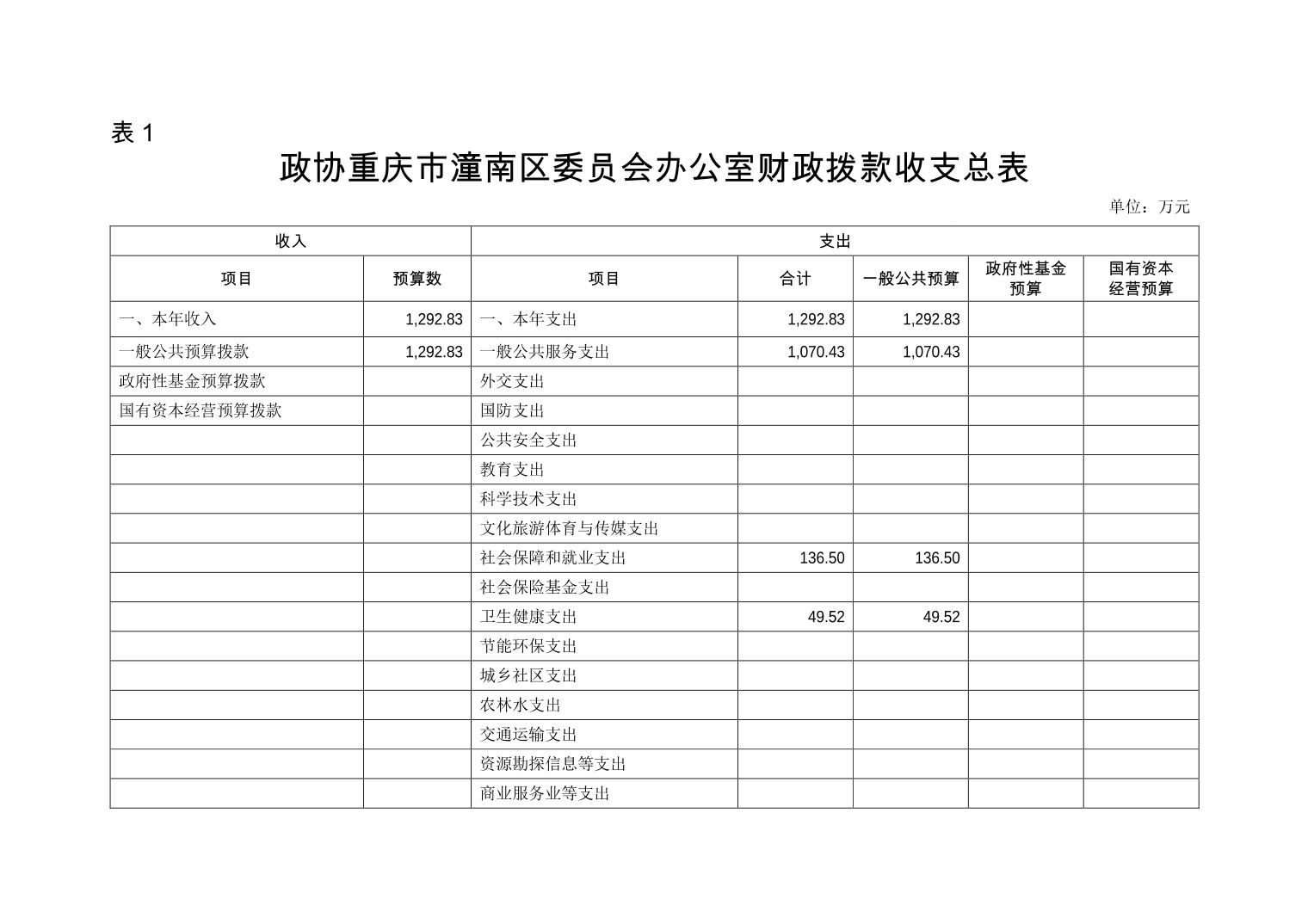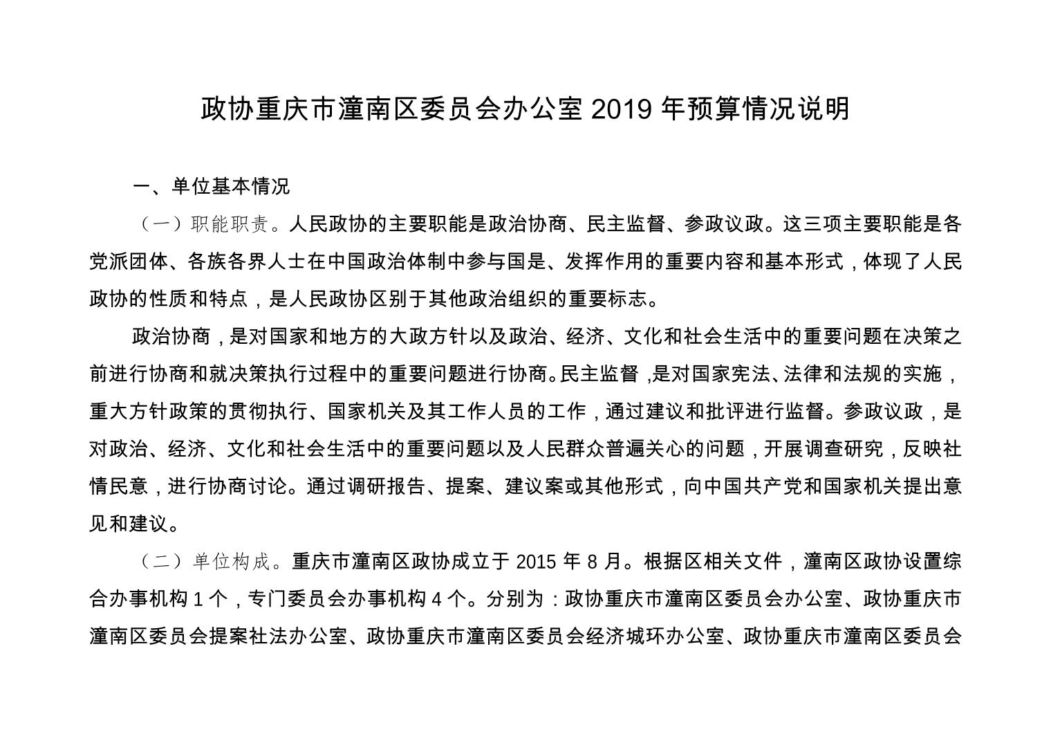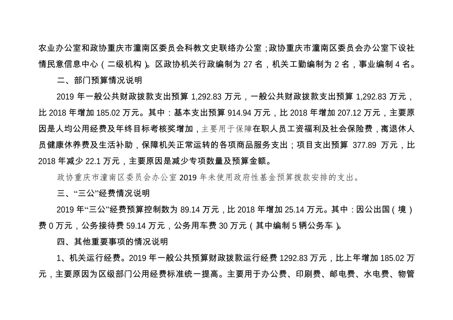 政协重庆市潼南区委员会办公室2019年部门预算公开