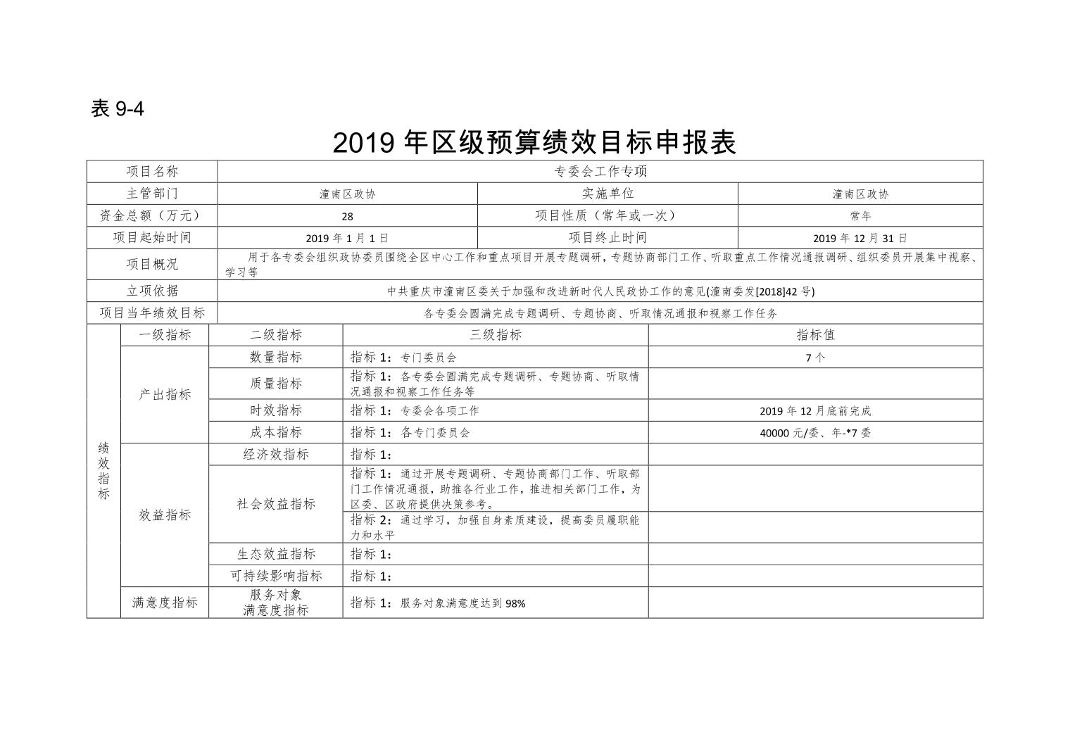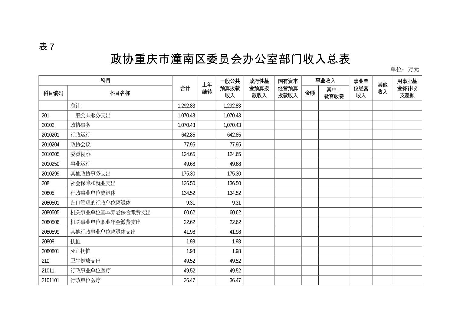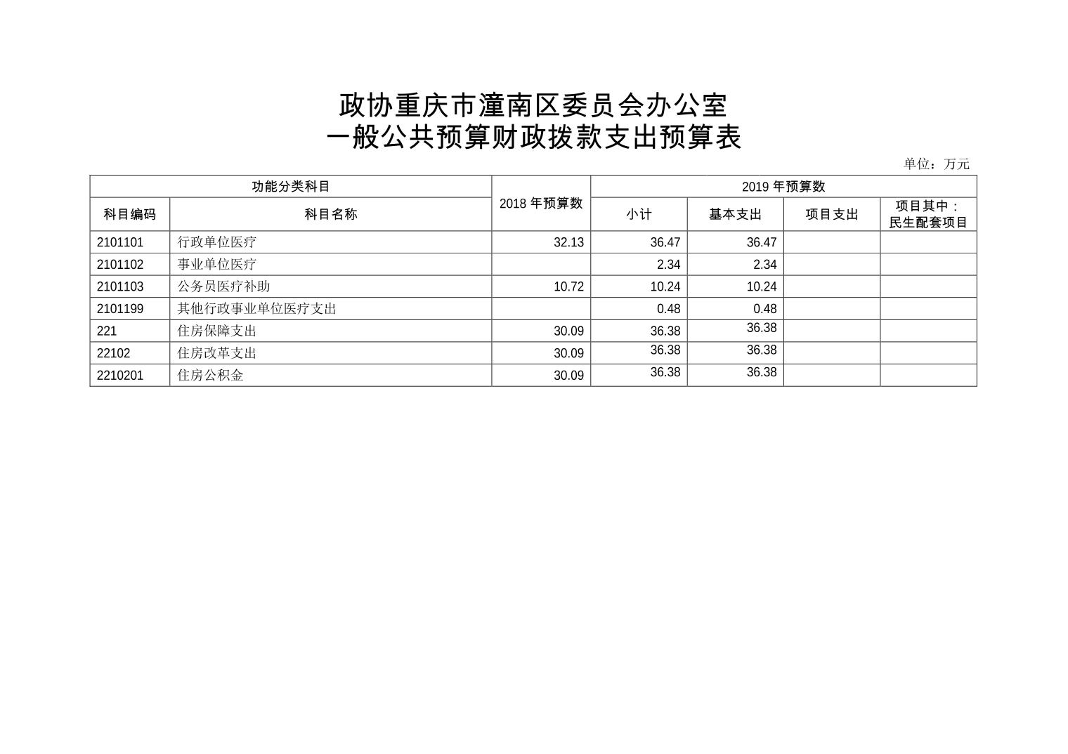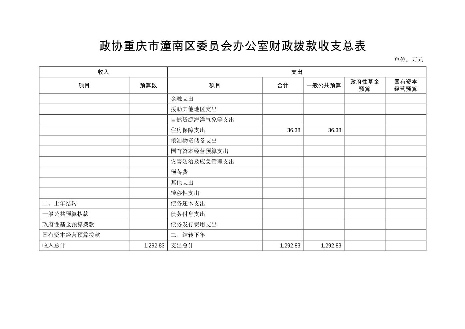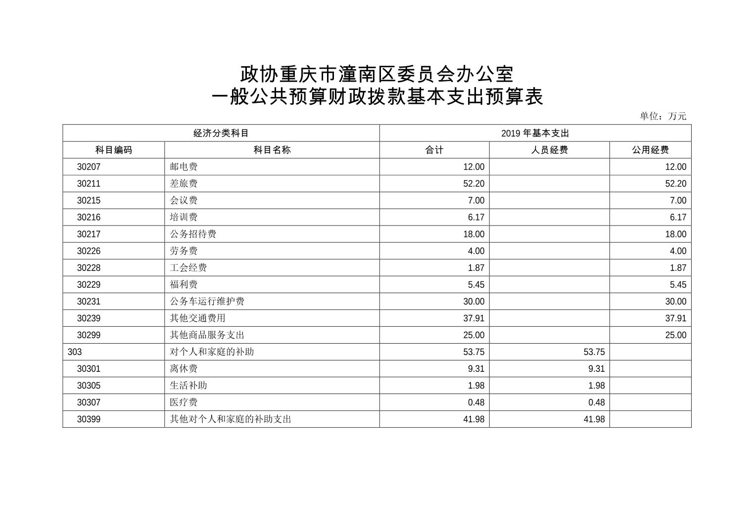 政协重庆市潼南区委员会办公室2019年部门预算公开