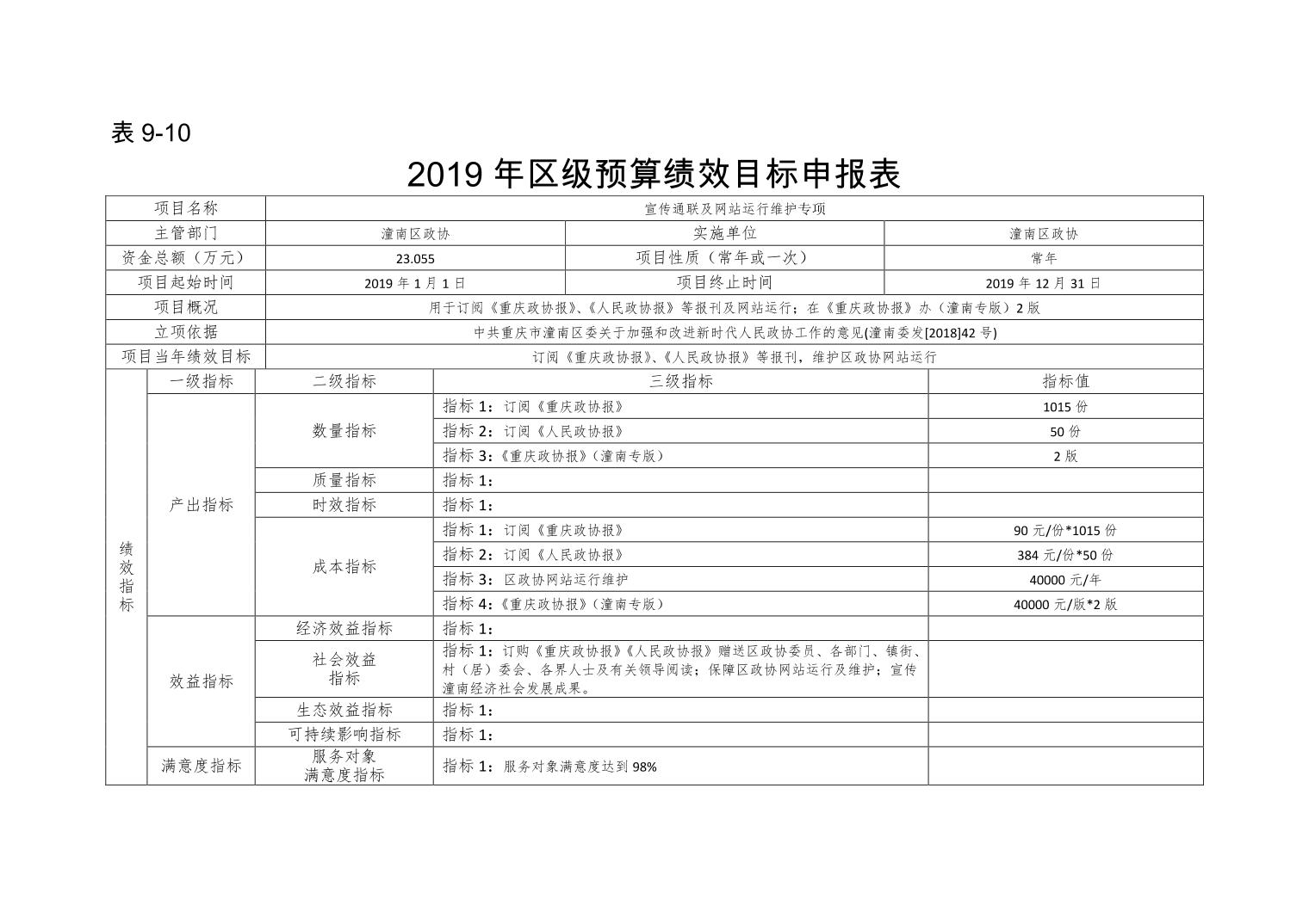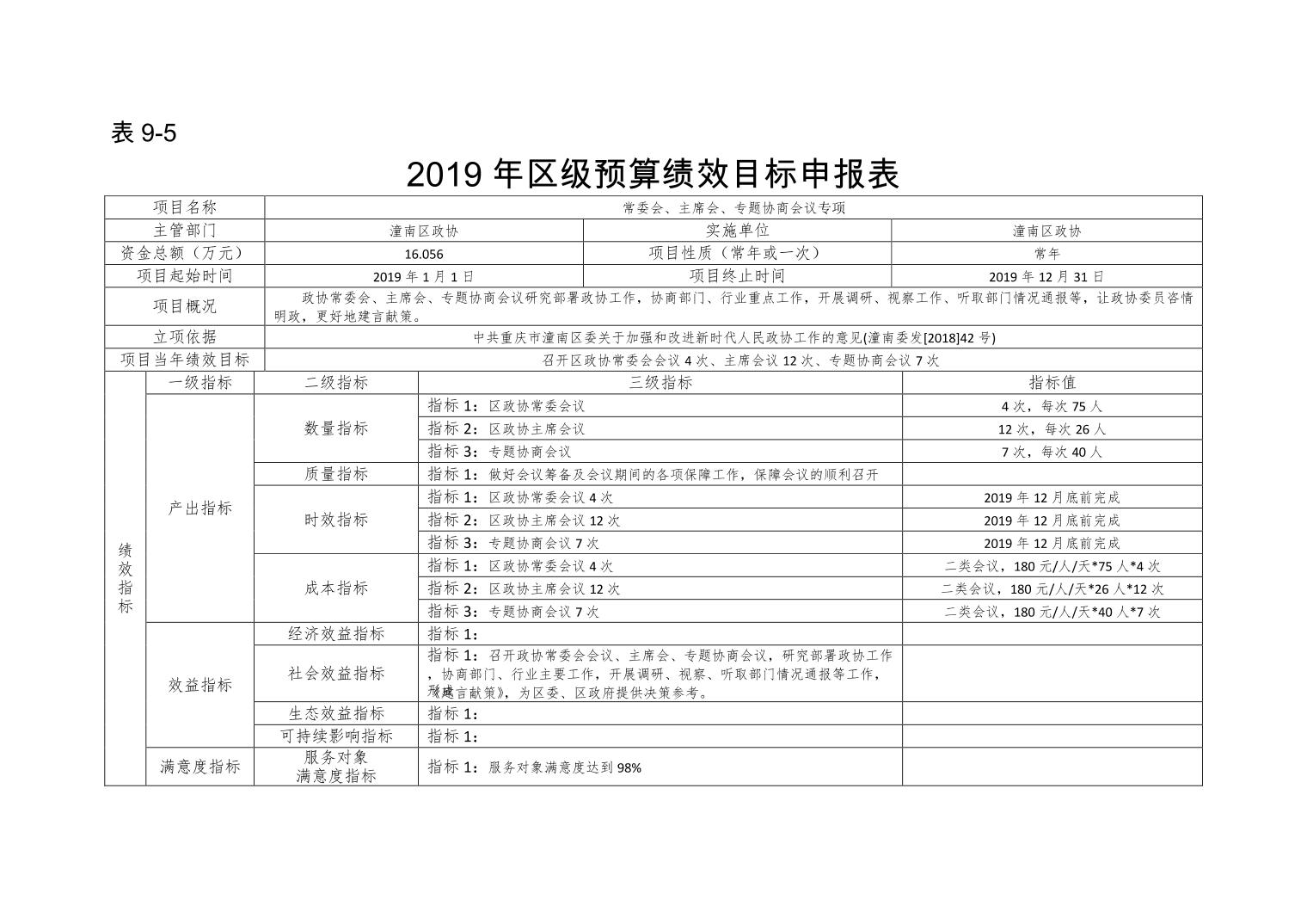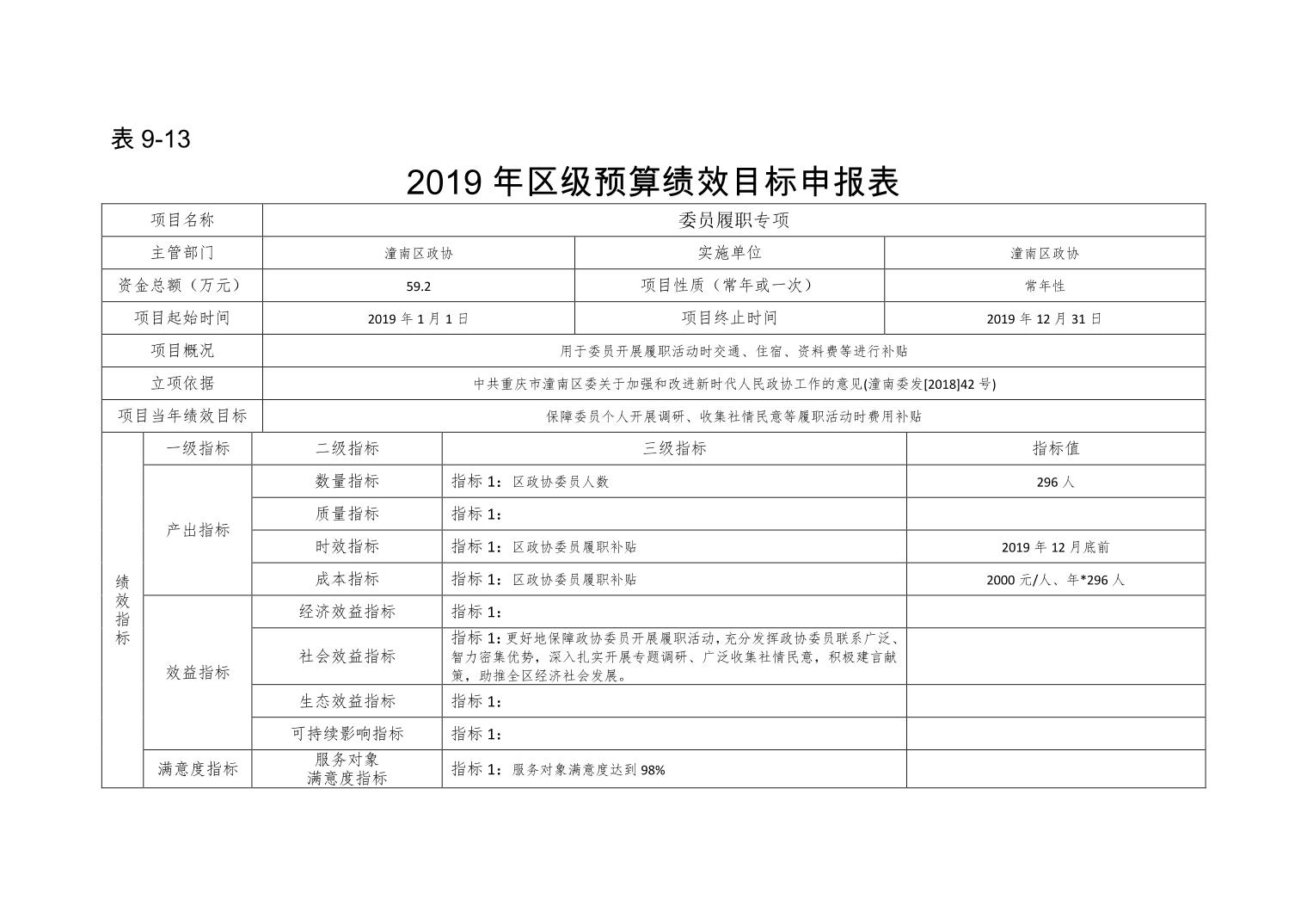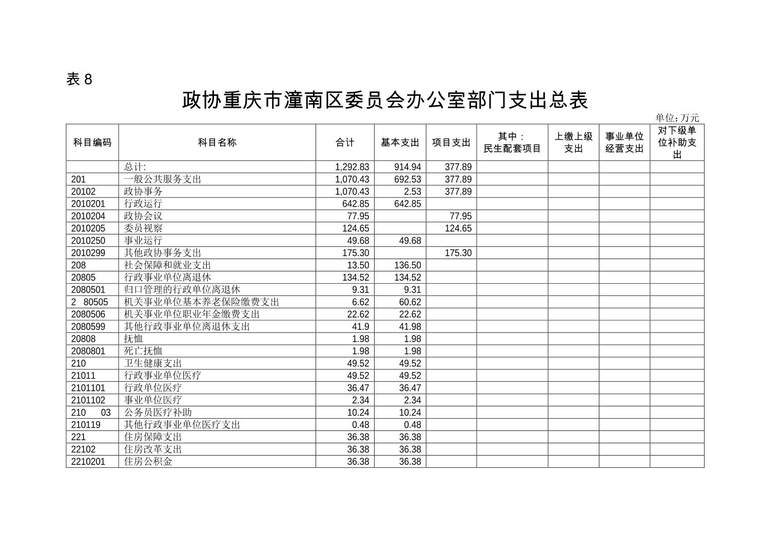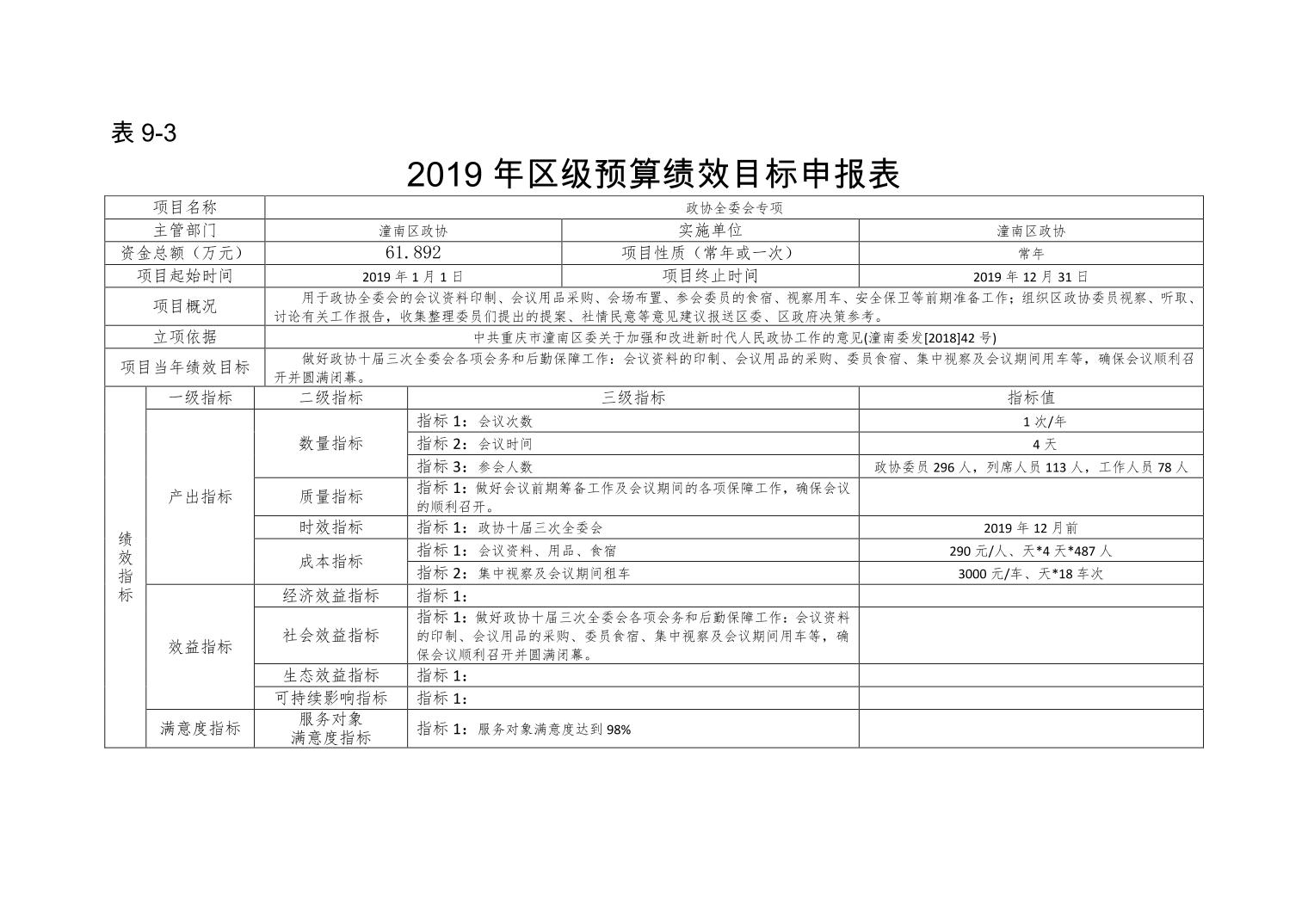 政协重庆市潼南区委员会办公室2019年部门预算公开