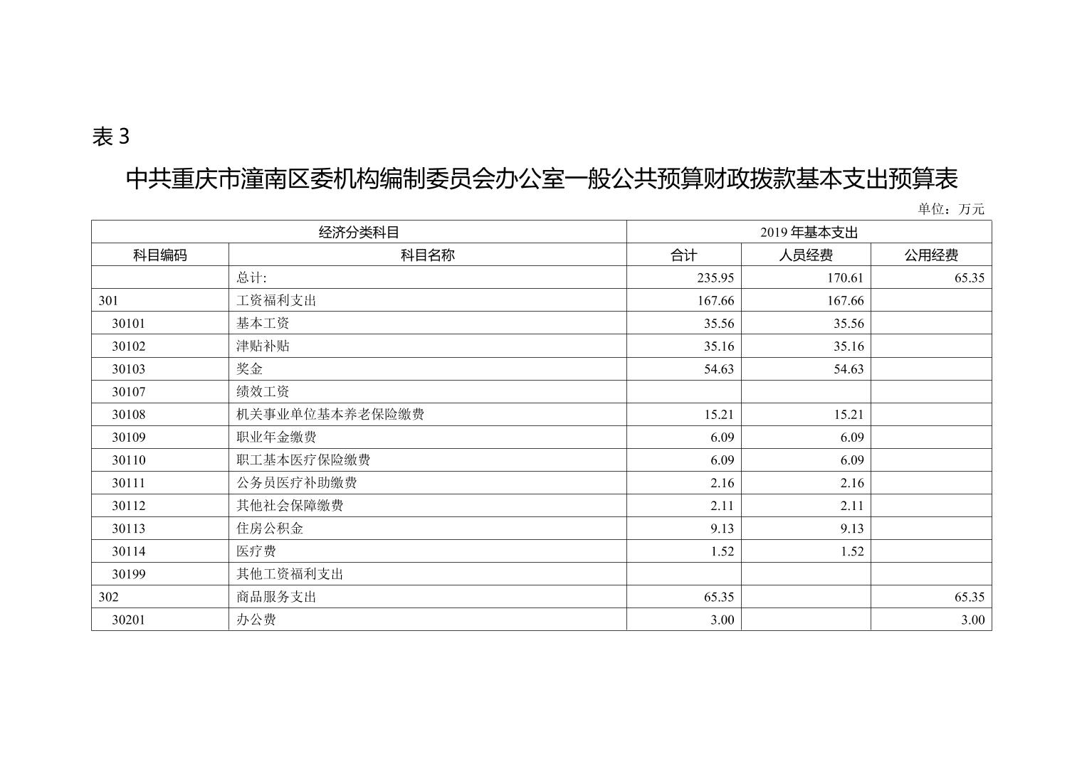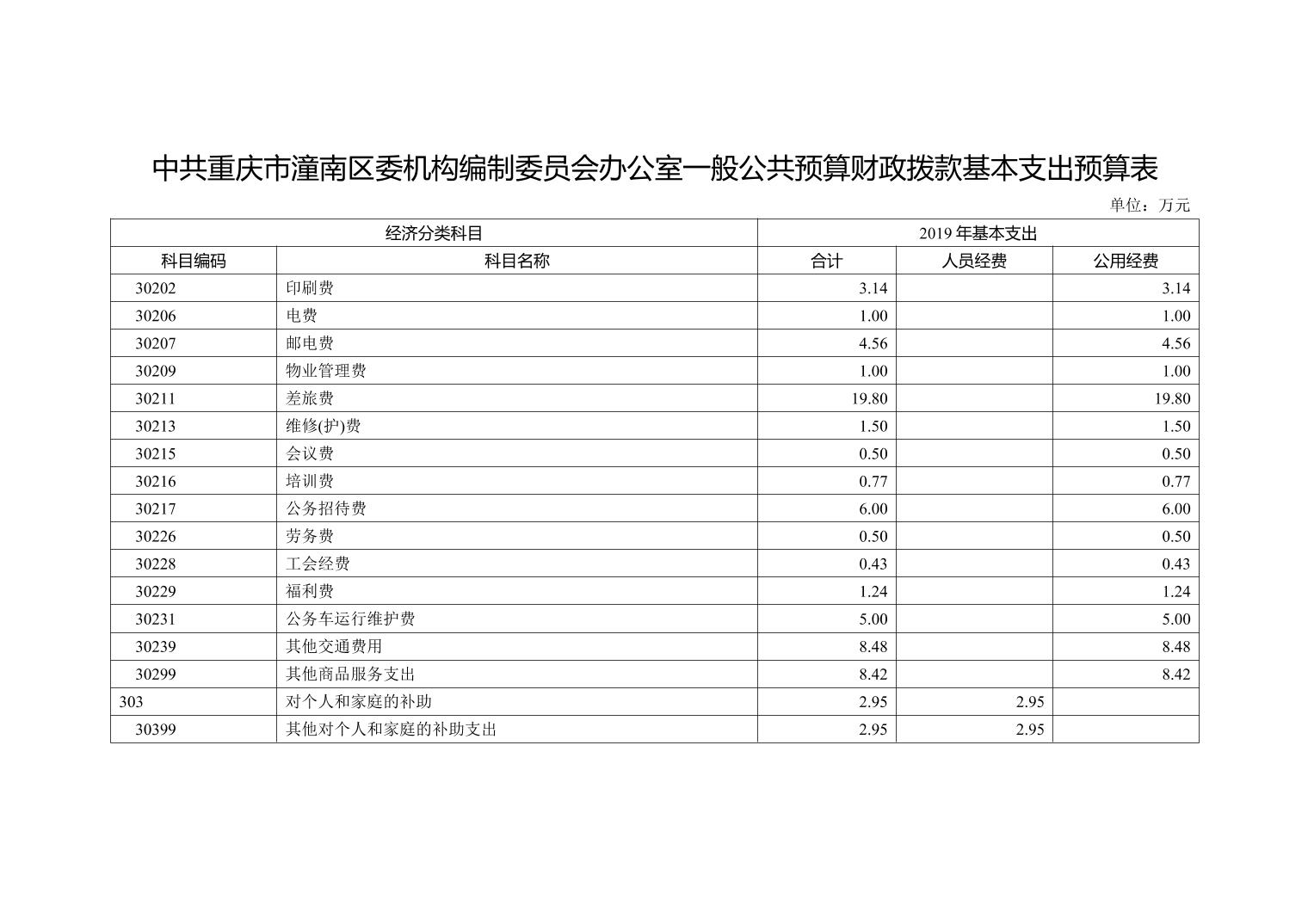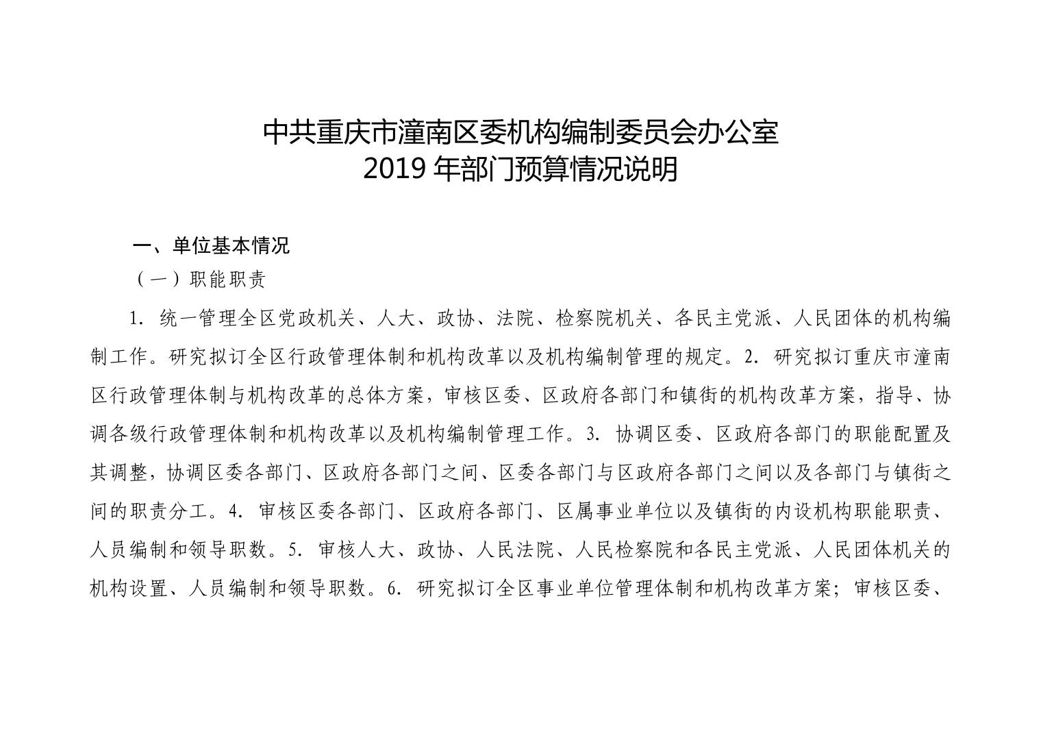 中共重庆市潼南区委机构编制委员会办公室2019年部门预算公开