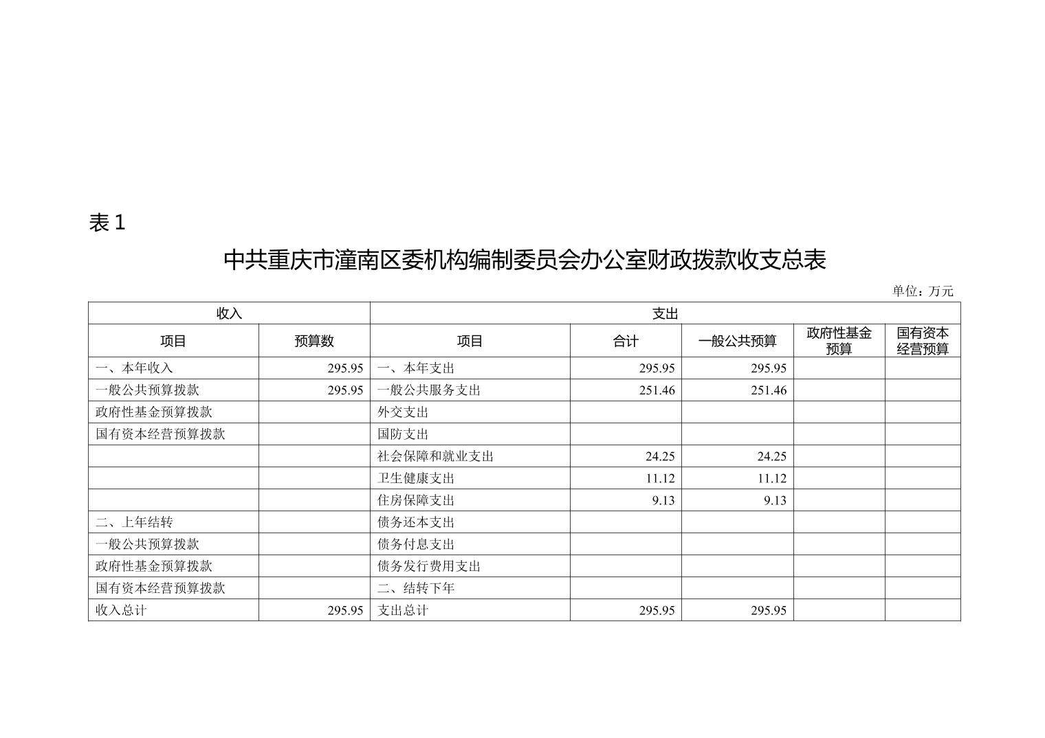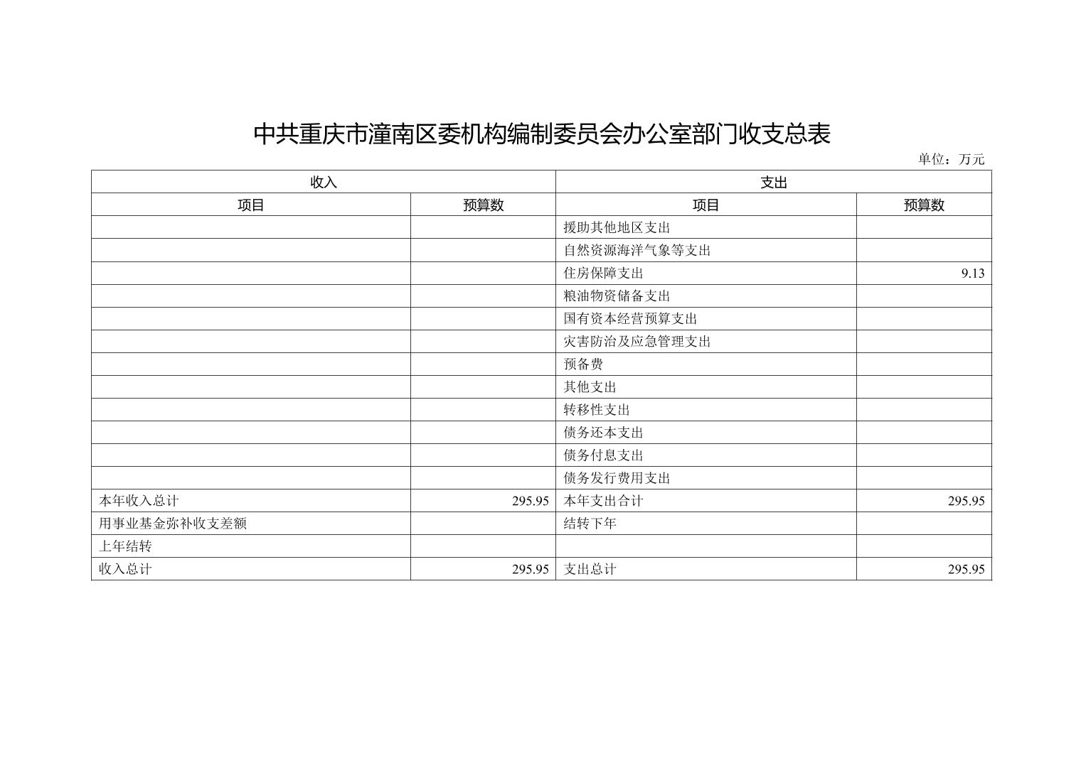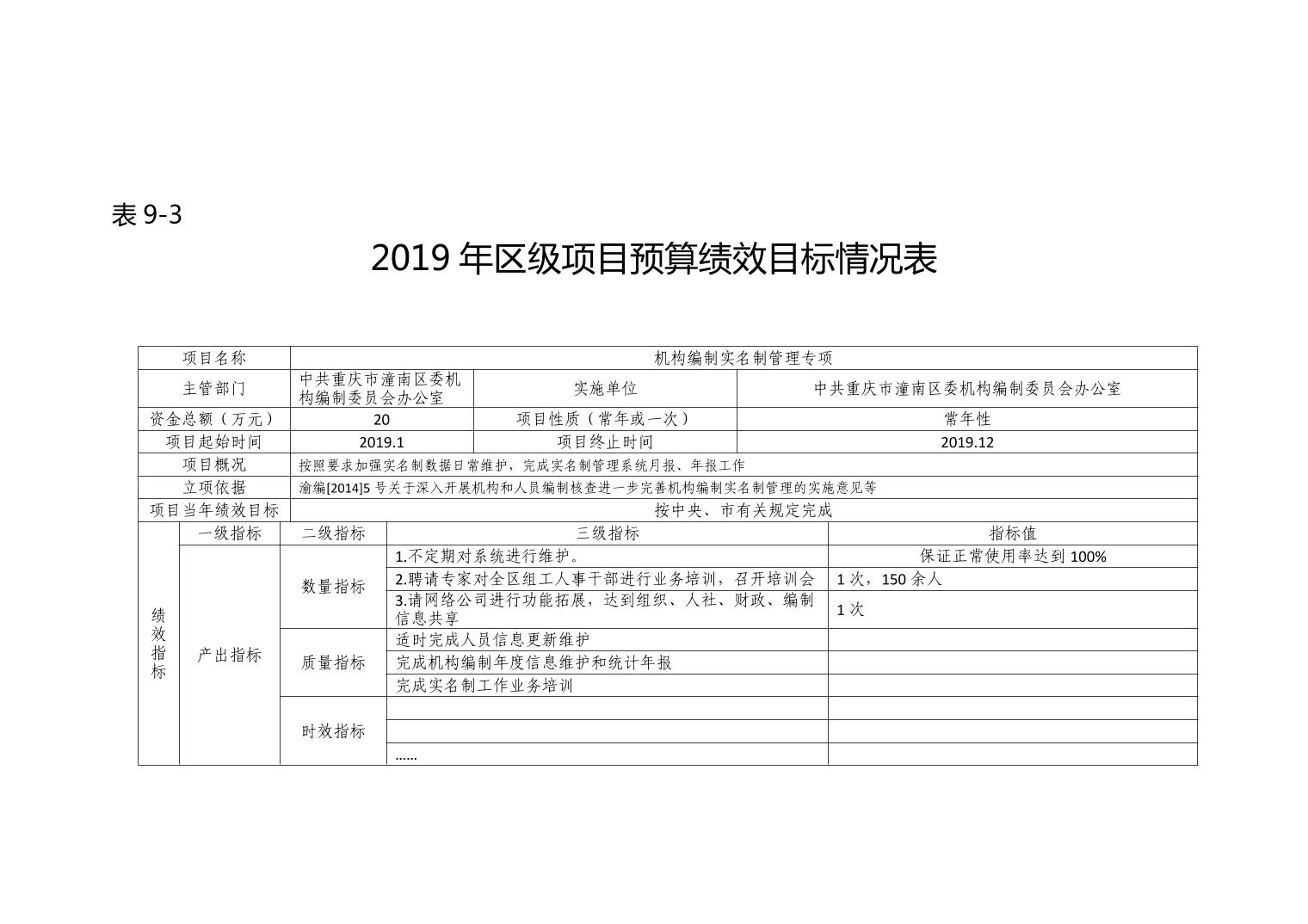 中共重庆市潼南区委机构编制委员会办公室2019年部门预算公开