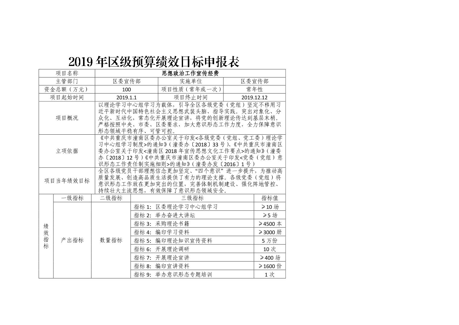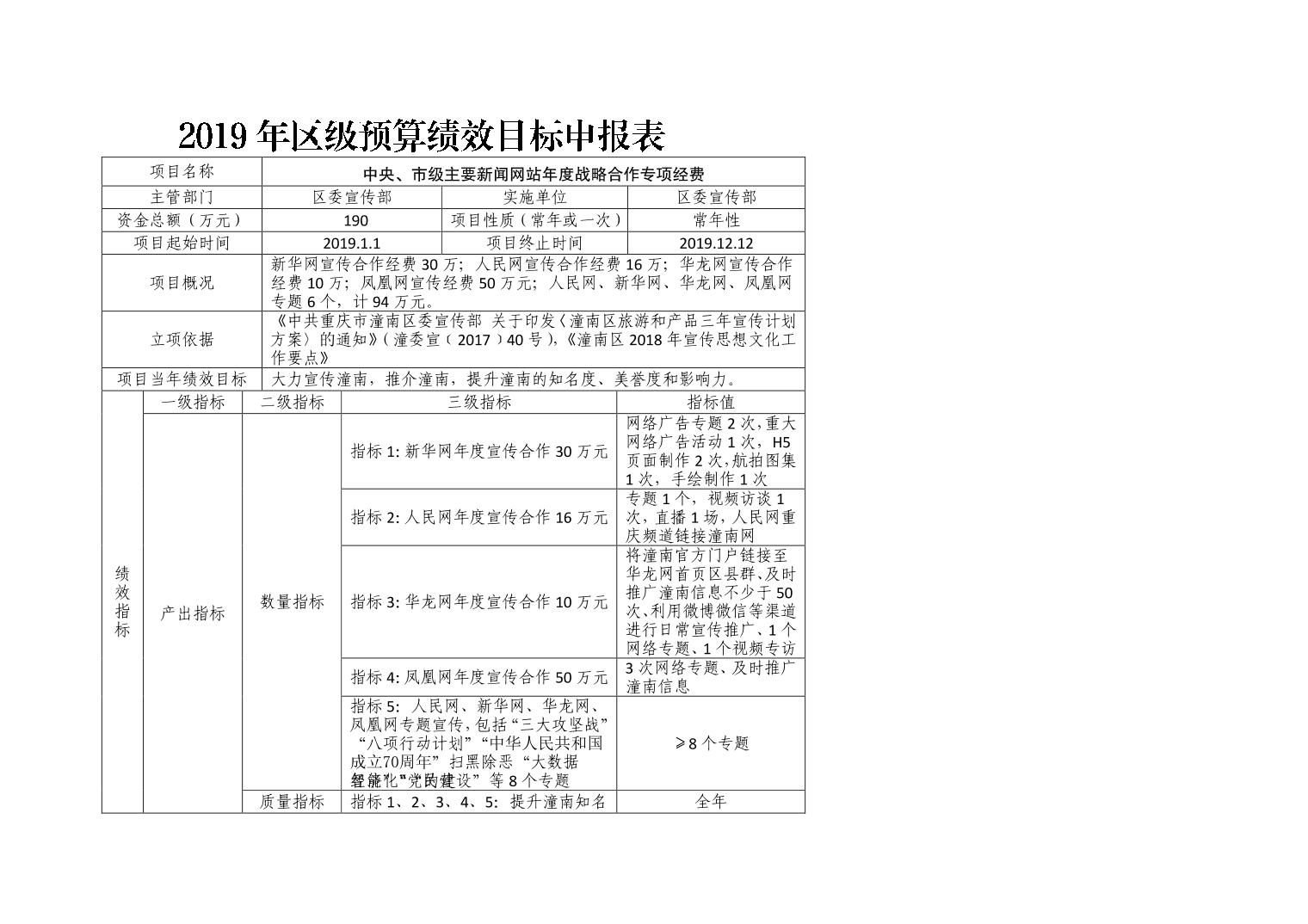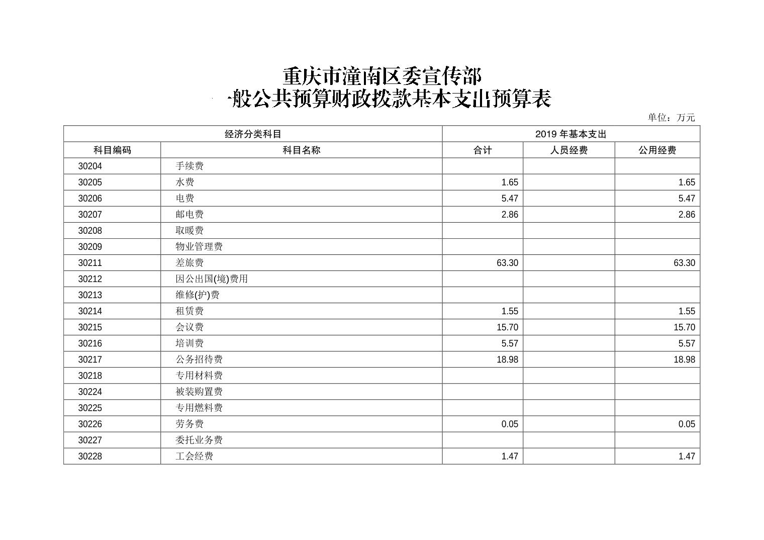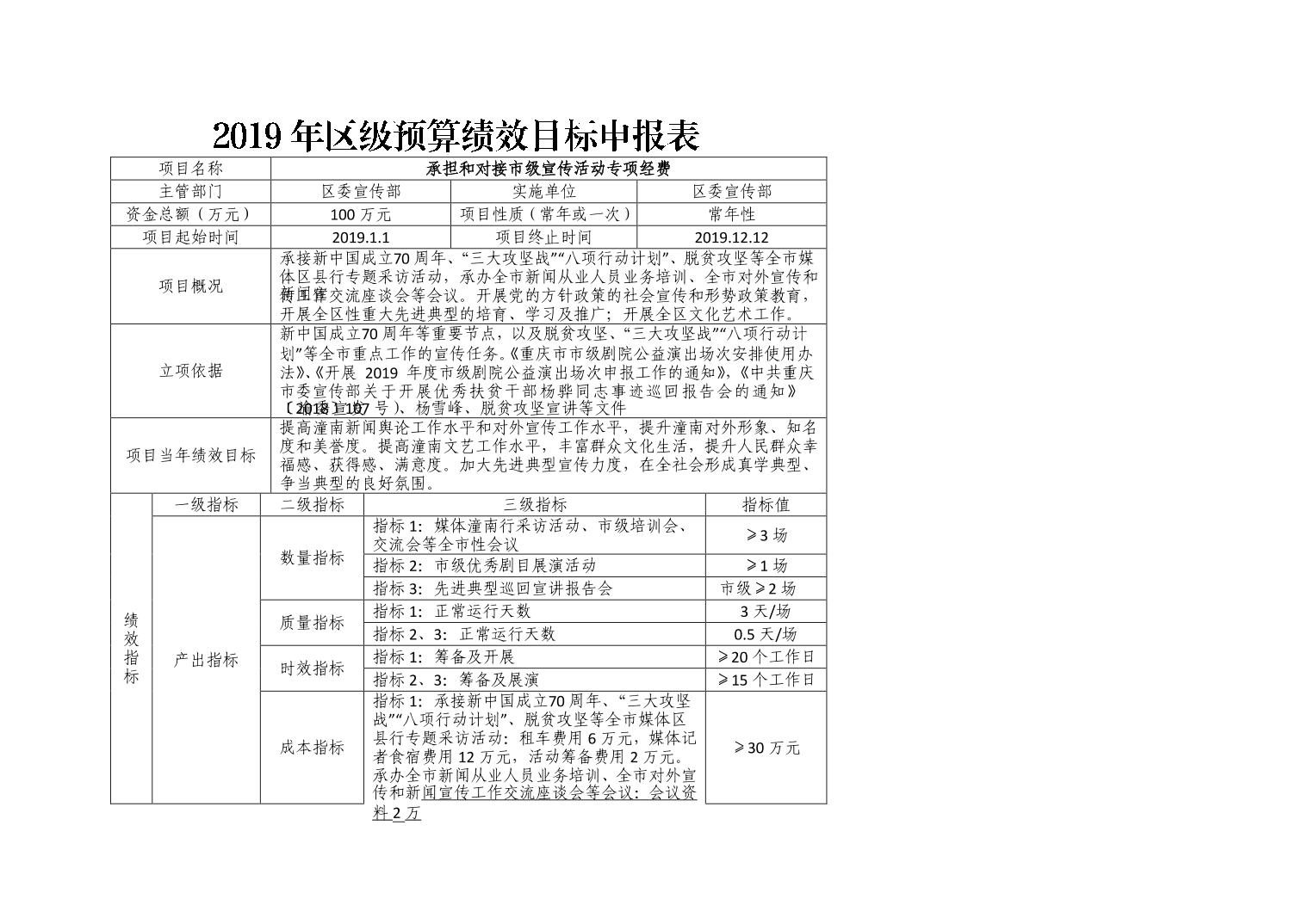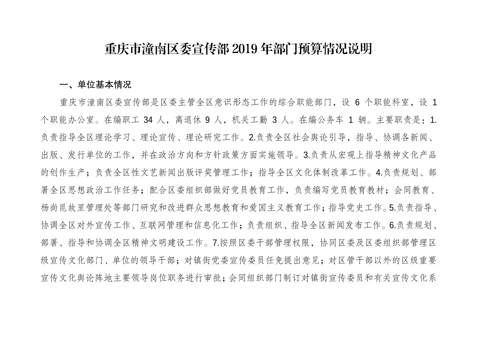 中共重庆市潼南区委宣传部2019年部门预算公开