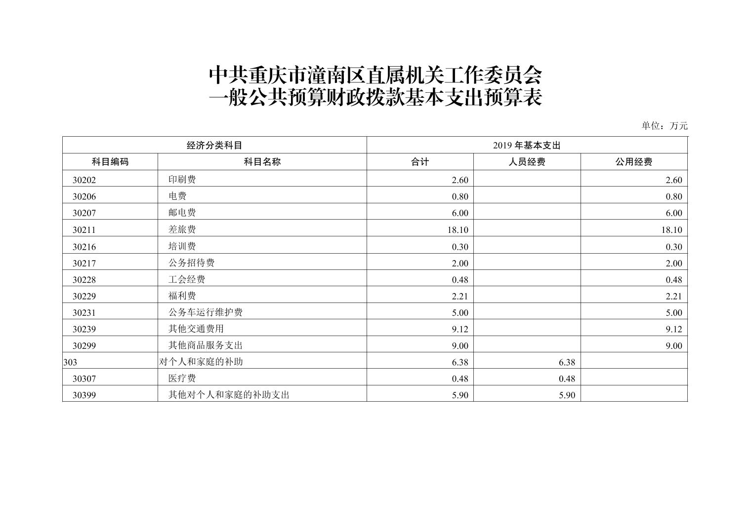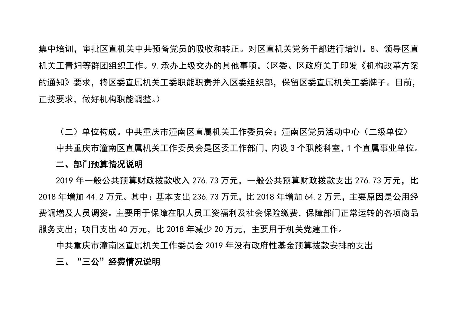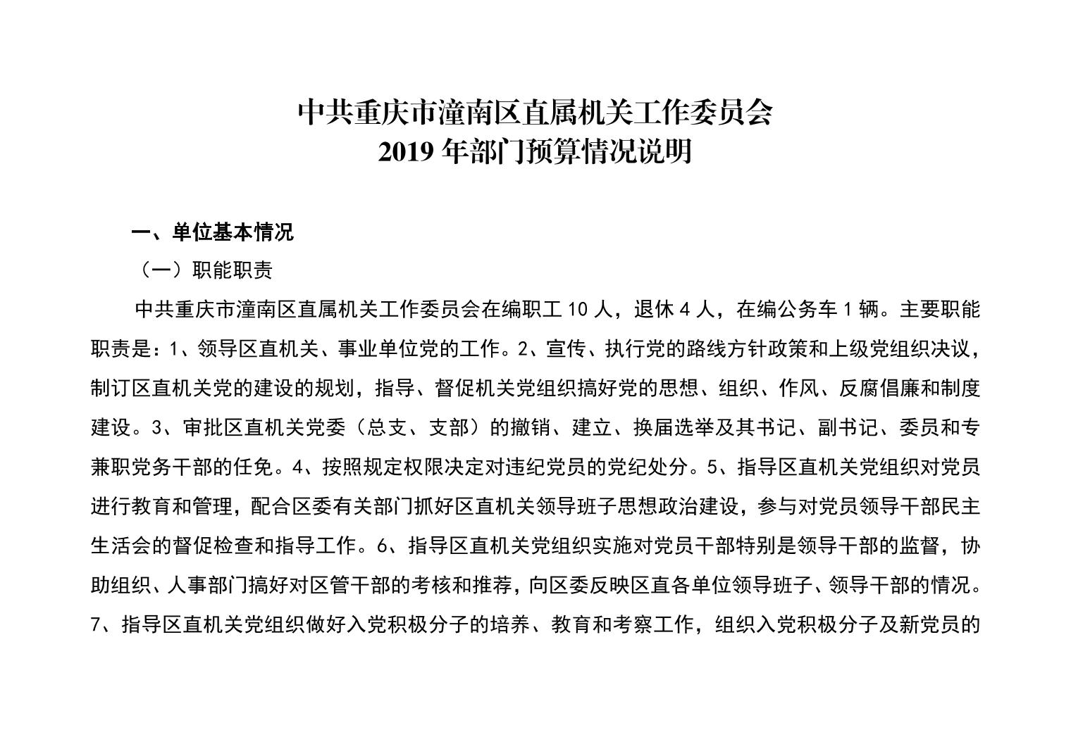 中共重庆市潼南区直属机关工委2019年部门预算公开