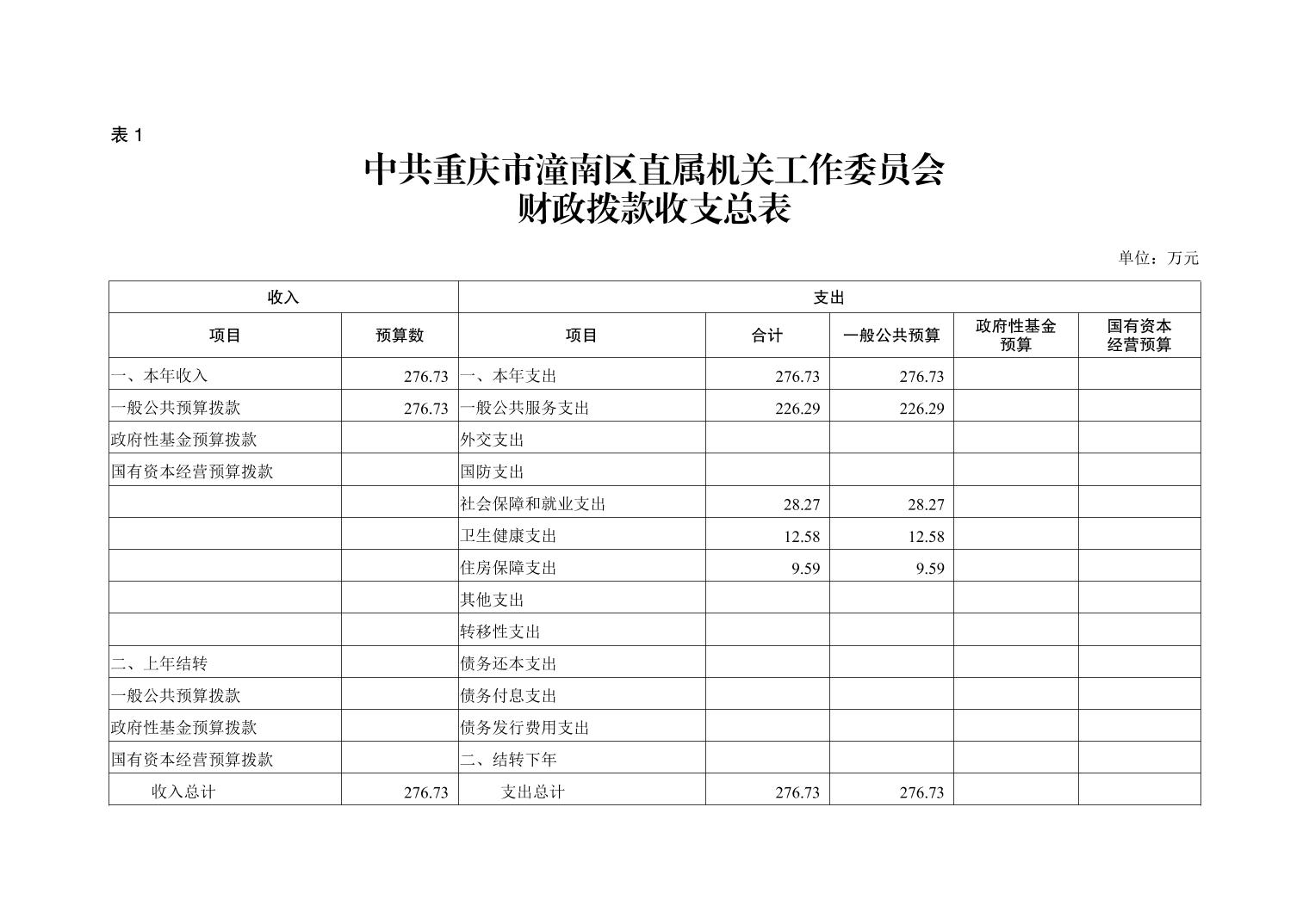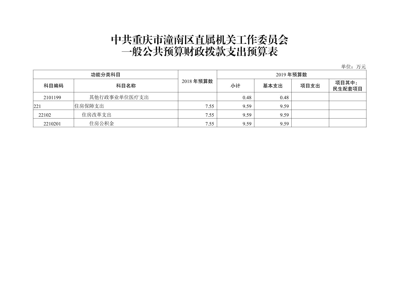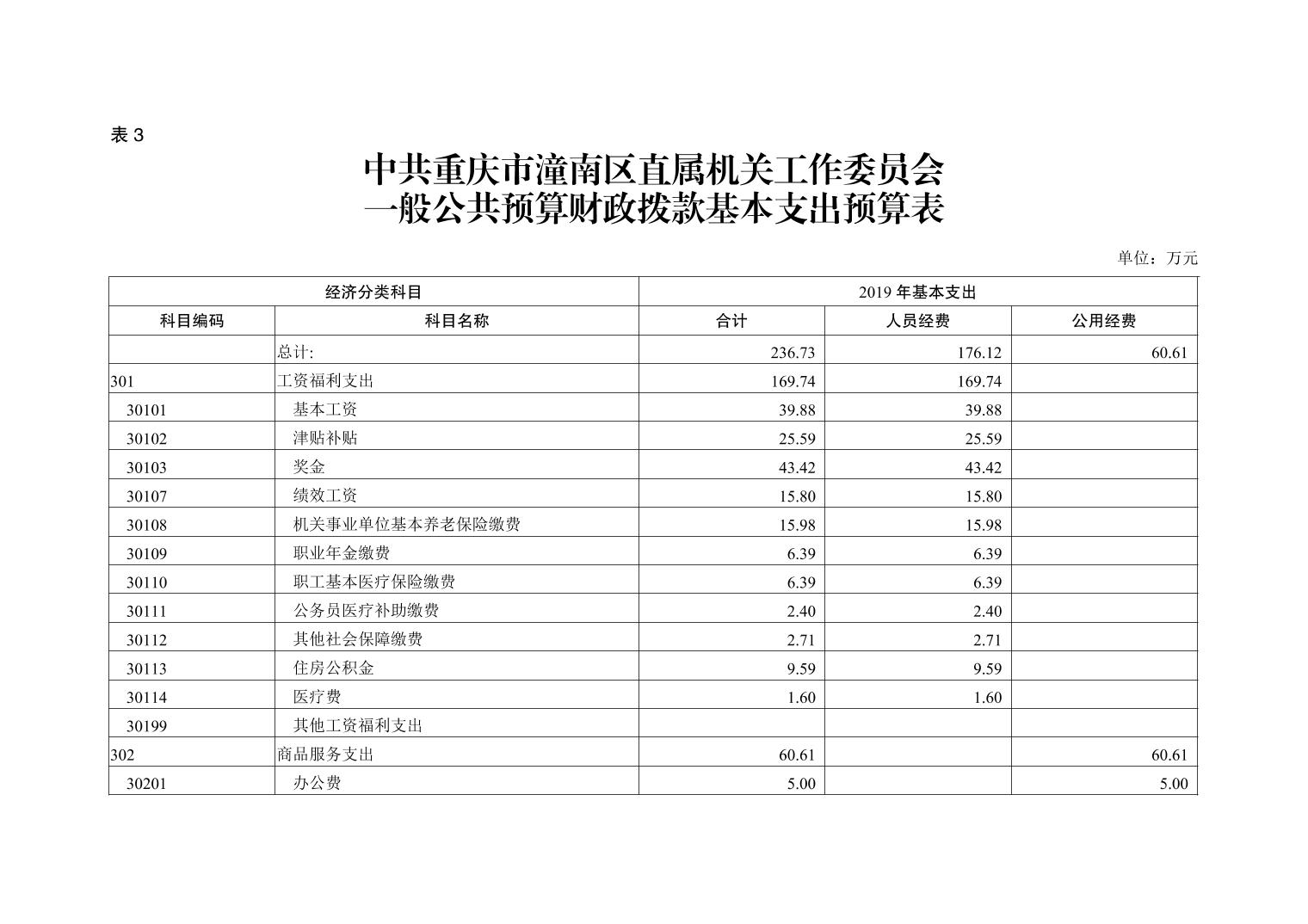 中共重庆市潼南区直属机关工委2019年部门预算公开