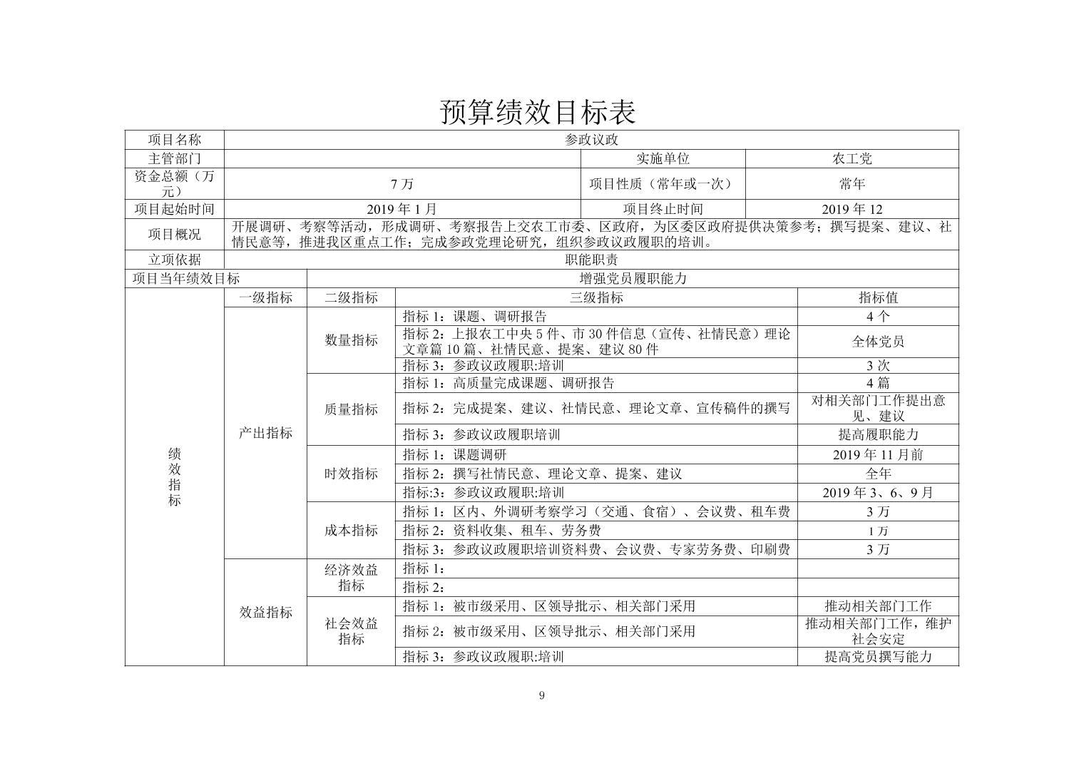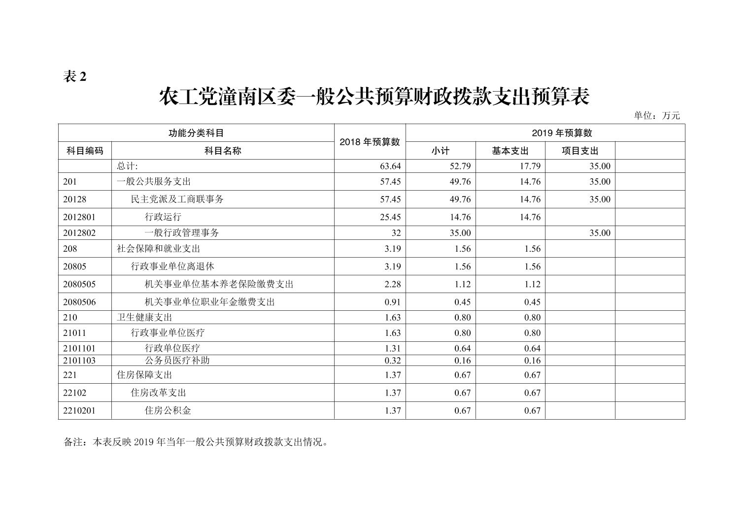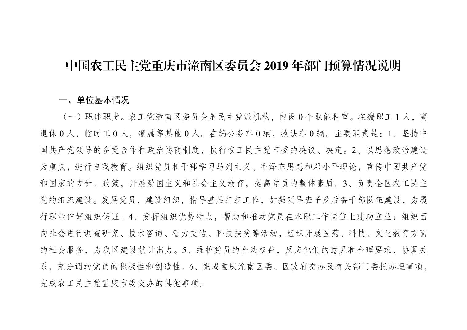 中国农工民主党重庆市潼南区委员会2019年部门预算公开