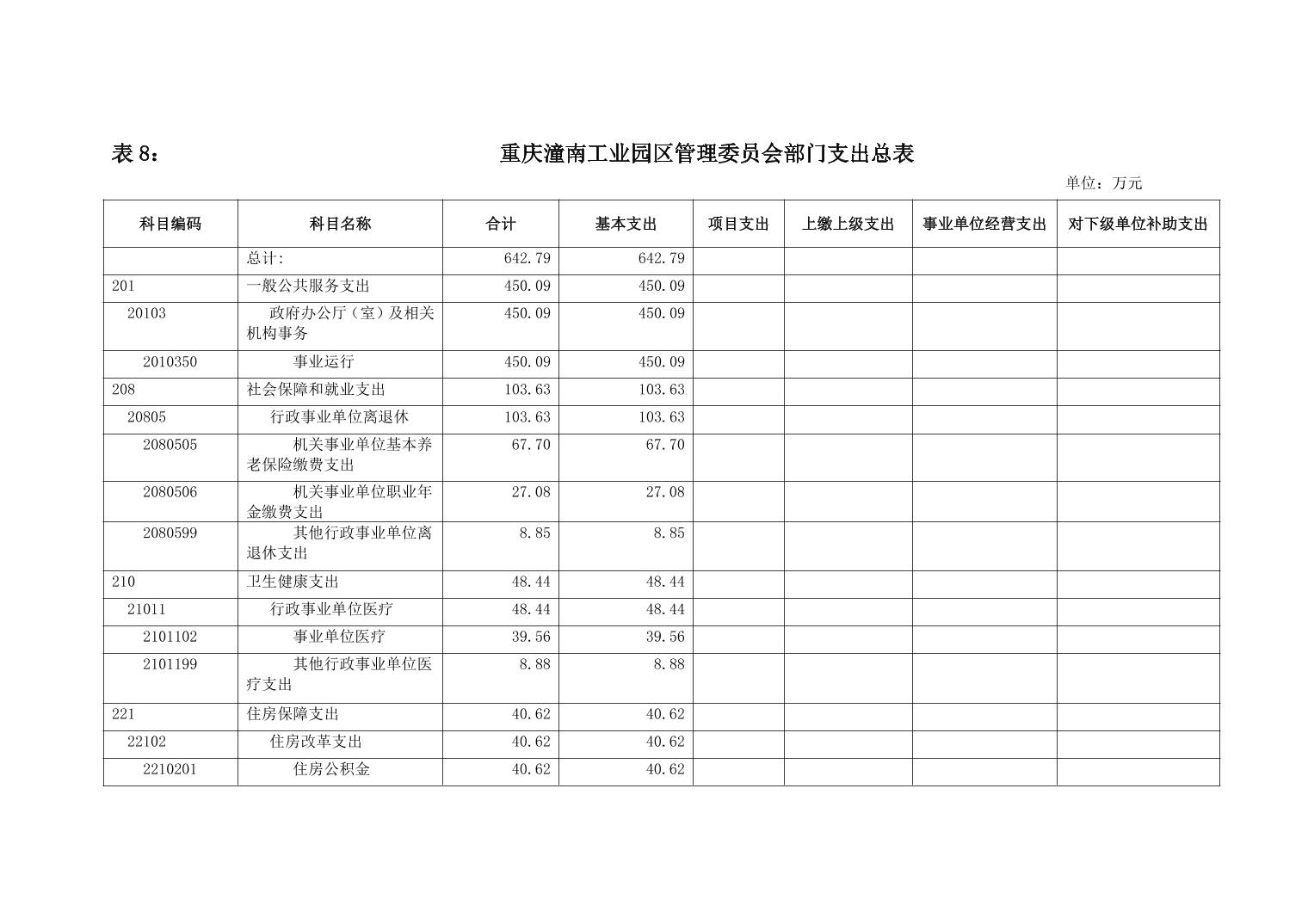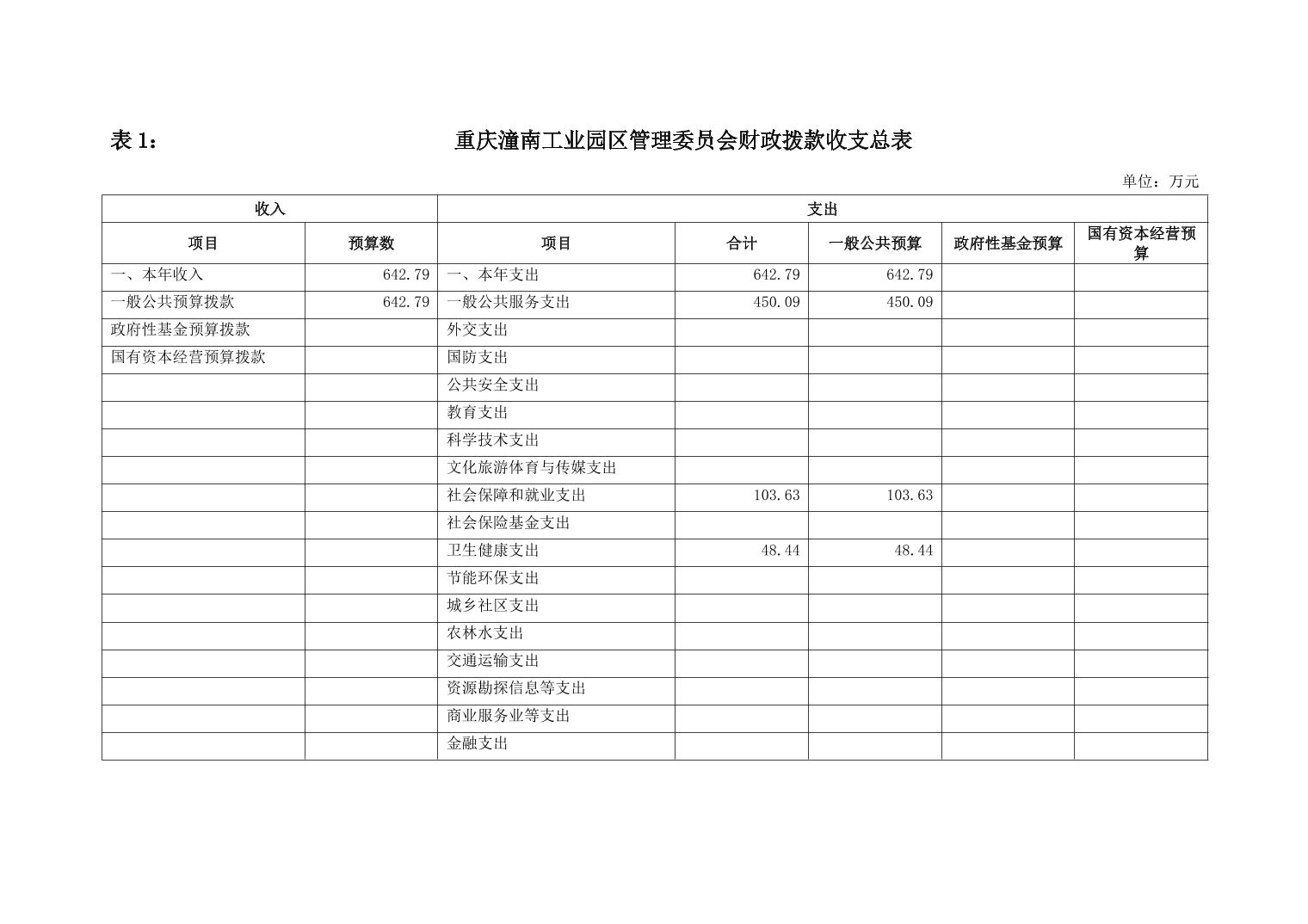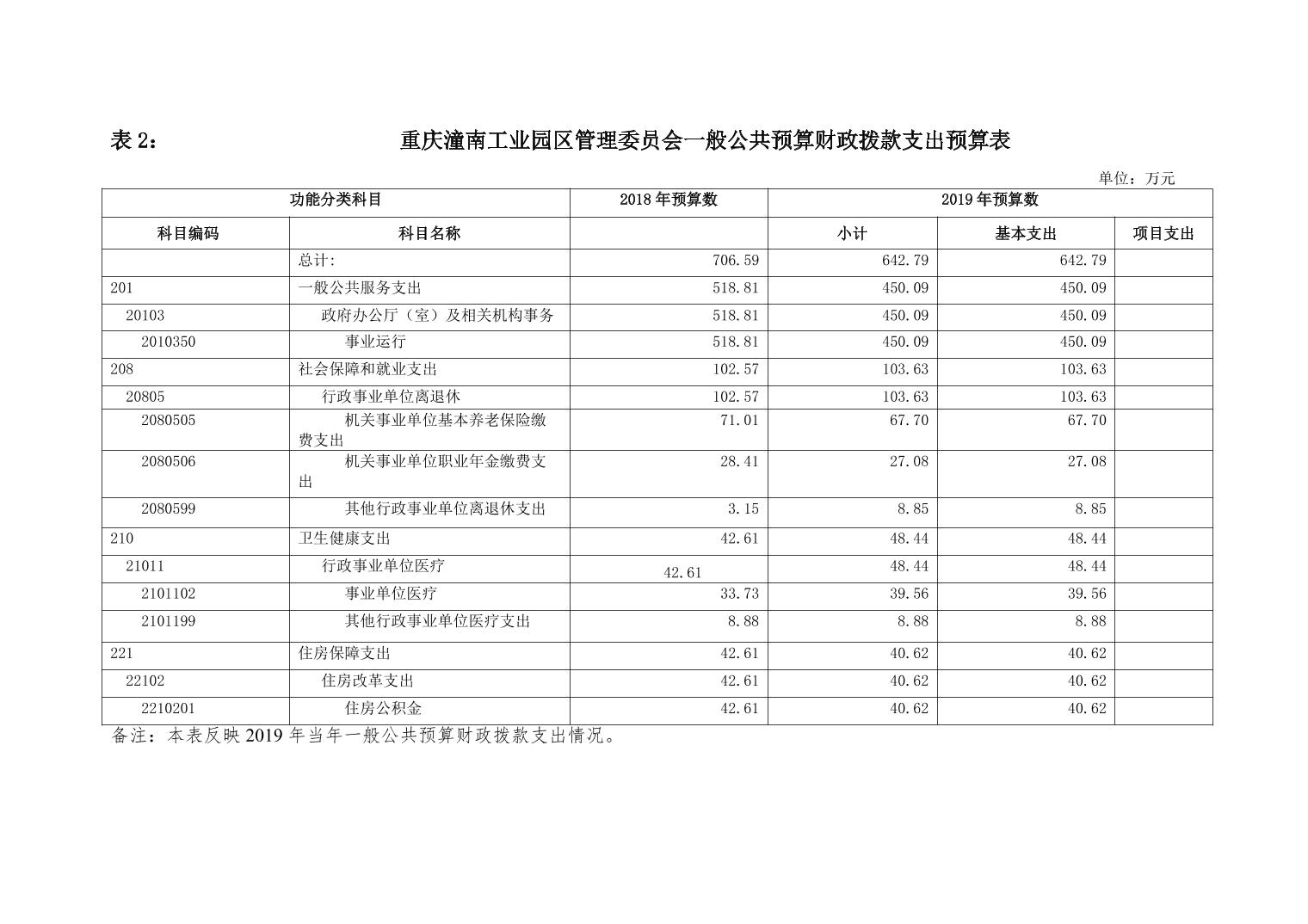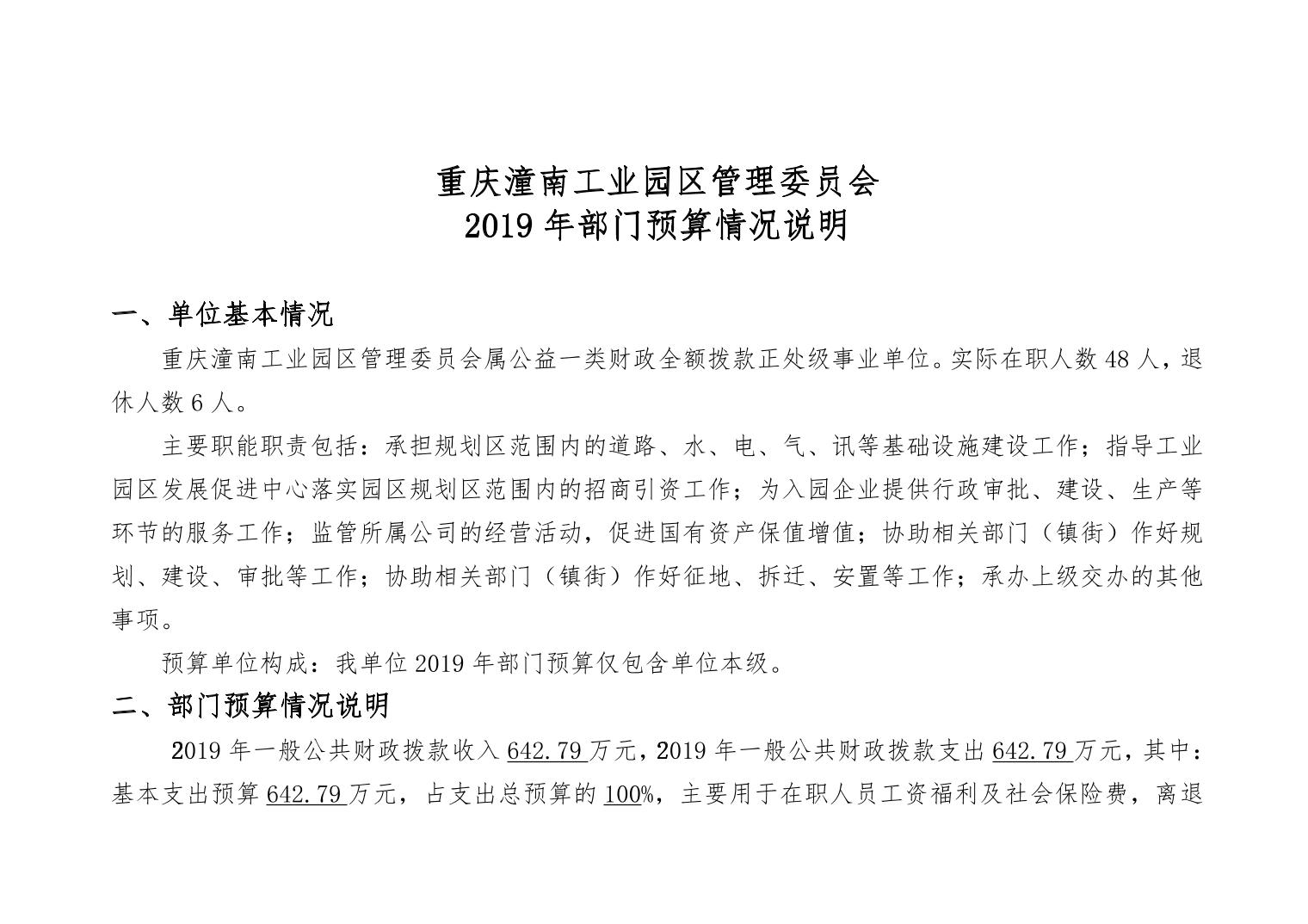 重庆市潼南区工业园区管理委员会2019年部门预算公开