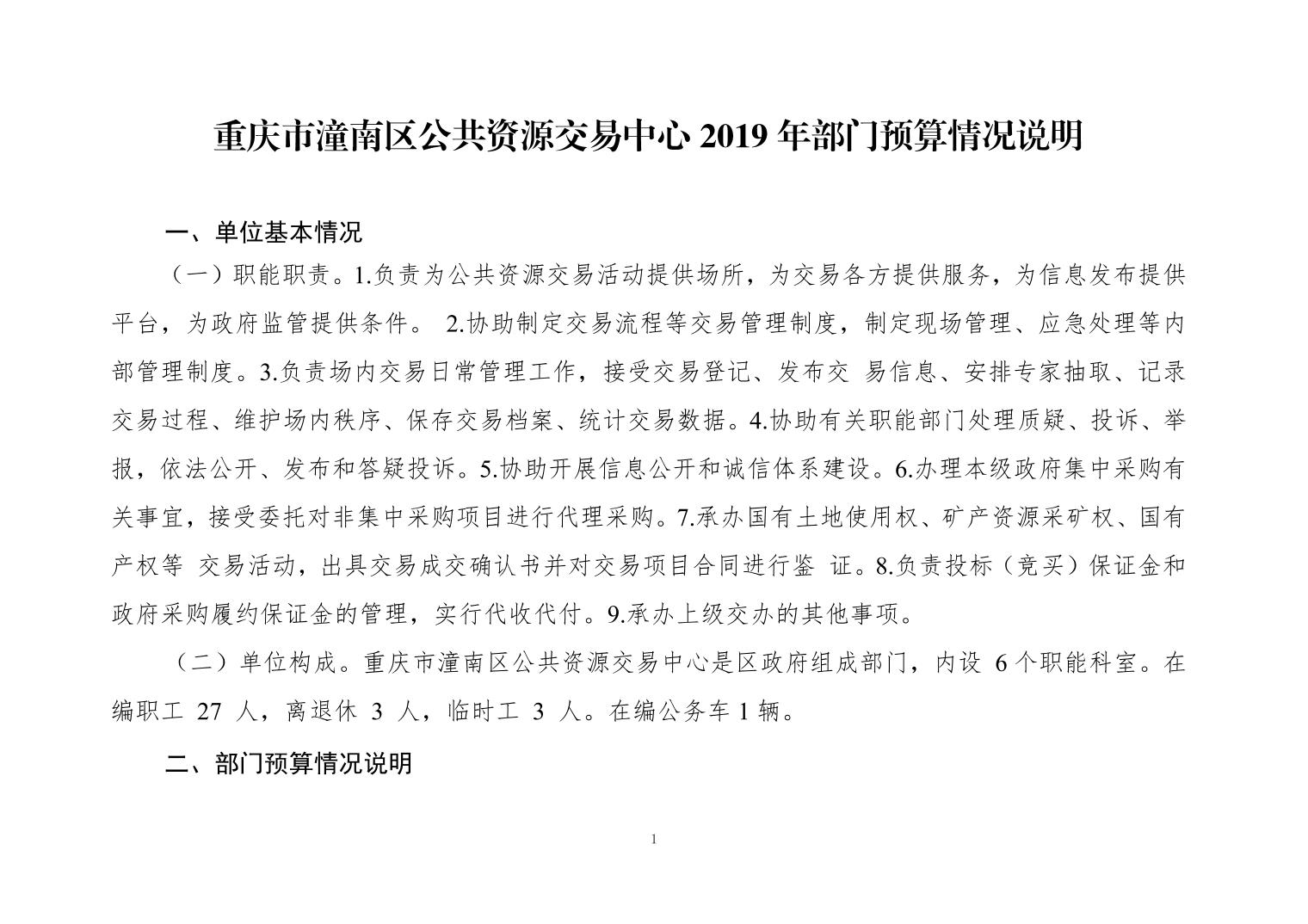 重庆市潼南区公共资源交易中心2019年部门预算公开