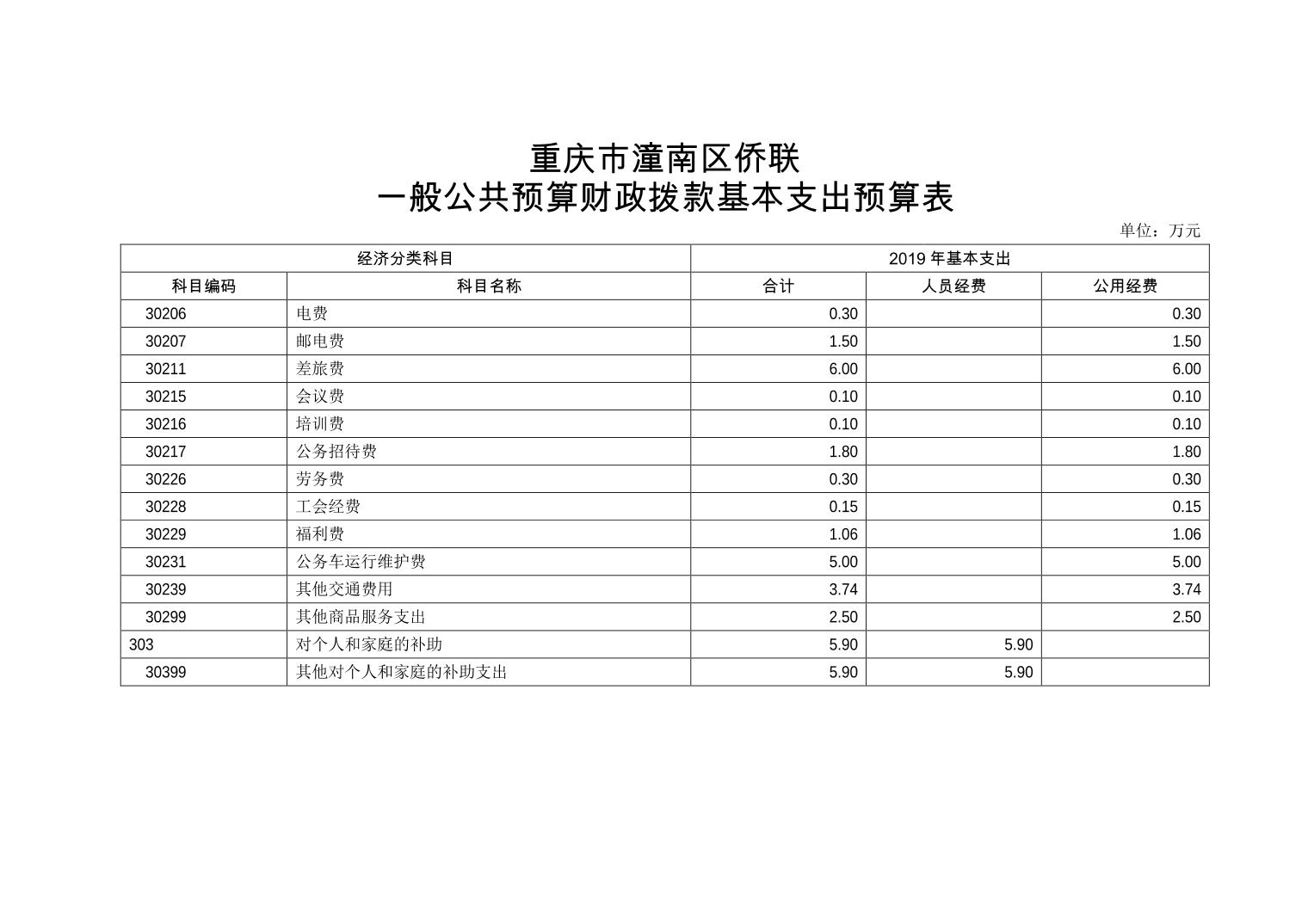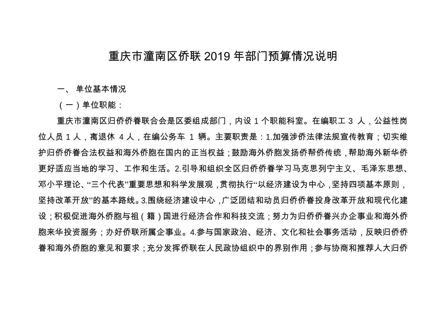 重庆市潼南区侨联2019年部门预算公开