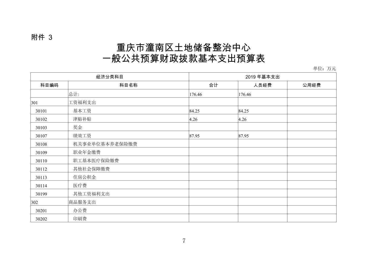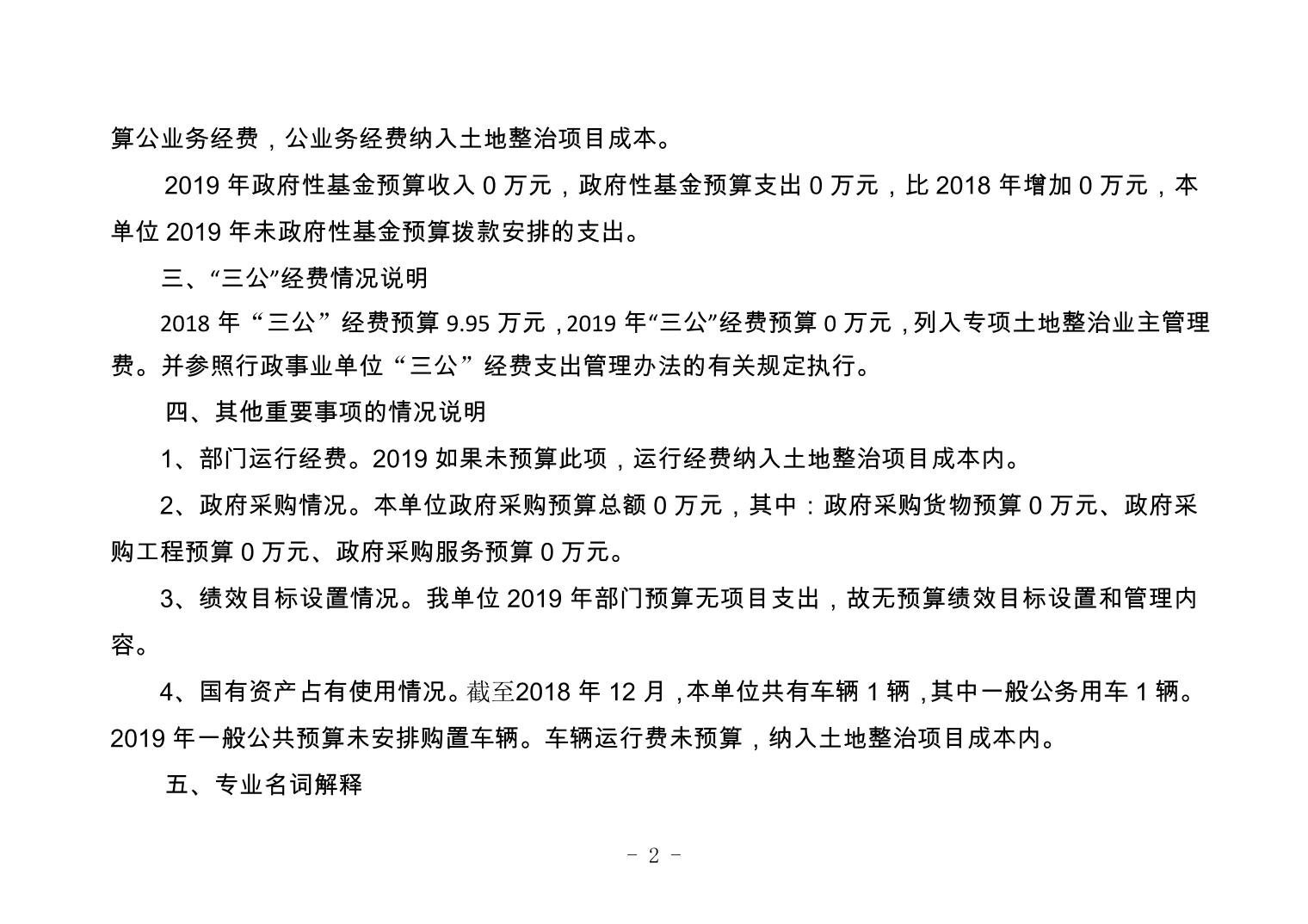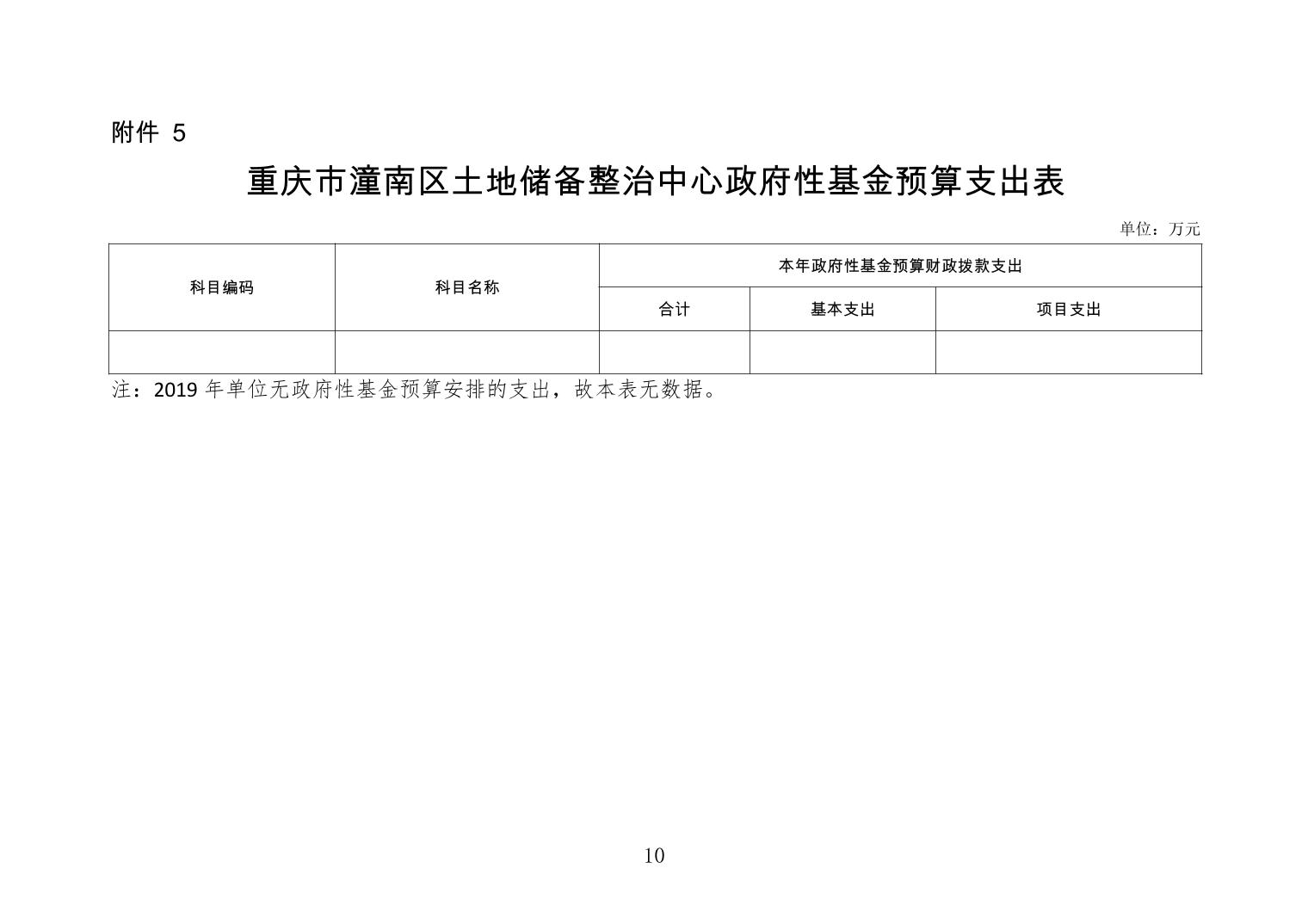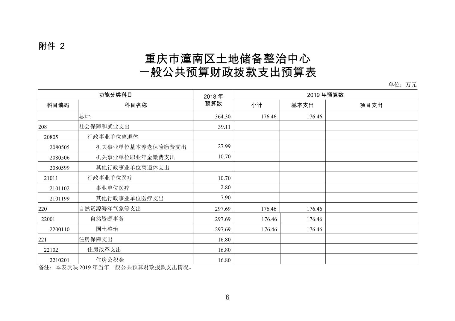 重庆市潼南区土地储备整治中心 2019 年部门预算公开