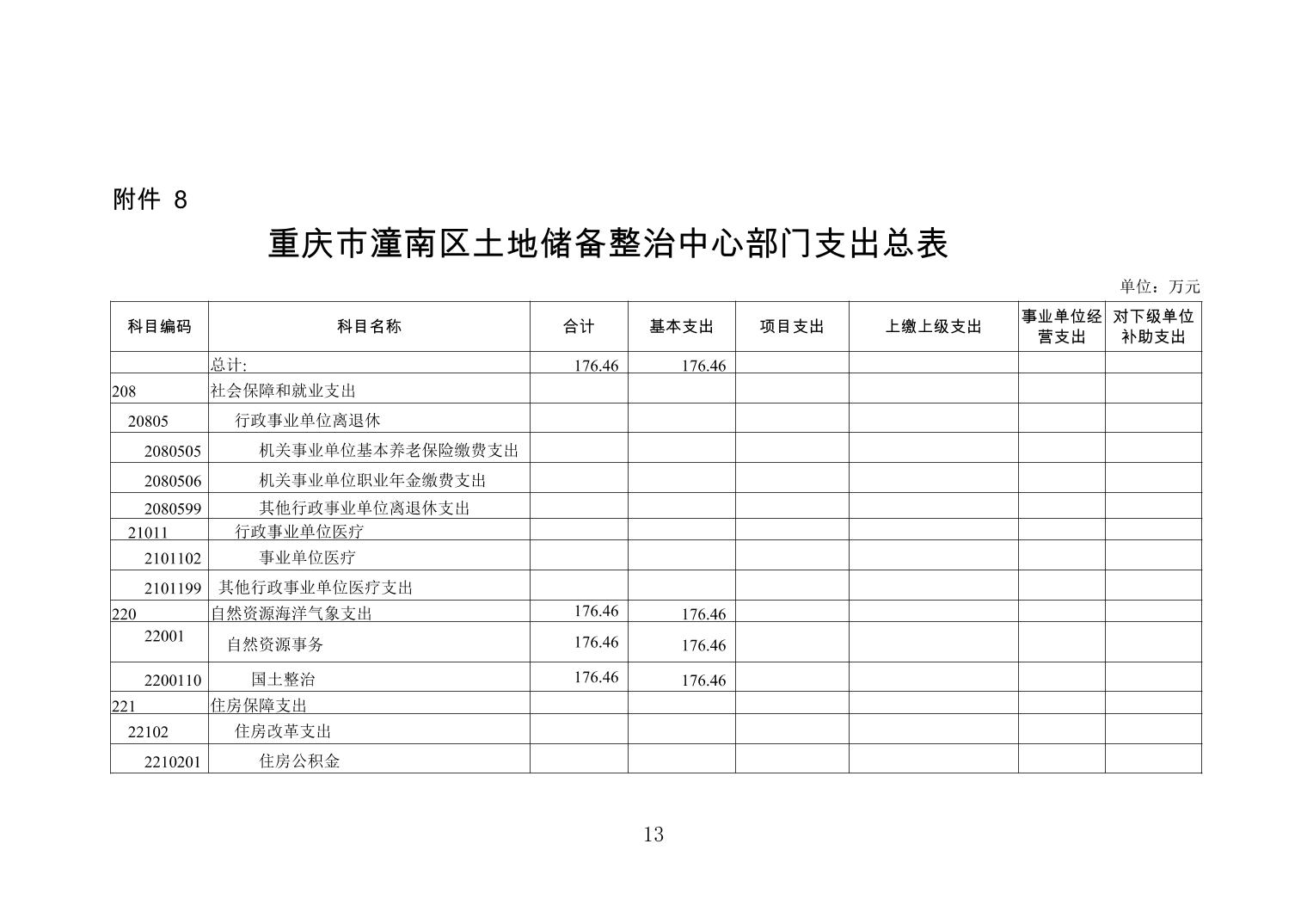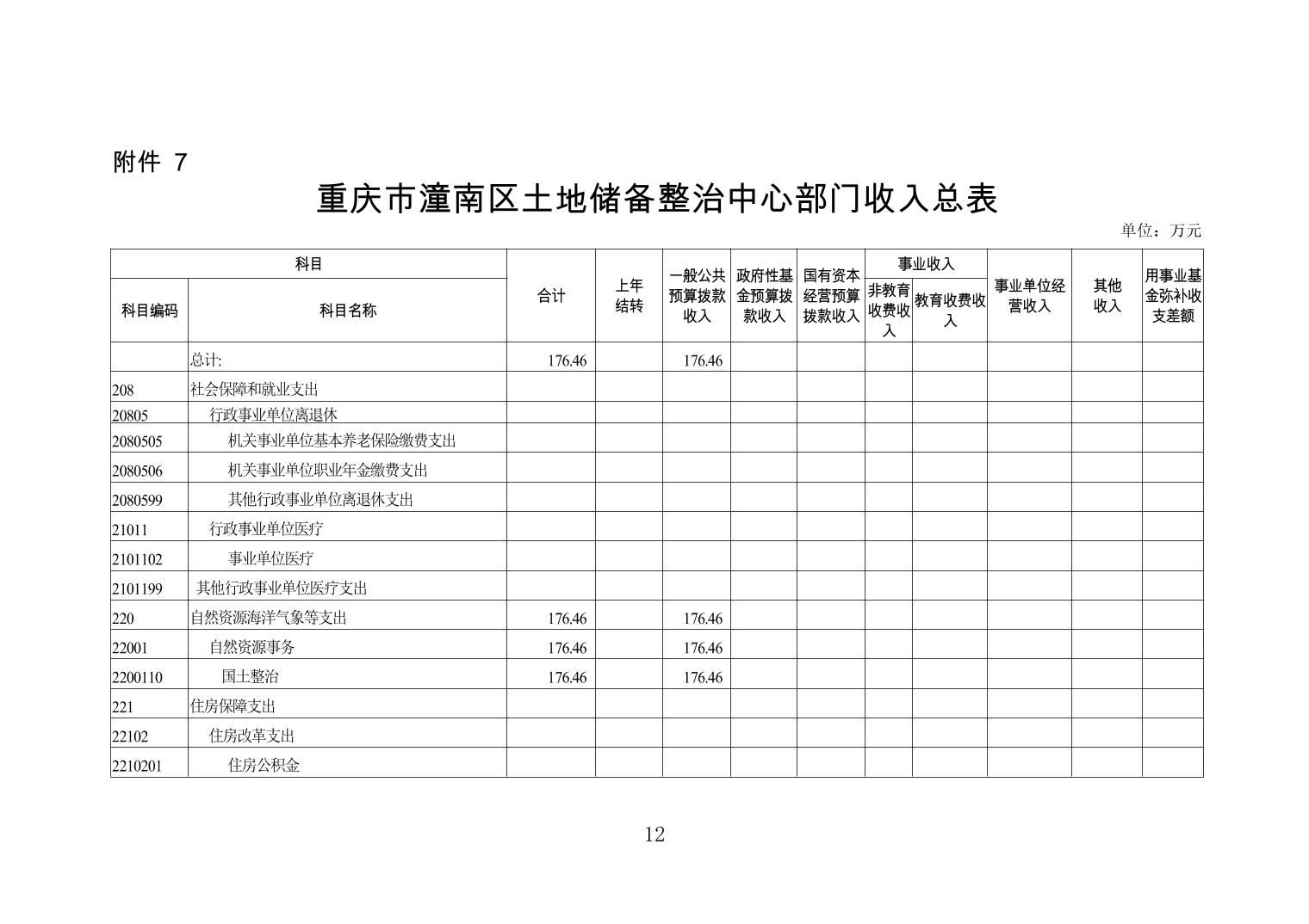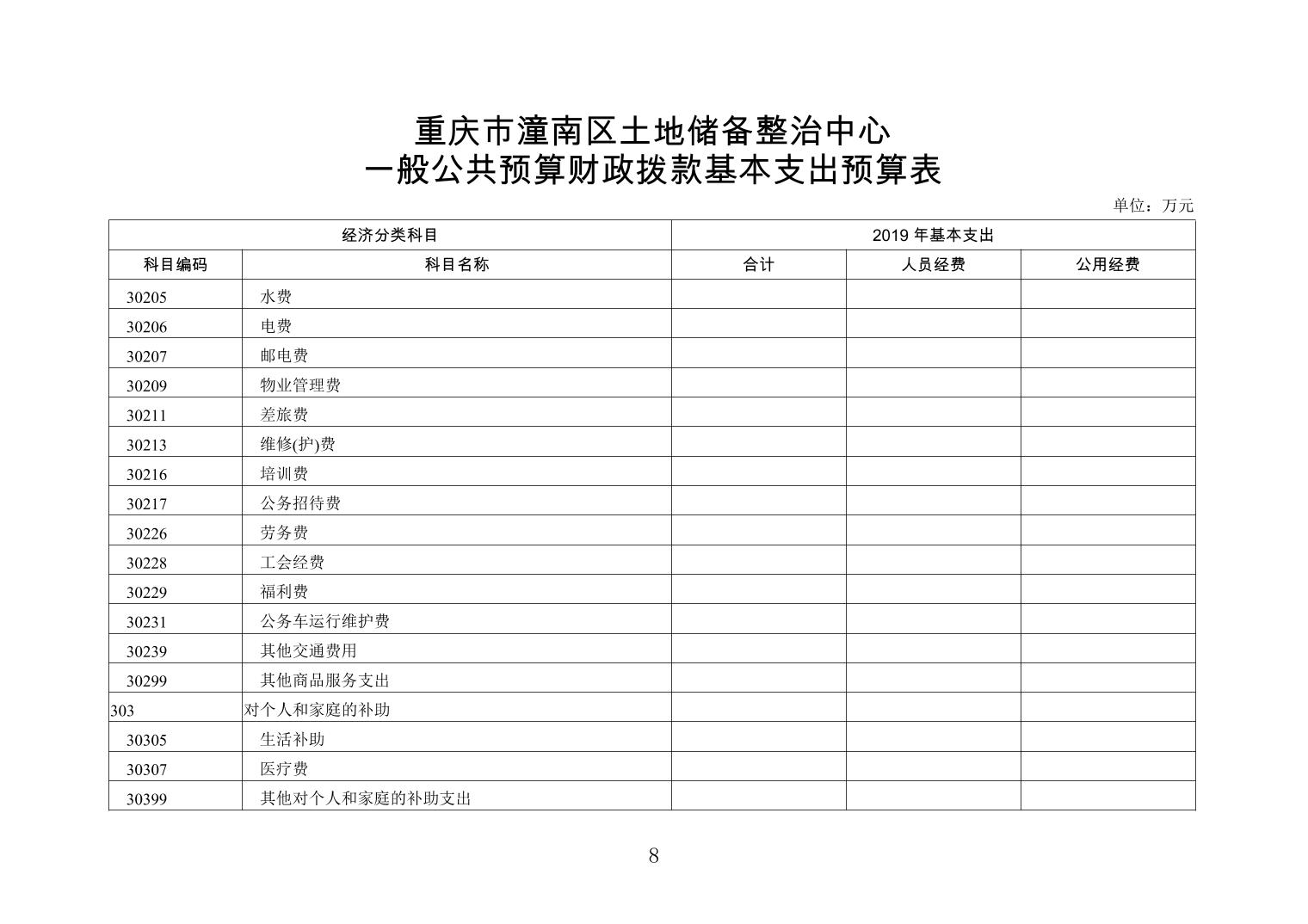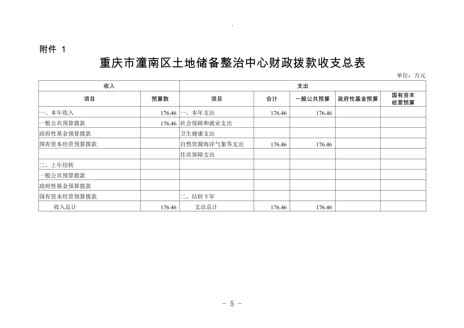重庆市潼南区土地储备整治中心 2019 年部门预算公开