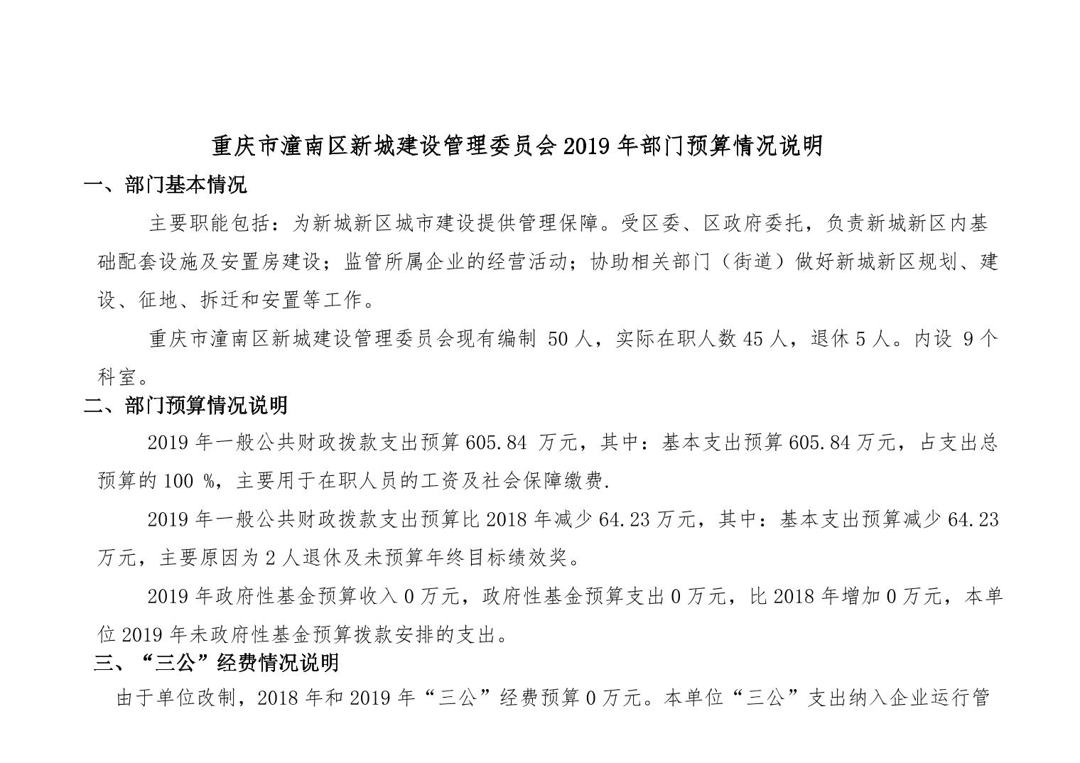 重庆市潼南区新城建设管理委员会2019年部门预算公开