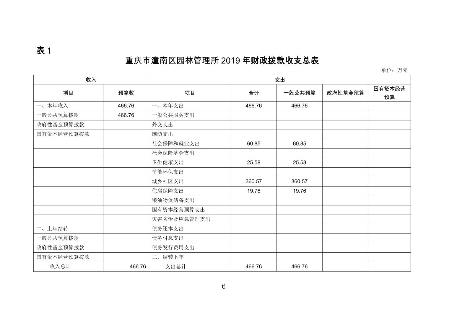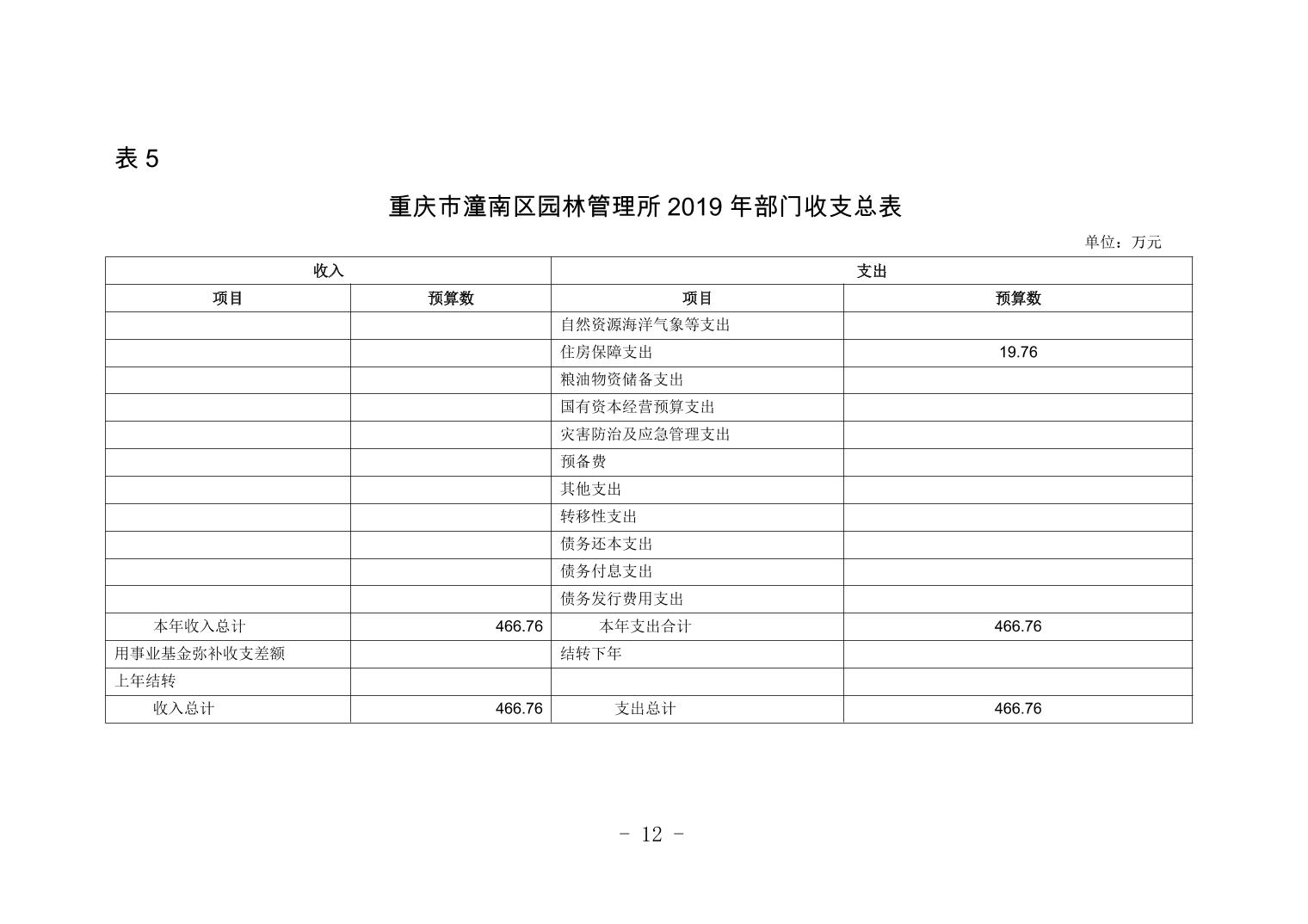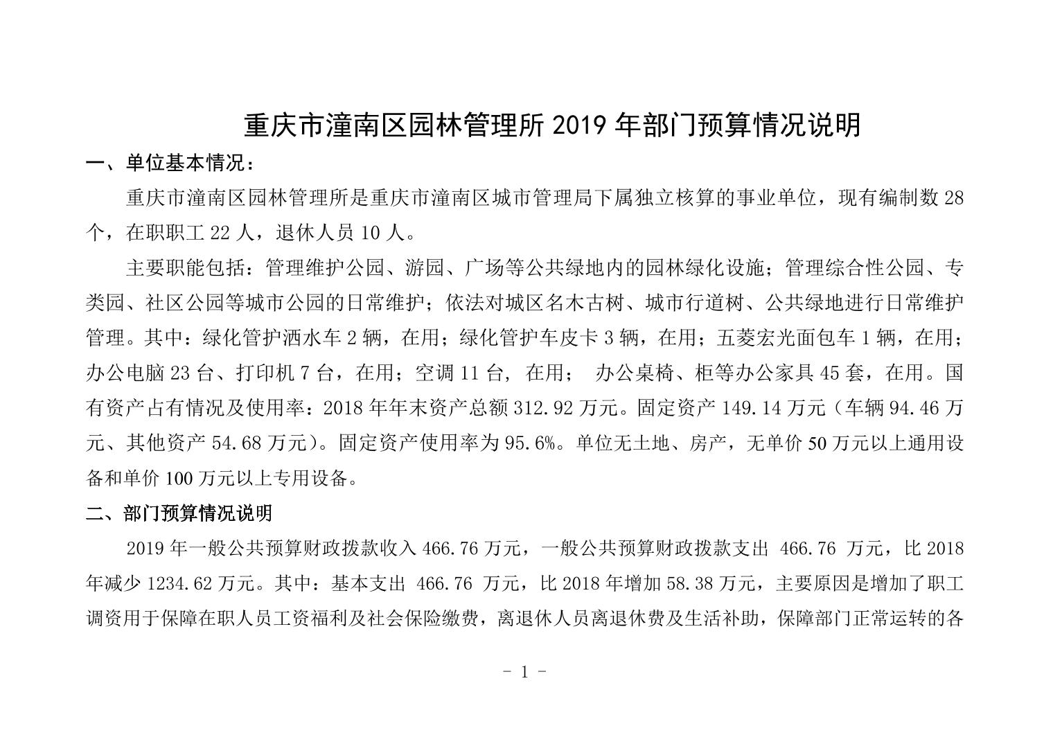 重庆市潼南区园林管理所2019年部门预算公开