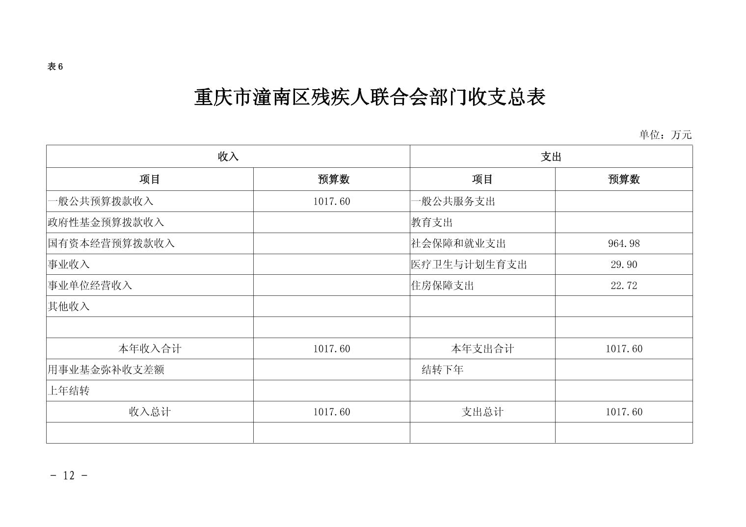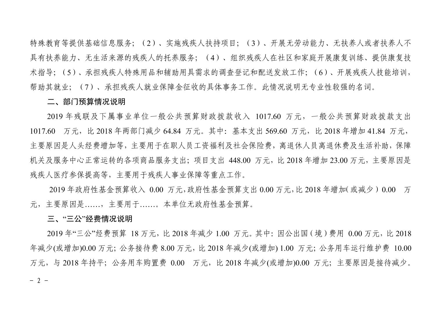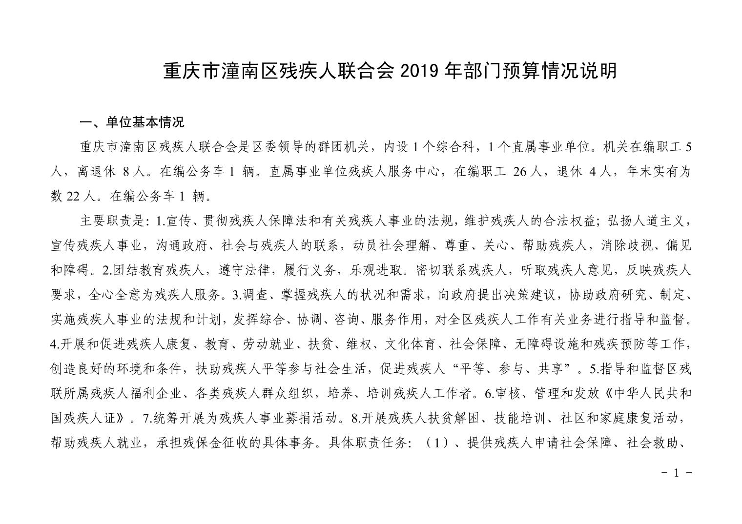 重庆市潼南区残疾人联合会2019年部门预算公开