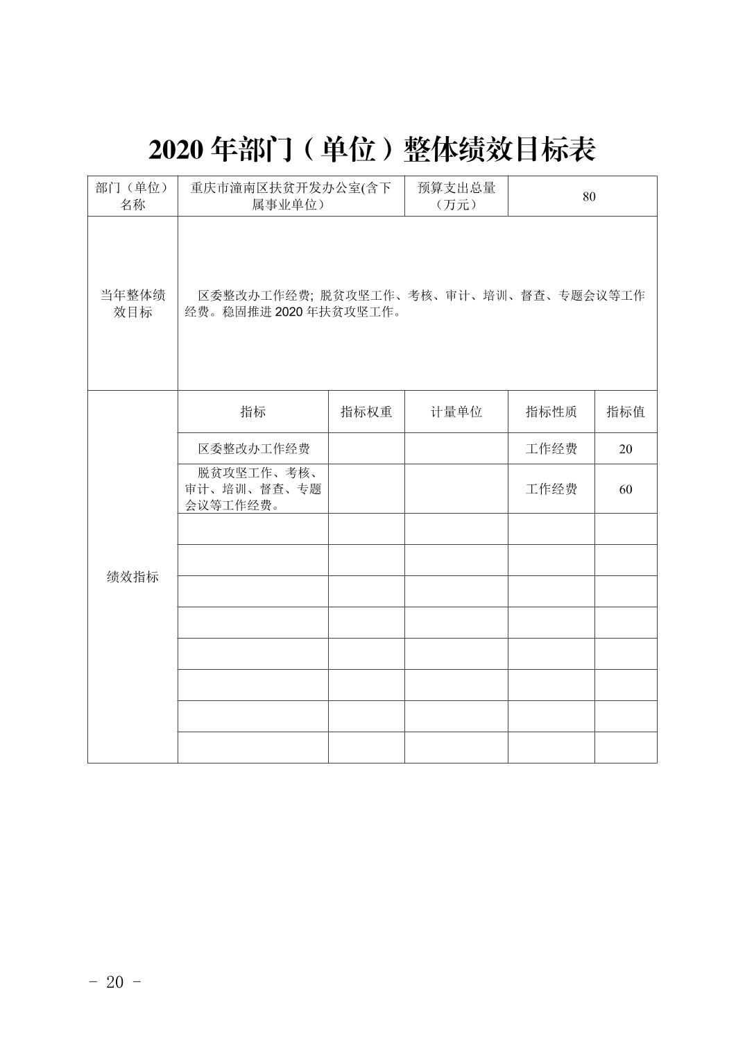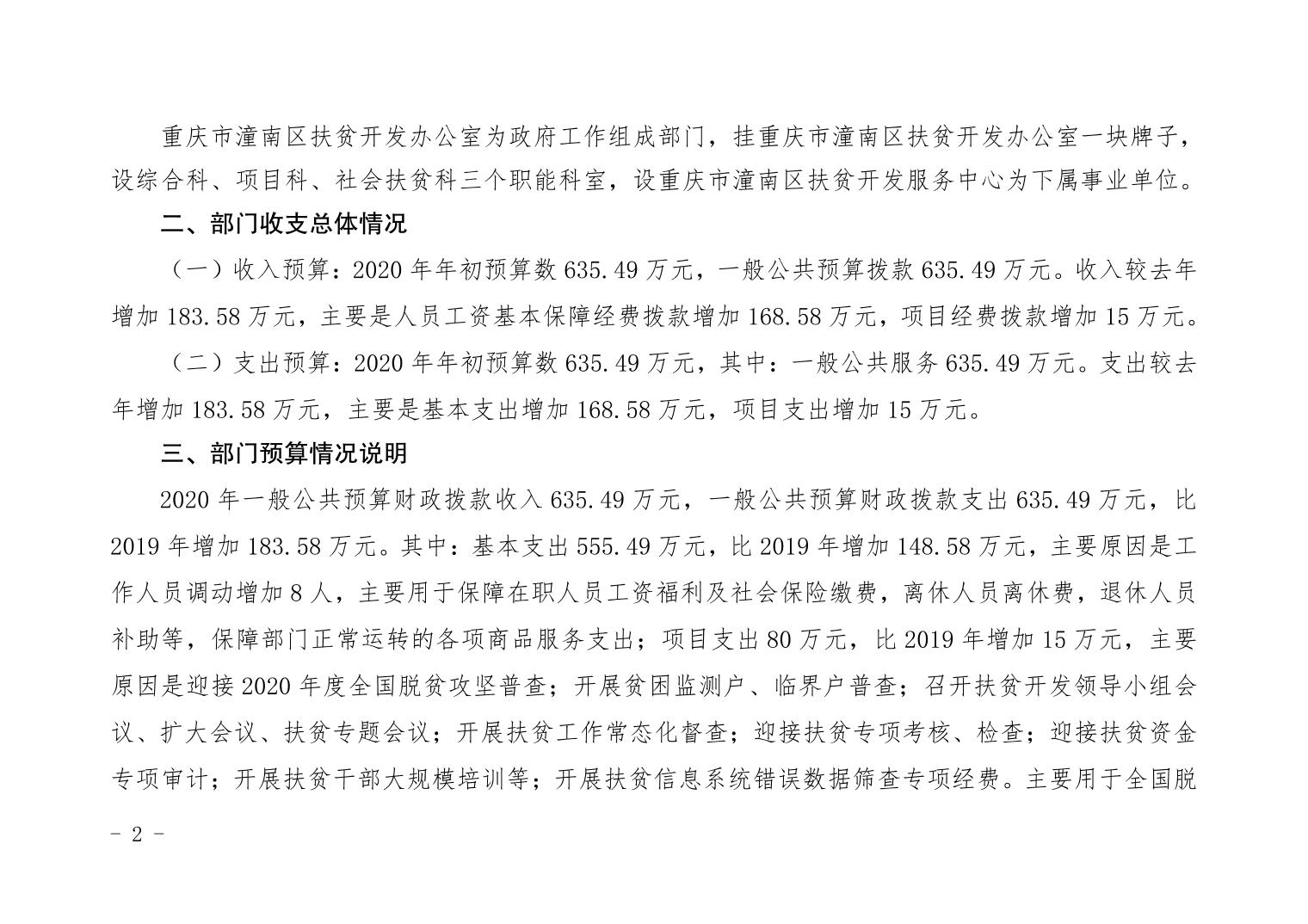 重庆市潼南区扶贫开发办公室2020年部门预算公开