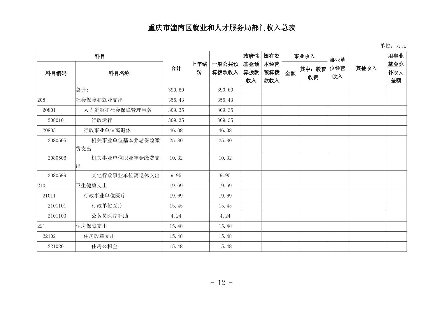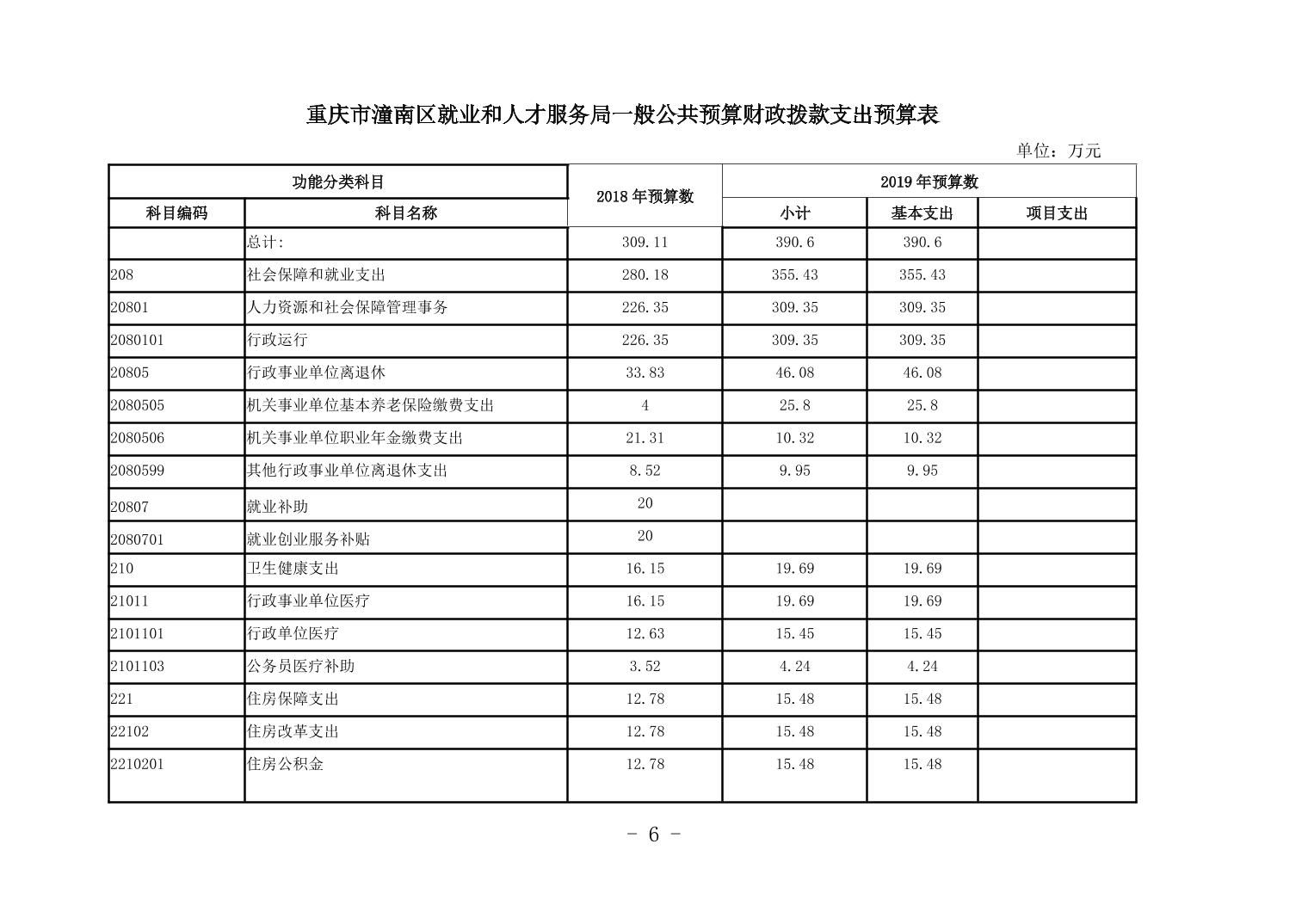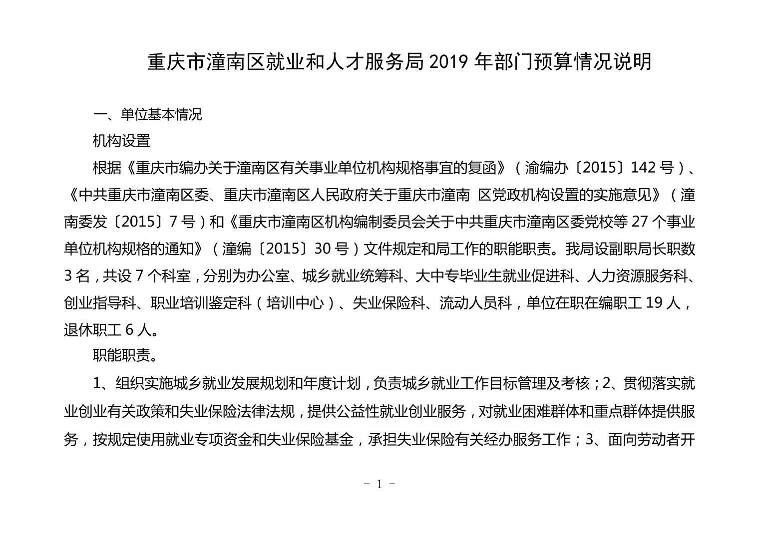 重庆市潼南区就业和人才服务局2019年部门预算公开