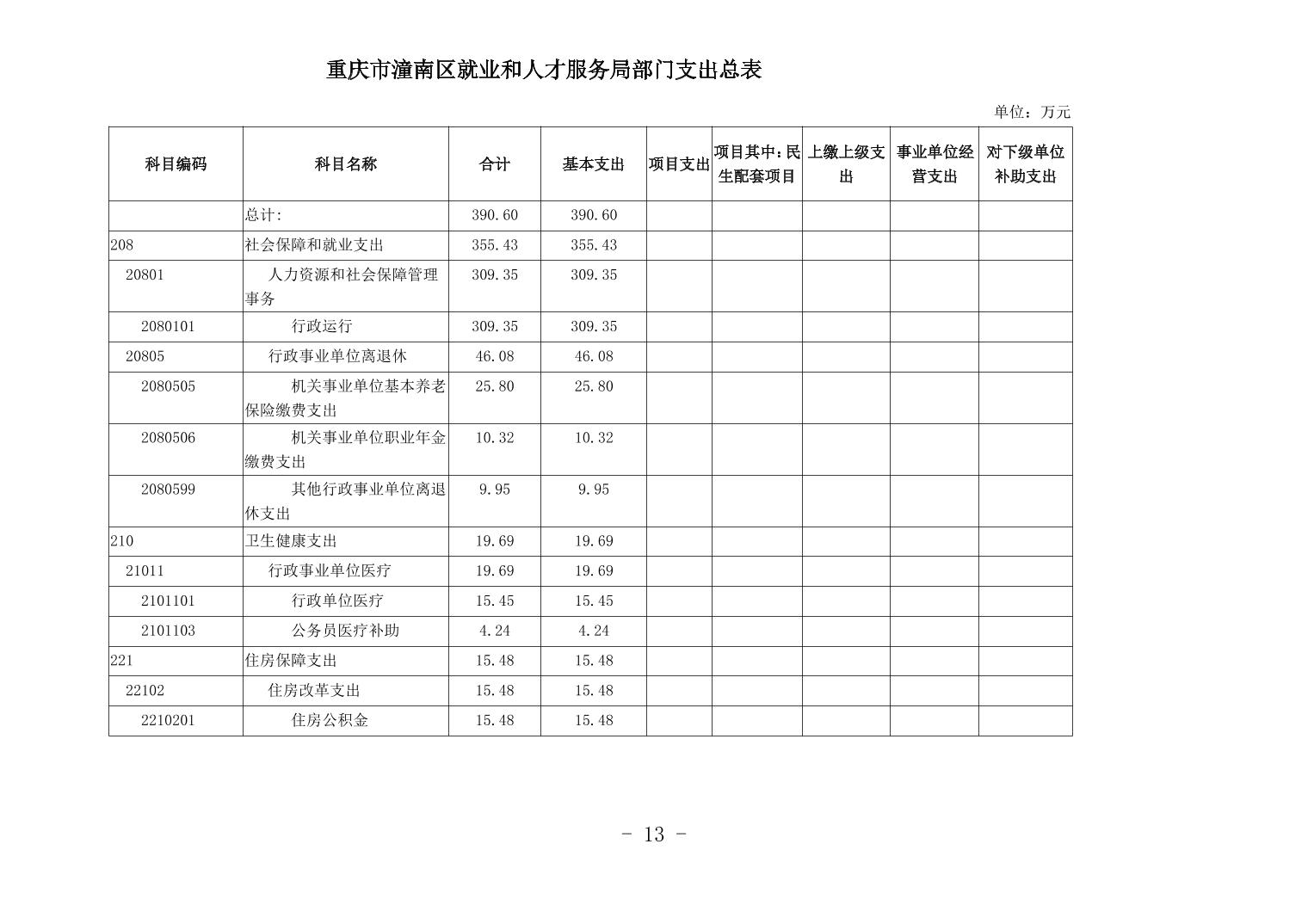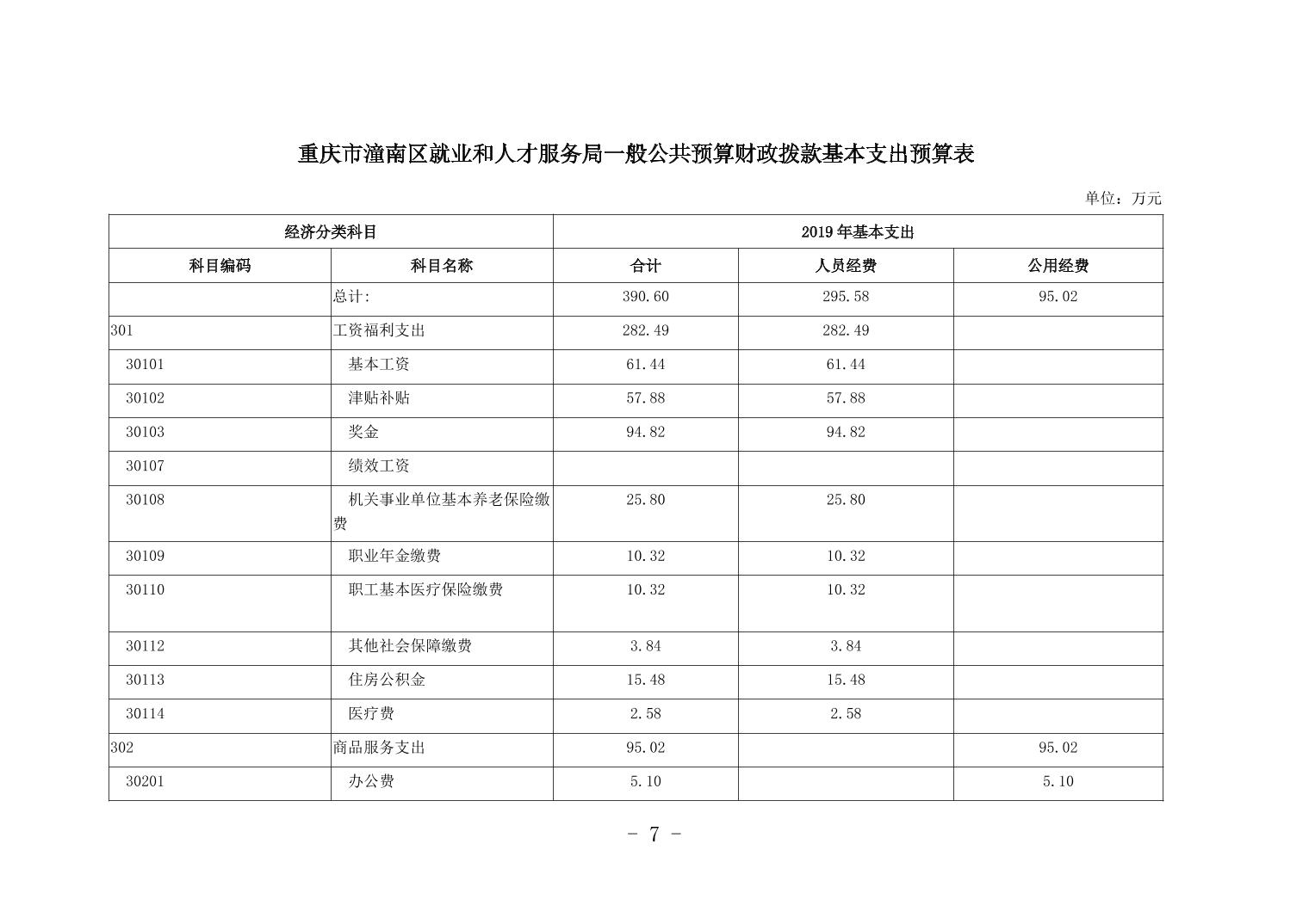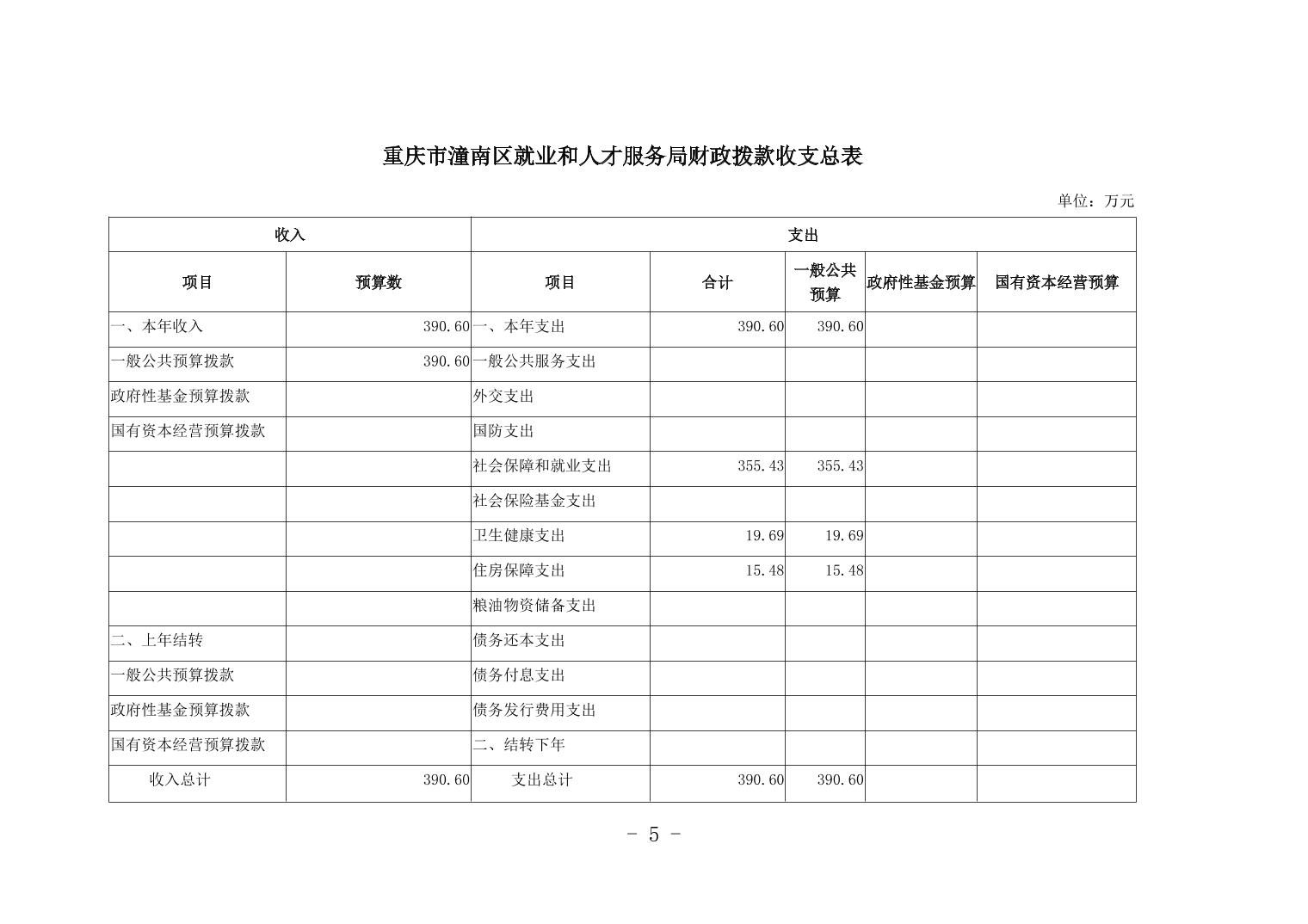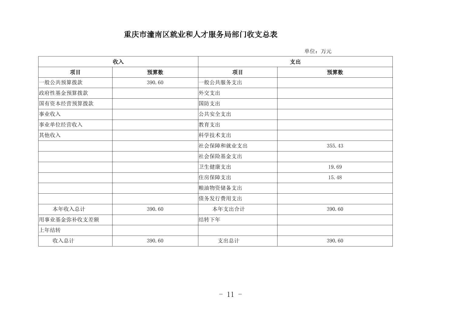 重庆市潼南区就业和人才服务局2019年部门预算公开