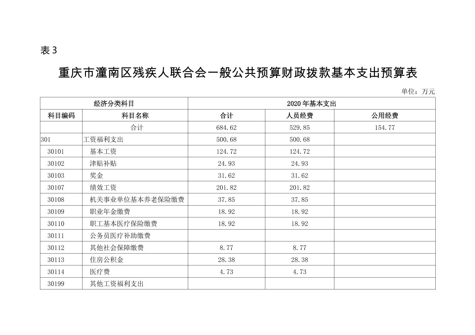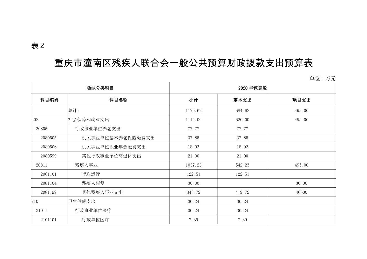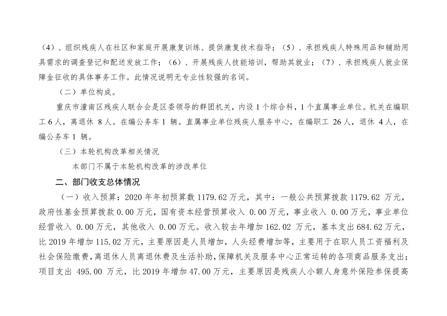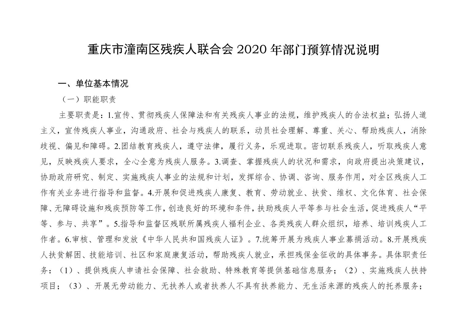 重庆市潼南区残疾人联合会2020年部门预算公开