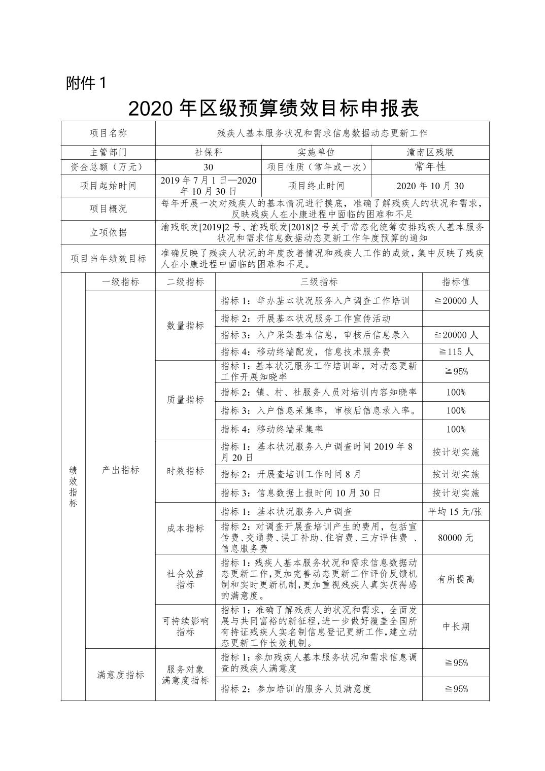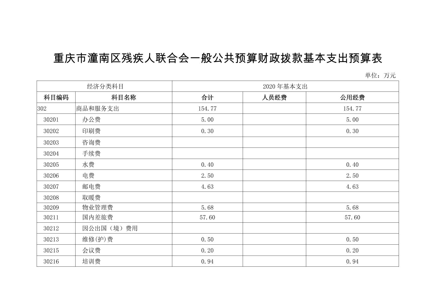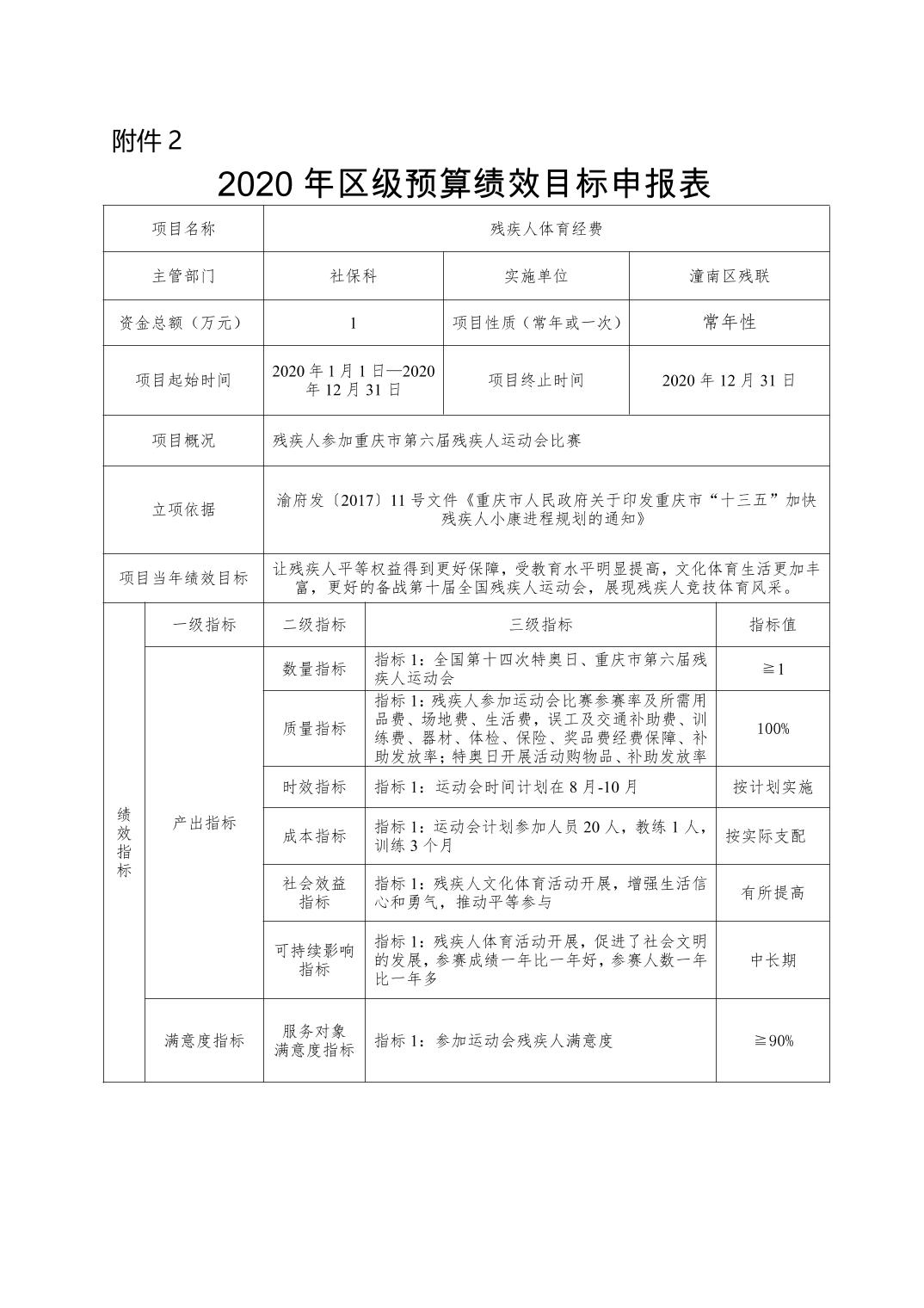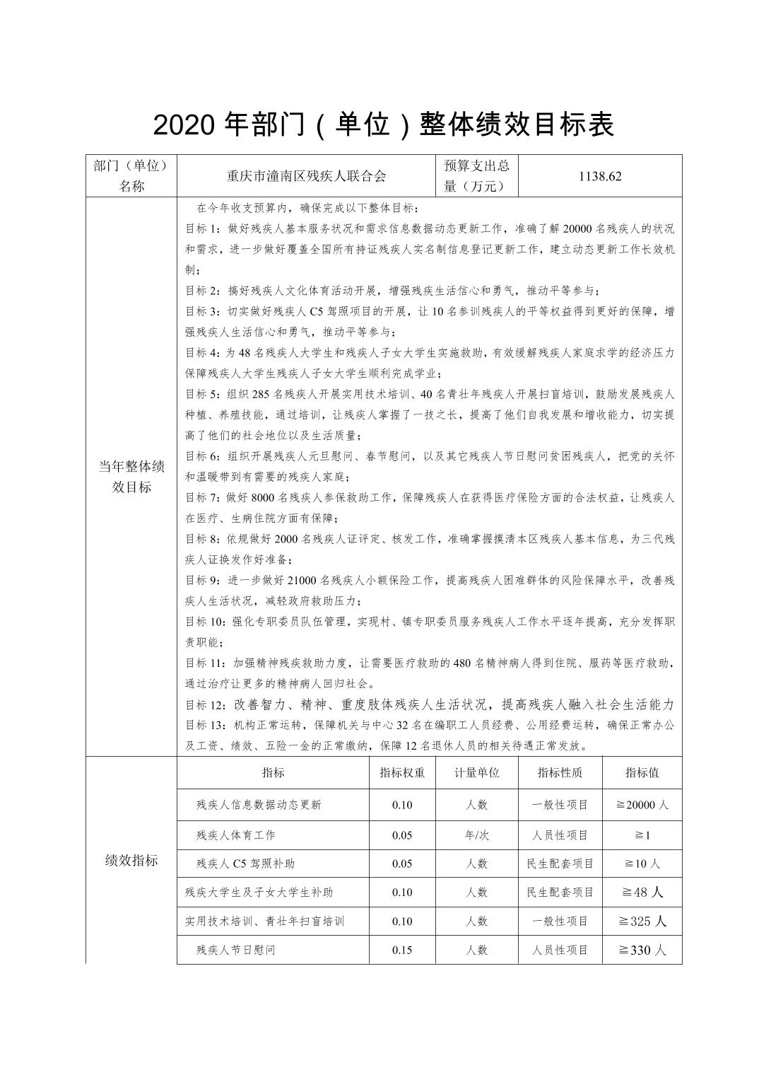 重庆市潼南区残疾人联合会2020年部门预算公开