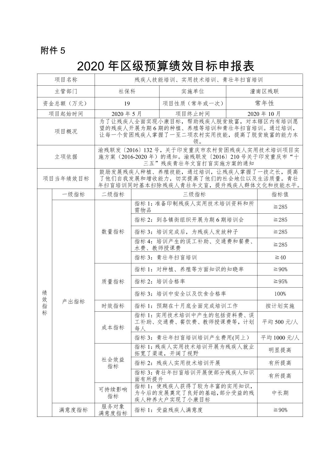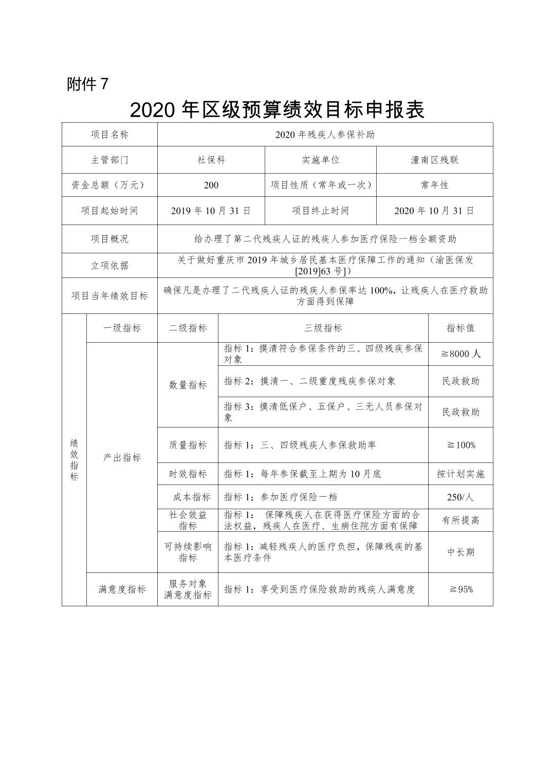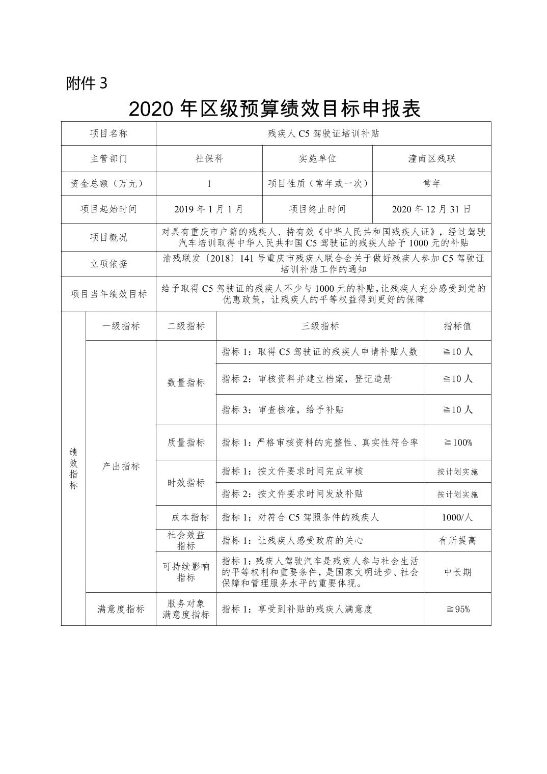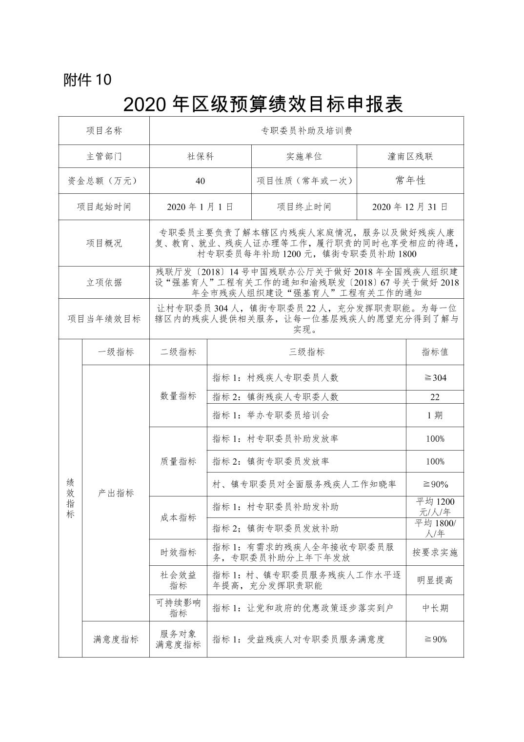 重庆市潼南区残疾人联合会2020年部门预算公开