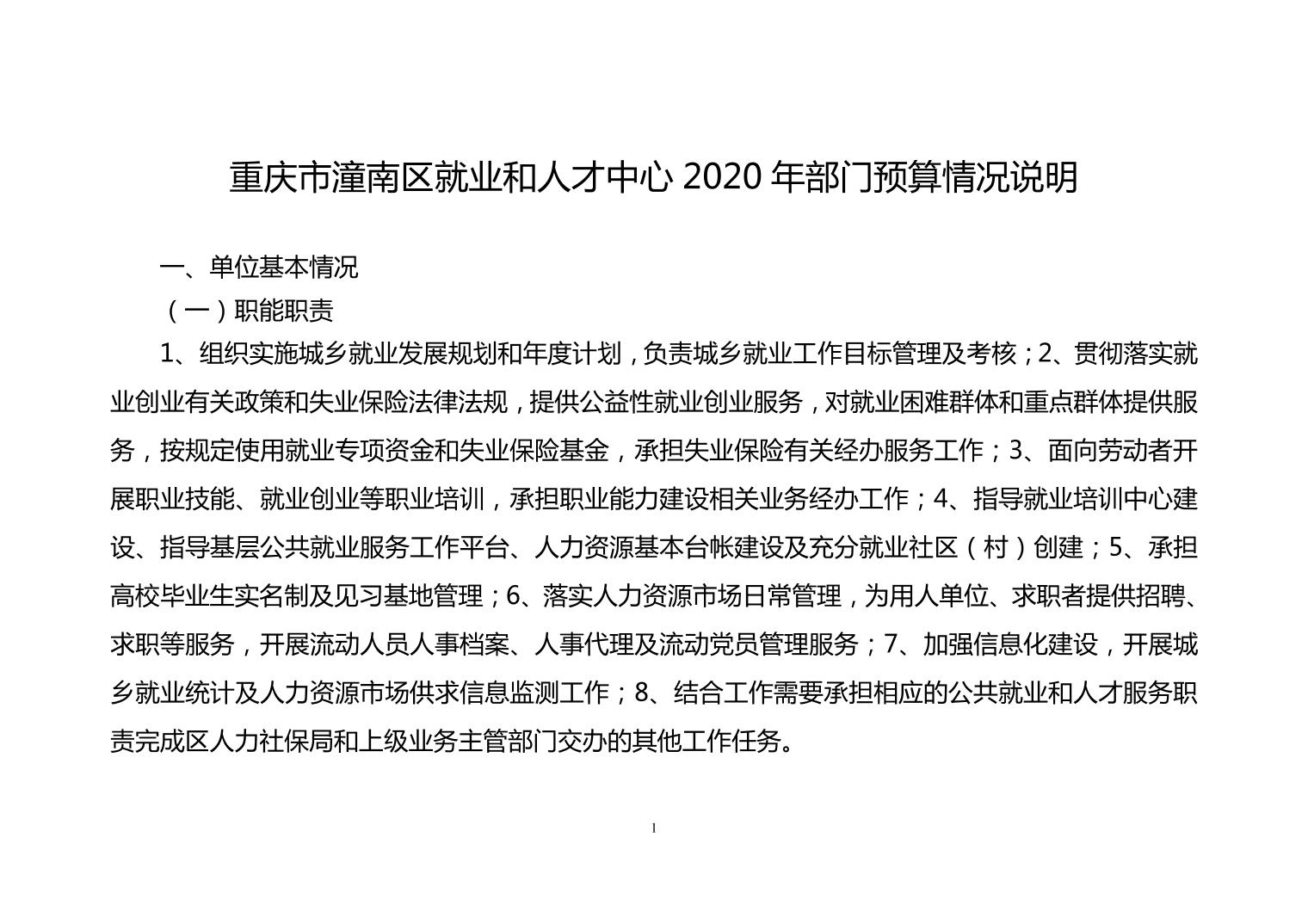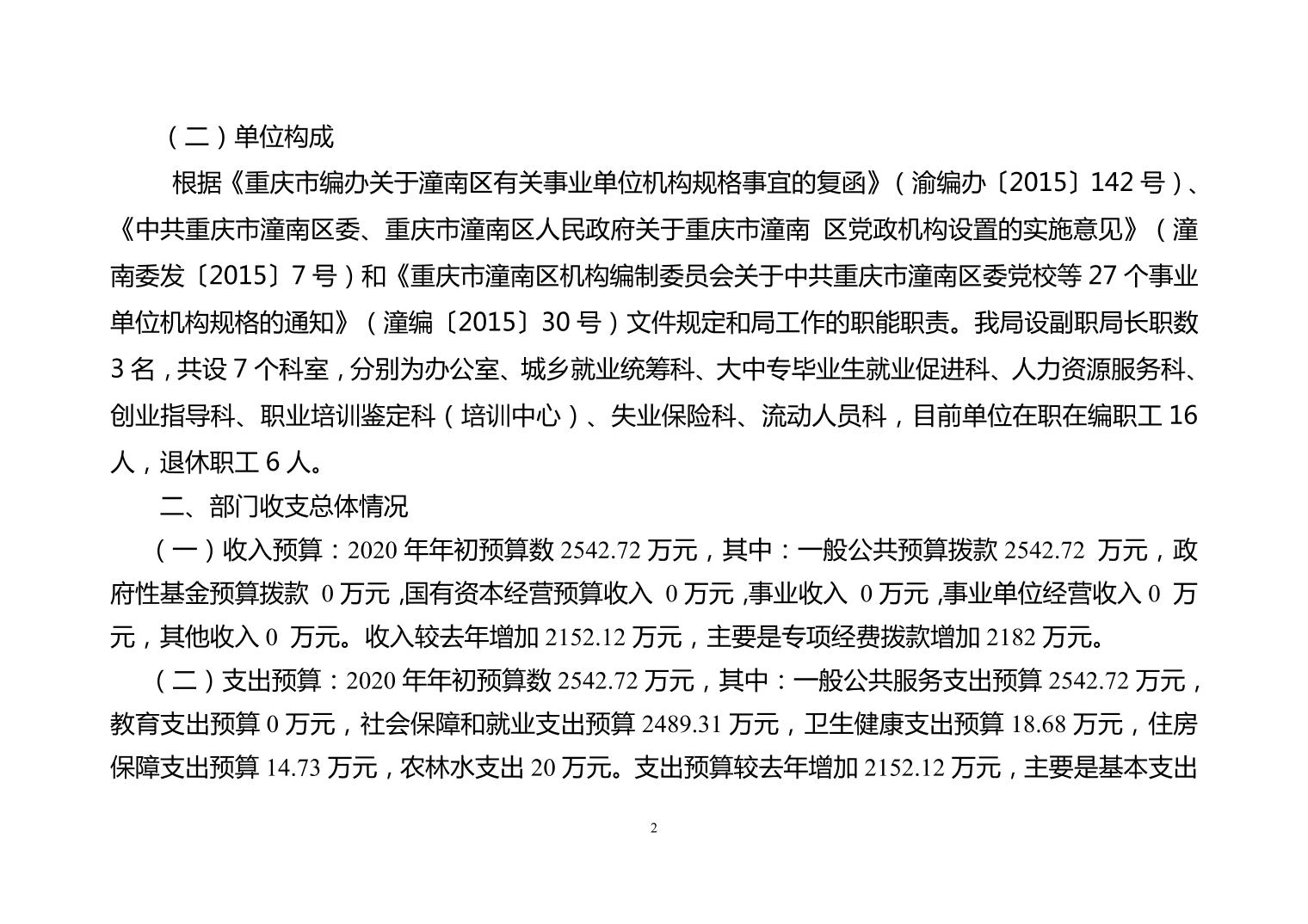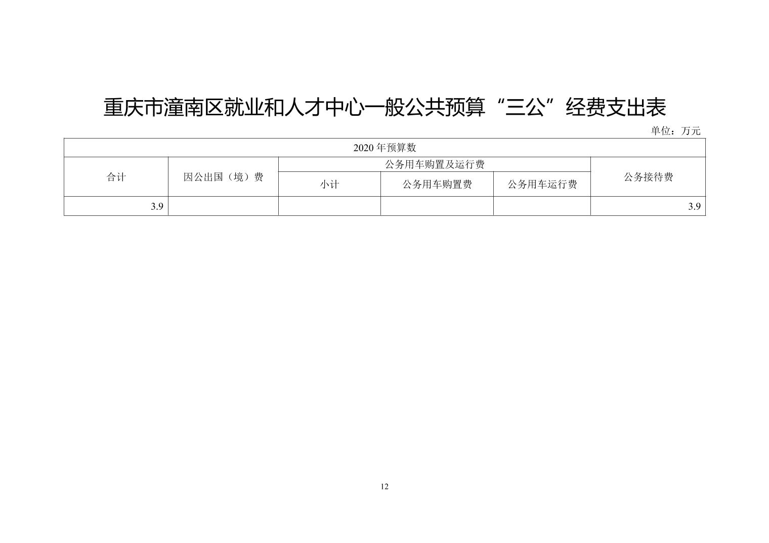 重庆市潼南区就业和人才中心2020年部门预算公开